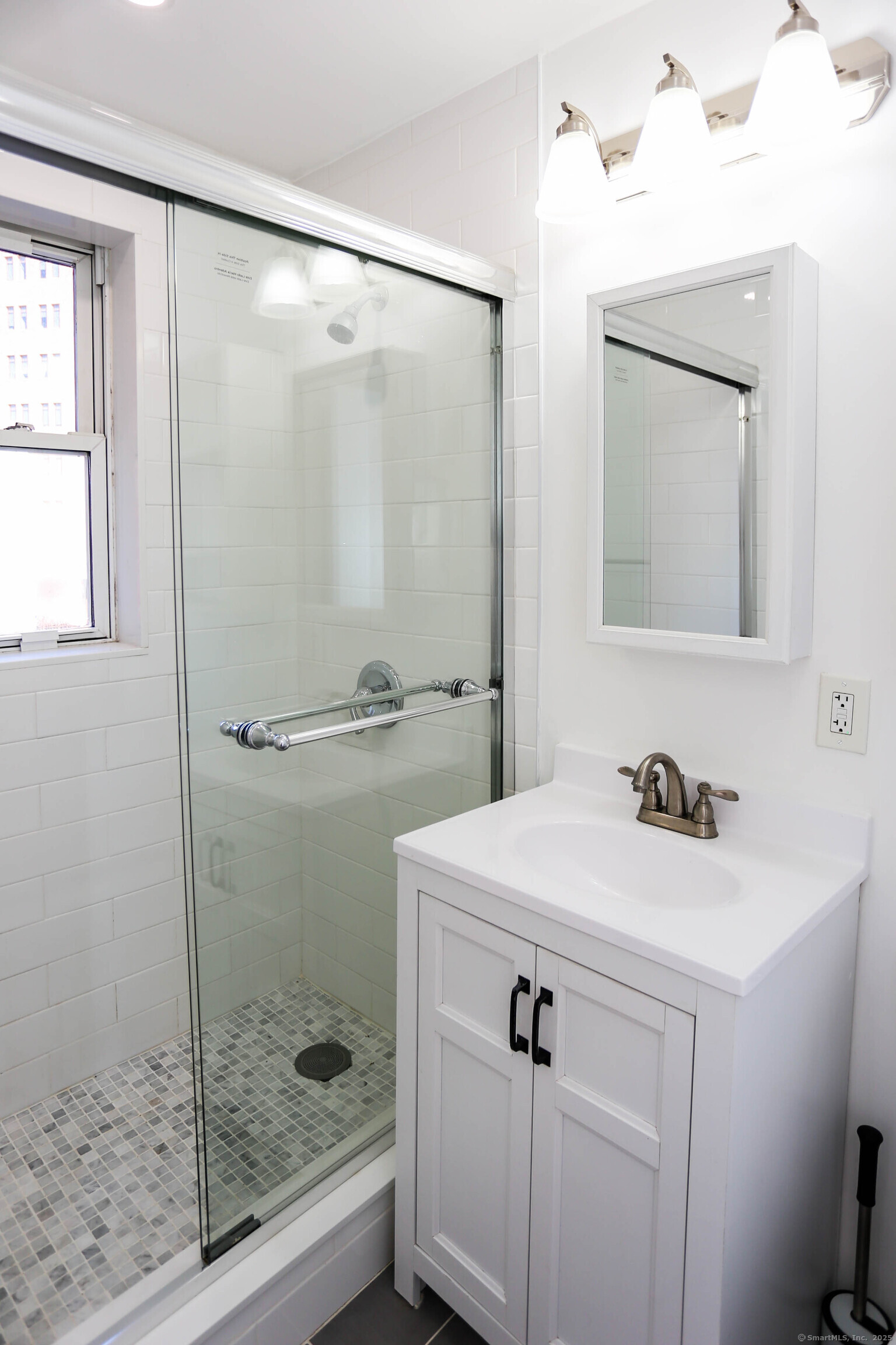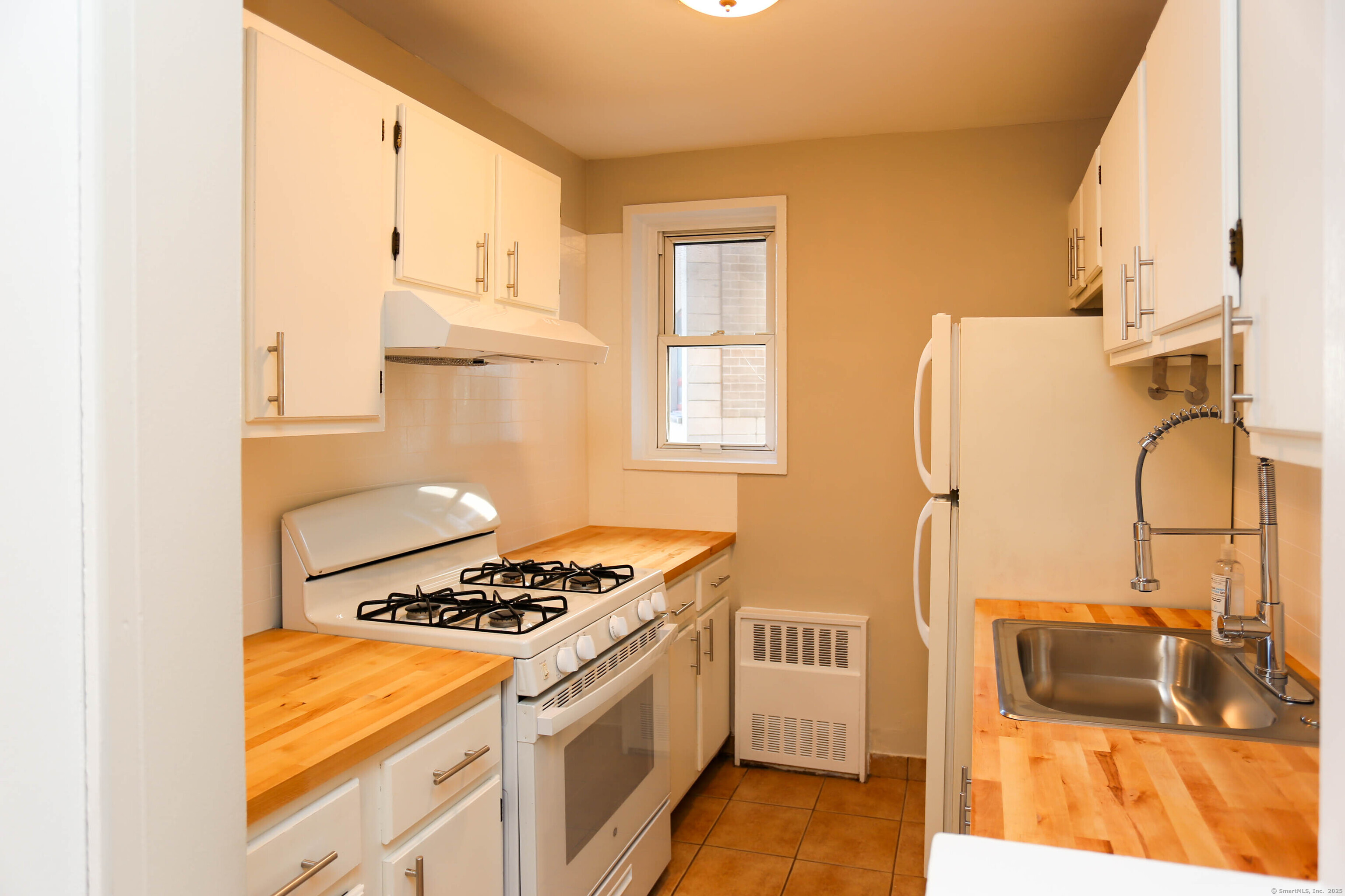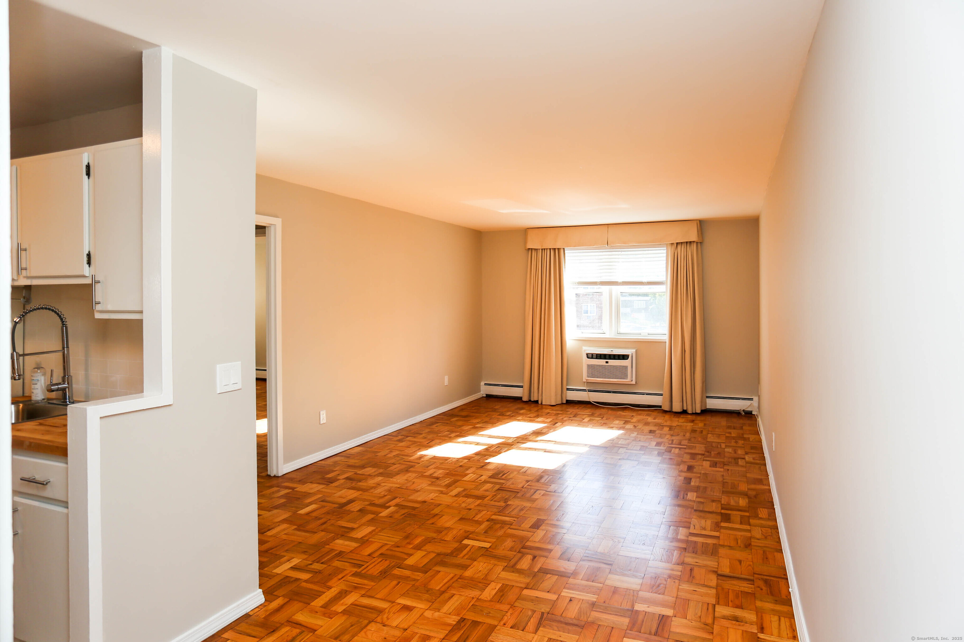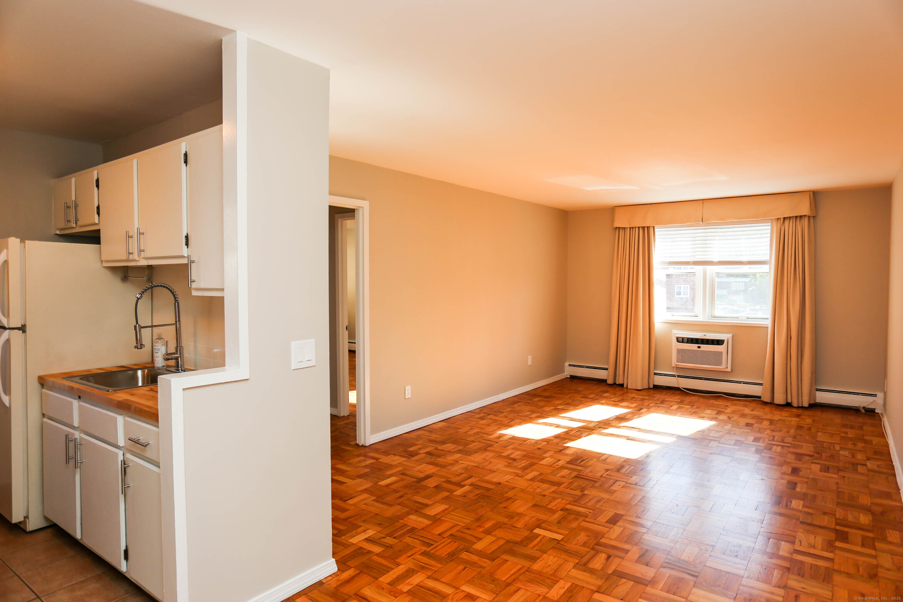 Move right into this bright, spacious and airy corner unit located in the heart of downtown Stamford-just steps from restaurants, shopping, theaters, and the mall. The open concept living and dining area flows into a cheerful kitchen with a window, refinished cabinets; newer appliances and A/C units. The tastefully remodeled bathroom and spacious bedroom with generous closet space complete this inviting home. Common charges include heat, hot water, and cooking gas. Additional features include one reserved parking space (#88), a coin-operated laundry room, and secured building entry. No rental restrictions-ideal for both owners and investors.