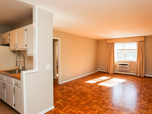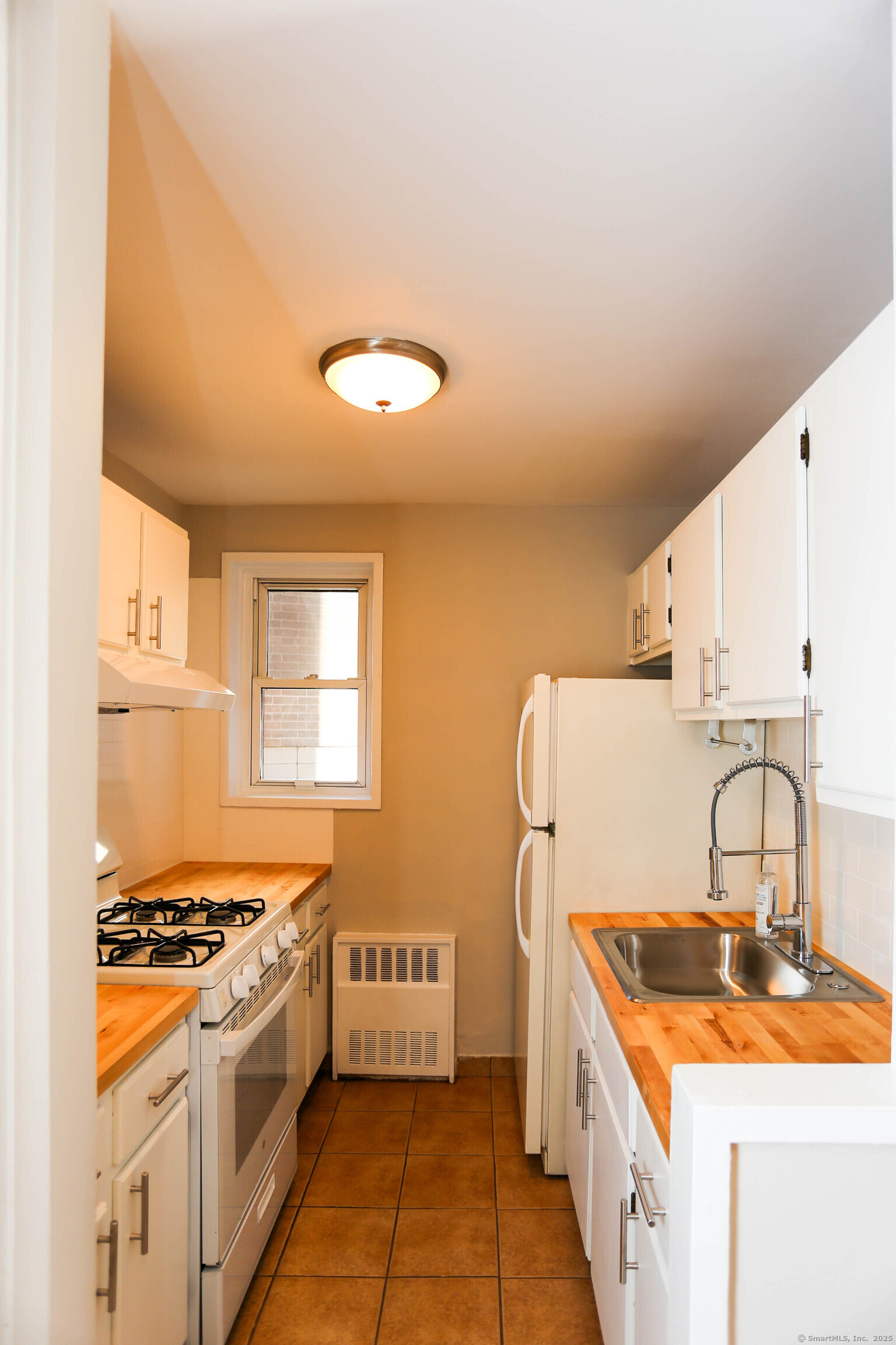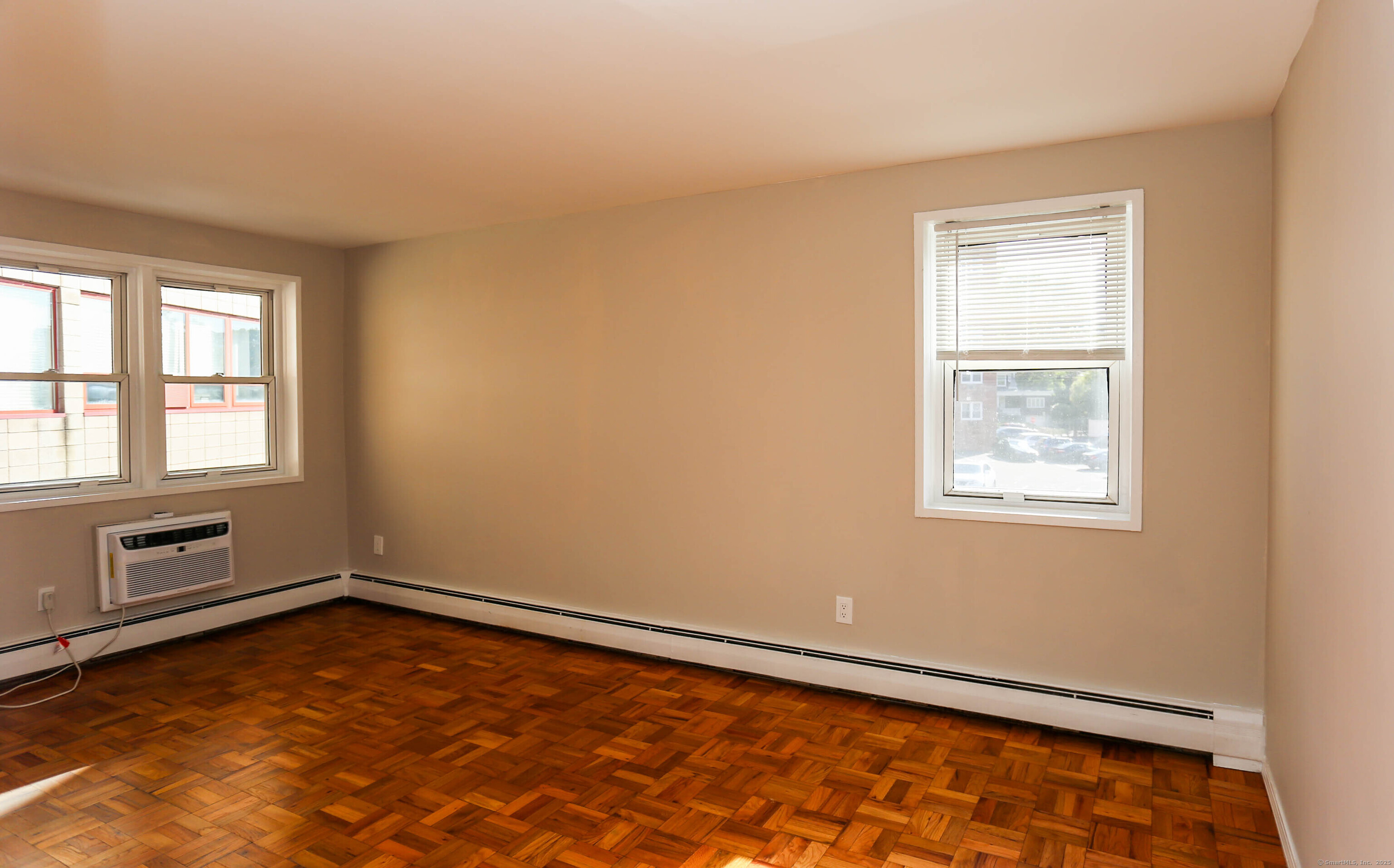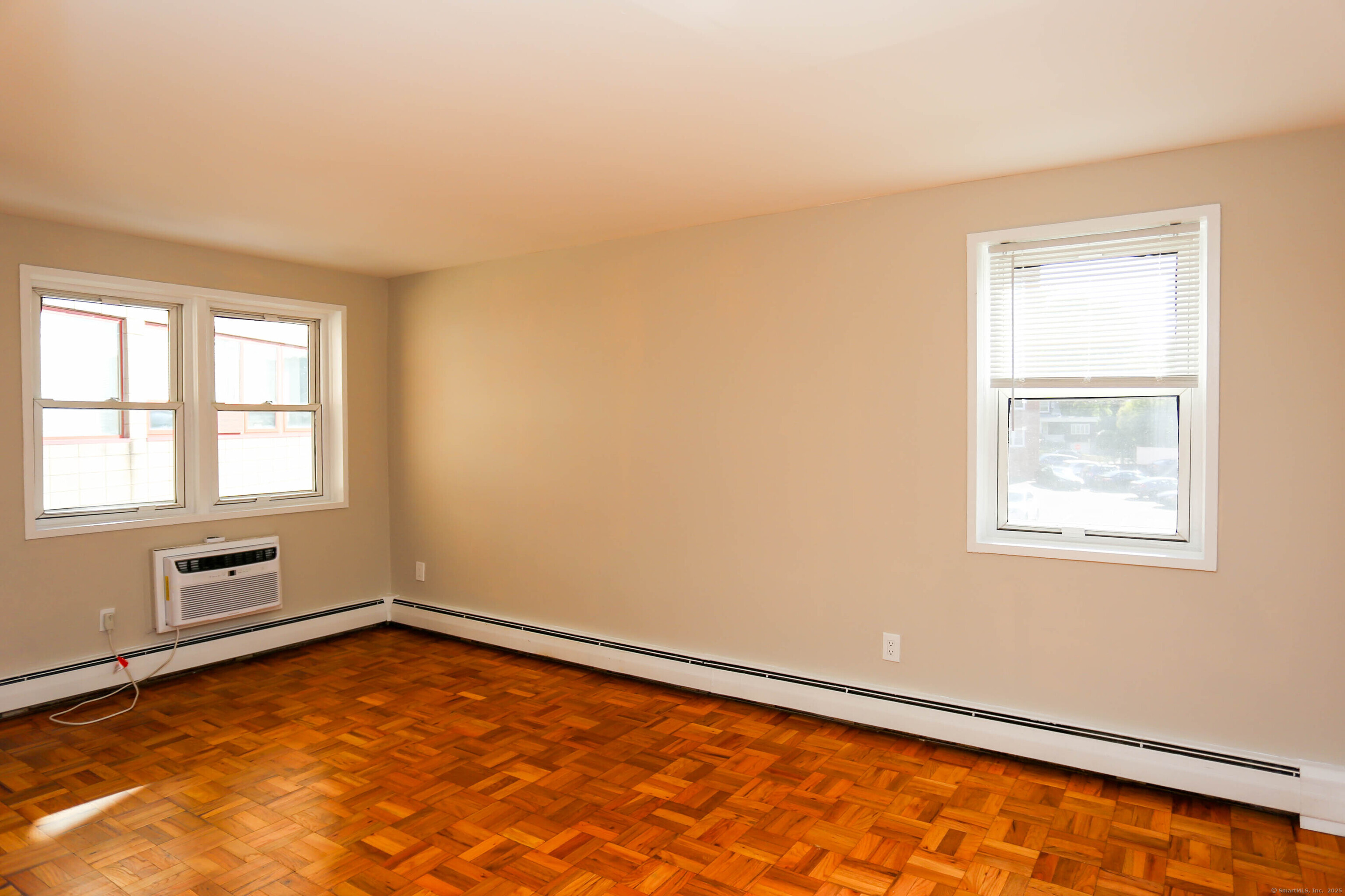 Move right into this bright, spacious and airy corner unit located in the heart of downtown Stamford-just steps from restaurants, shopping, theaters, and the mall. The open concept living and dining area flows into a cheerful kitchen with a window, refinished cabinets; newer appliances and A/C units. The tastefully remodeled bathroom and spacious bedroom with generous closet space complete this inviting home. Common charges include heat, hot water, and cooking gas. Additional features include one reserved parking space (#88), a coin-operated laundry room, and secured building entry. No rental restrictions-ideal for both owners and investors.