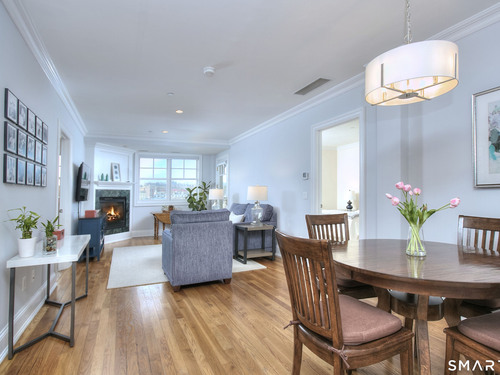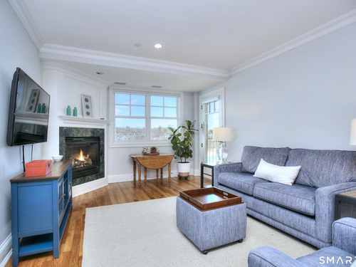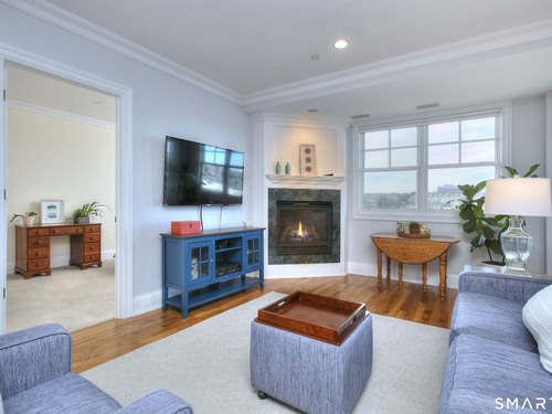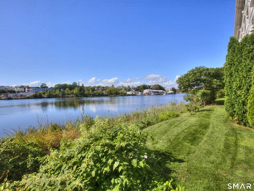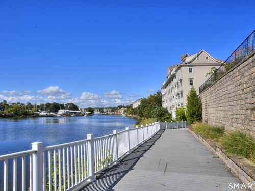 Riverfront living at The Landings, an award winning mid rise condominium overlooking the Norwalk River. This well appointed 2 bedroom, 2 full and 1 half bath ranch-style unit offers hardwood floors, crown molding, gas fireplace, and a private balcony with scenic water views. The kitchen features granite countertops, mahogany cabinetry, stainless steel appliances, and newly installed stove/oven and microwave. The spacious primary suite includes a walk-in closet with custom shelving and a spa-like bath with double sinks, separate shower, and soaking tub. A second en-suite bedroom, powder room, and separate laundry room with new washer and dryer complete the layout. Elevator building, garage, storage unit with intercom access and riverfront walkway. Conveniently located to Metro-North and minutes to I-95, Route 7, shopping, restaurants, and Stew Leonard's! Unit may be sold furnished for a turnkey option.