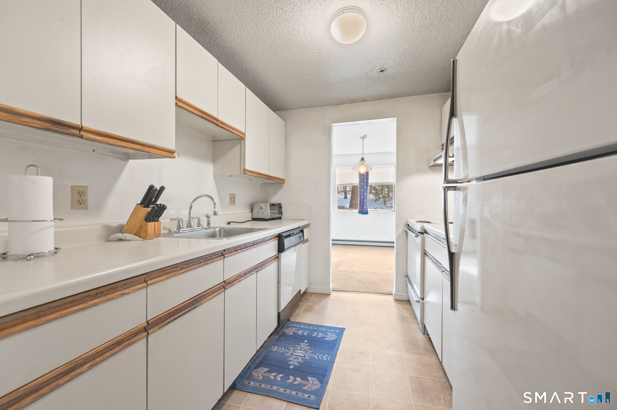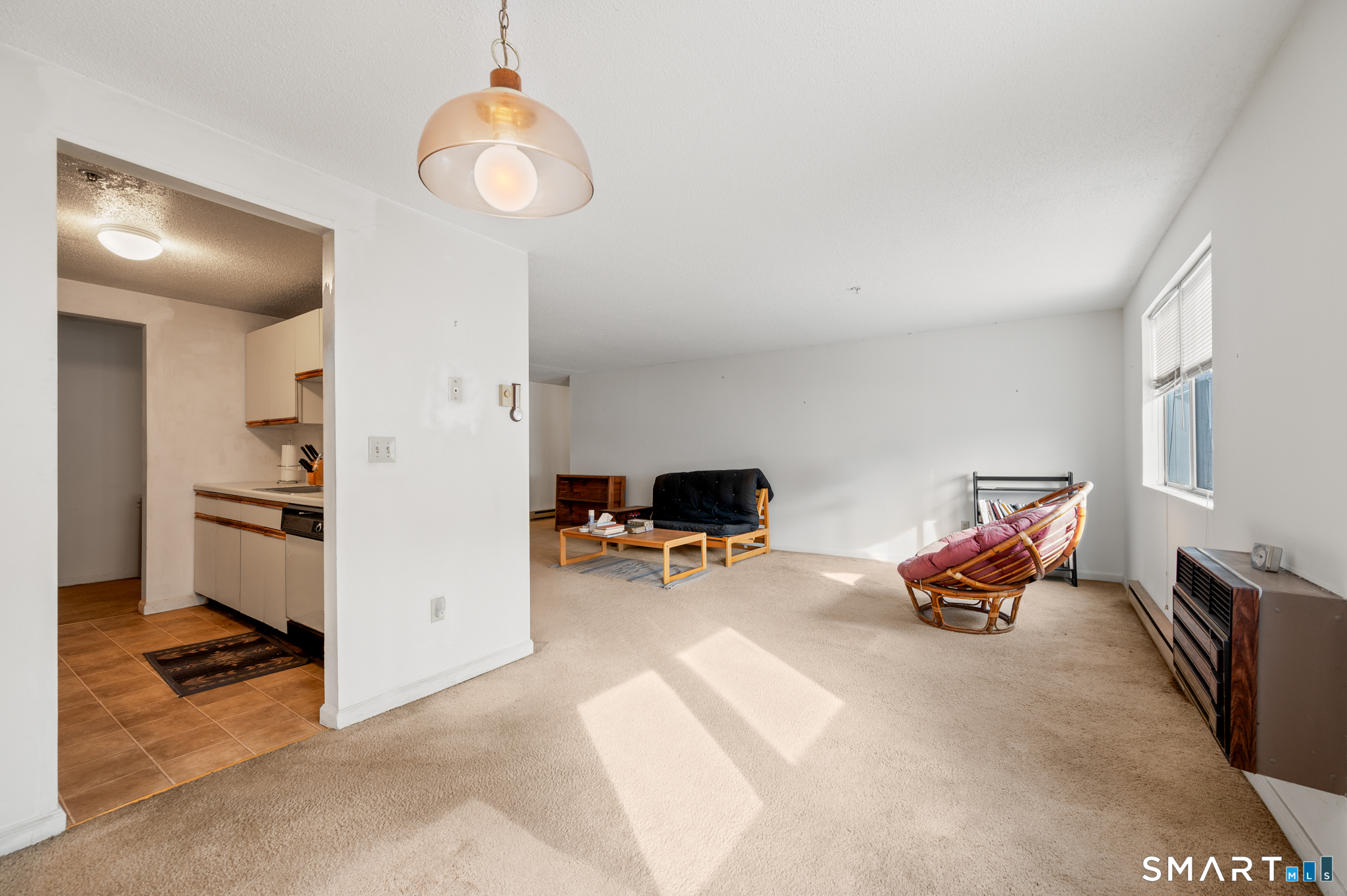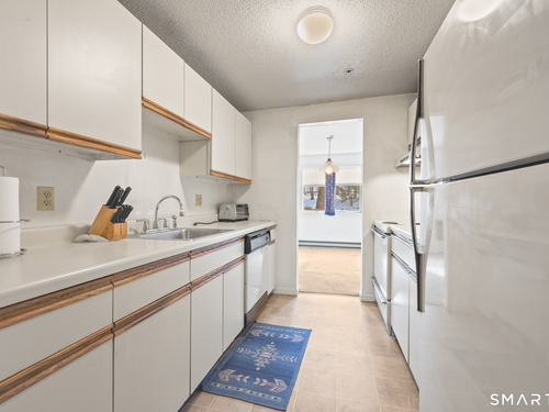 Great location! Quiet setting, right off the main road but close to shops, dining, hospitals, schools, public transportation, and highways. This is certainly a diamond in the rough. The layout features a private bedroom, a large open living room and dining room, and a galley kitchen. It needs some cosmetic updates, but is definitely move-in ready. This home is being sold AS IS. There is stacked washer-dryer in the unit. With a little bit of TLC, this first-floor, ranch-style condo can be your dream home. This unit has never been on the market before! Here is your chance to purchase a very rare one-bedroom at River Bend!