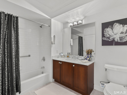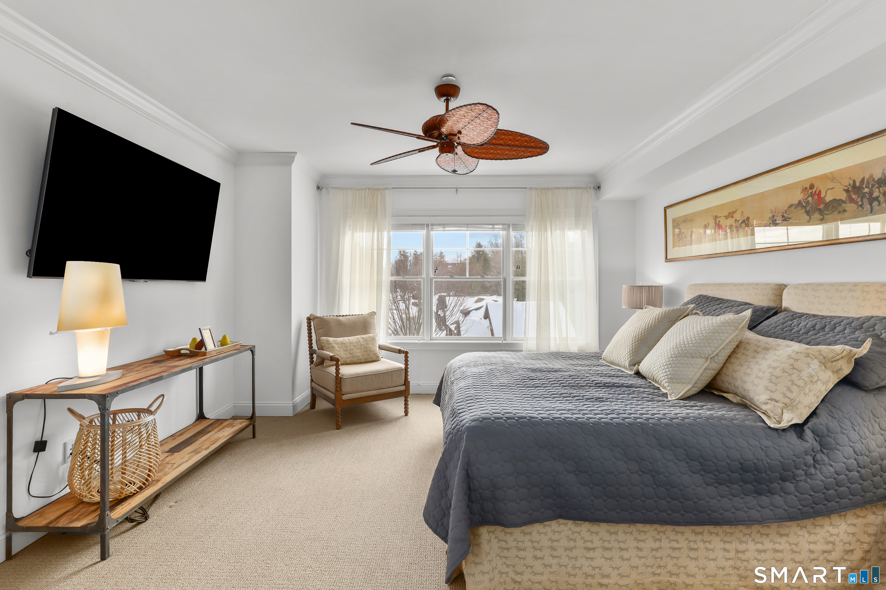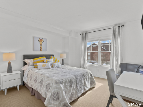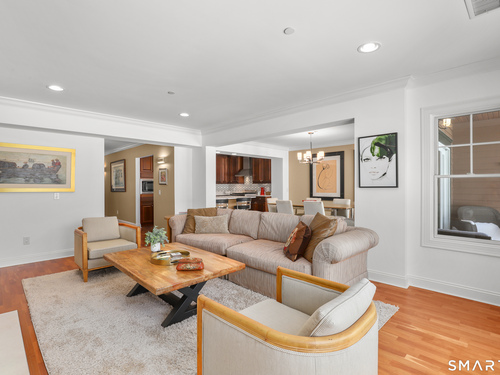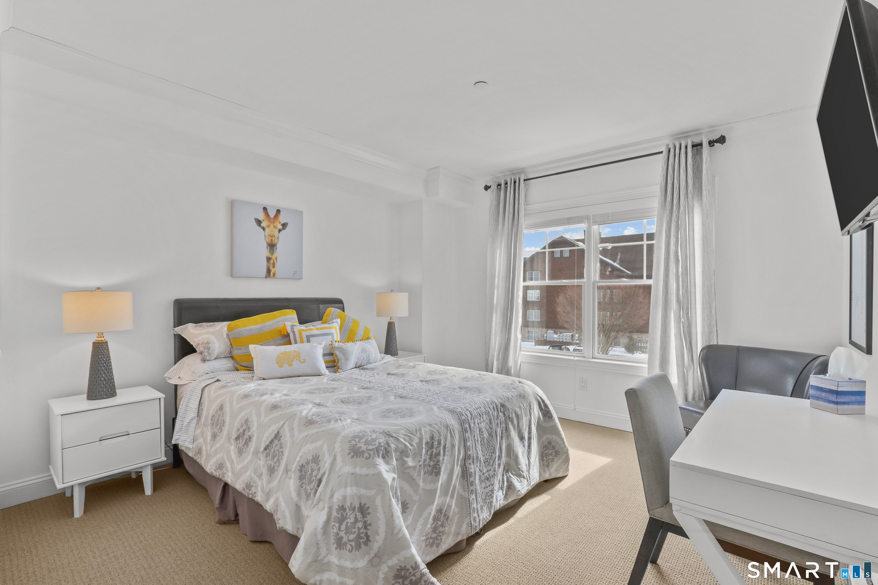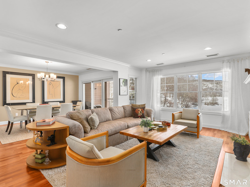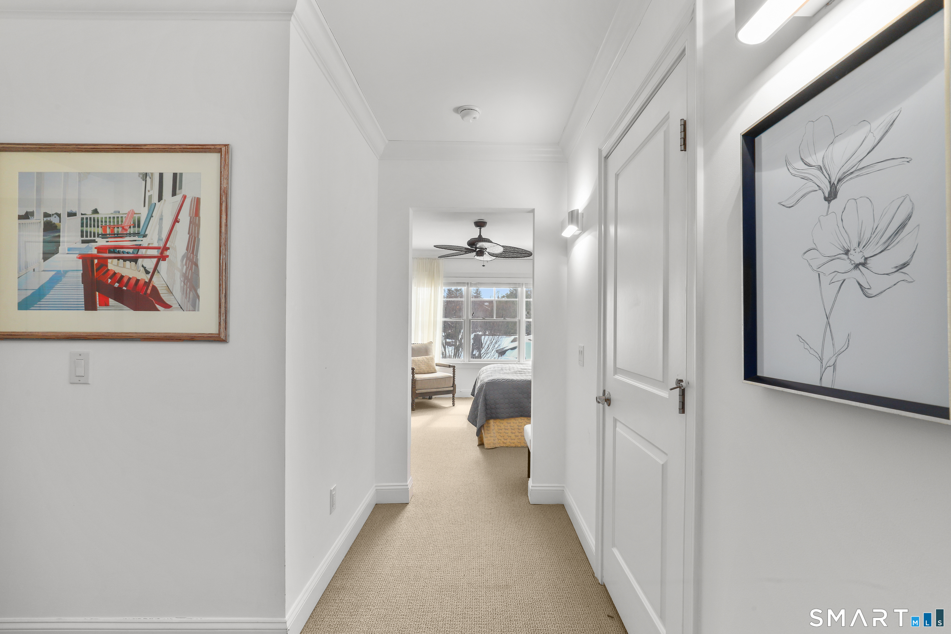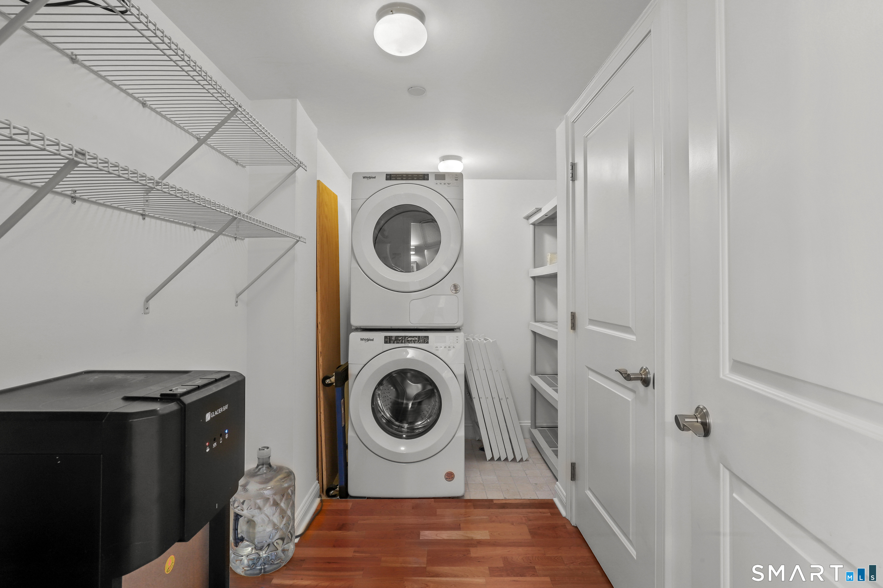 Set within the premier building at Poet's Landing, this beautifully appointed residence offers one of the most coveted vantage points in the community - an unobstructed, straight-down-the-lake view paired with immediate access to Poet's Landing's private pool, beach, park, and fitness center. Positioned to capture sweeping water views, the home enjoys a rare sense of openness and connection to Candlewood Lake that few units can match. A covered balcony becomes a true extension of the living space, ideal for morning coffee, evening sunsets, or simply watching the lake change throughout the day. Inside, the open-concept layout is both refined and inviting, anchored by rich cherry floors and high ceilings that enhance the natural light and sense of scale. The chef's kitchen is outfitted with Sub-Zero refrigeration, a Wolf range, ASKO dishwasher, granite countertops, and custom cabinetry, seamlessly connecting to the dining and living areas - perfect for entertaining or relaxed everyday living.