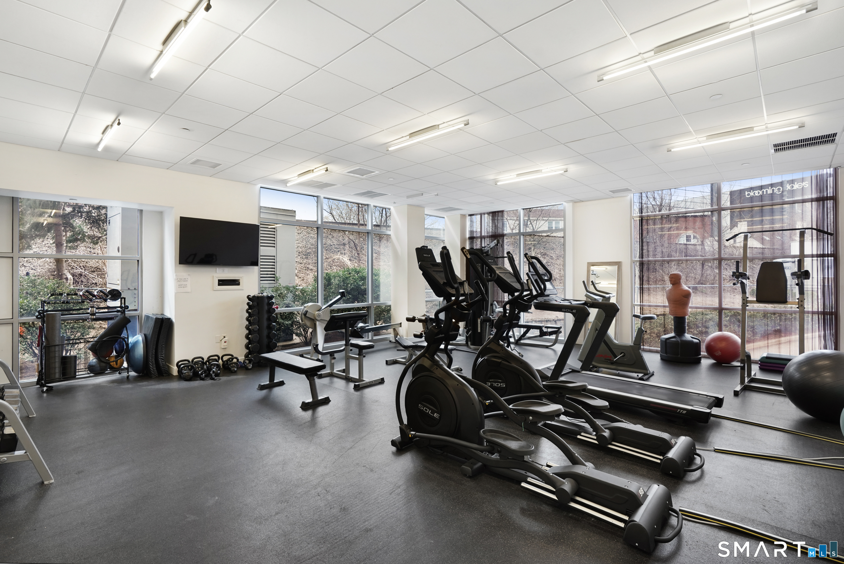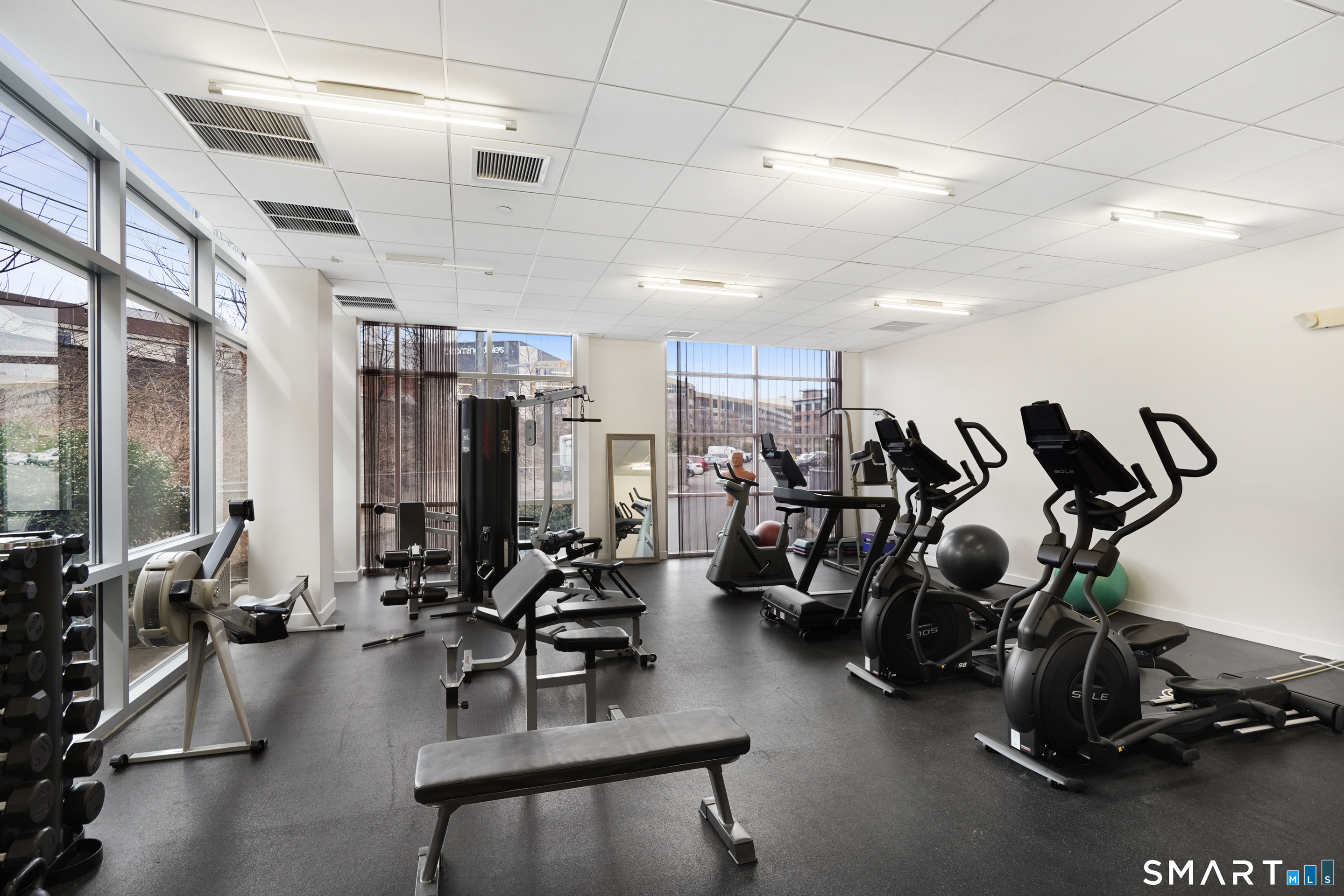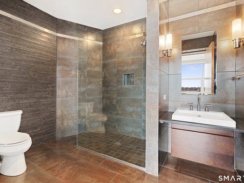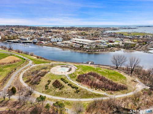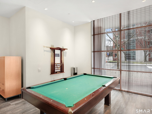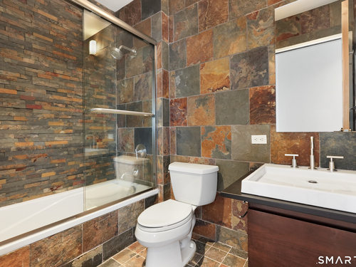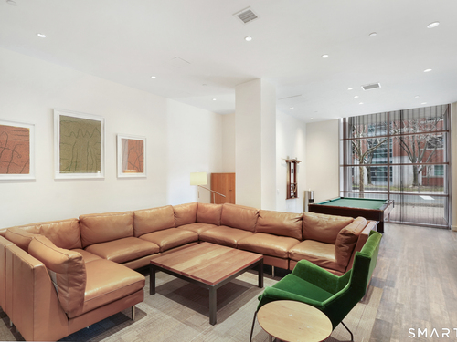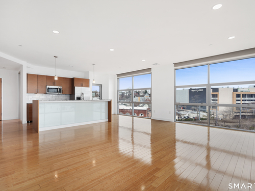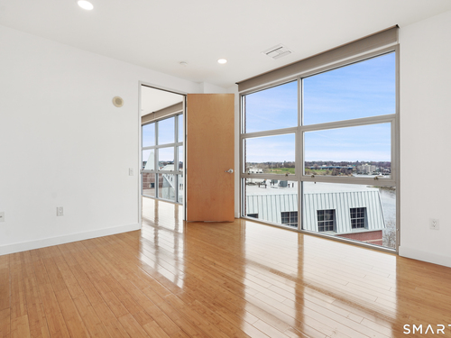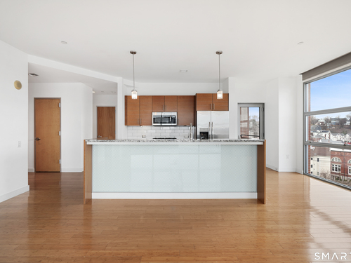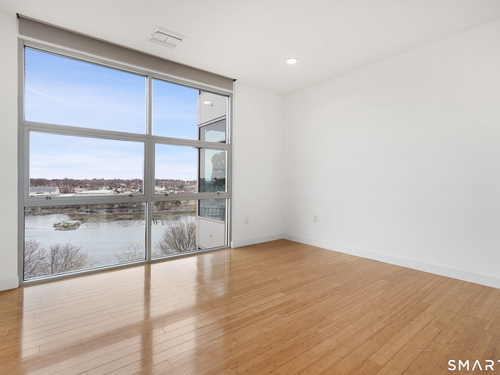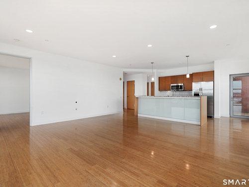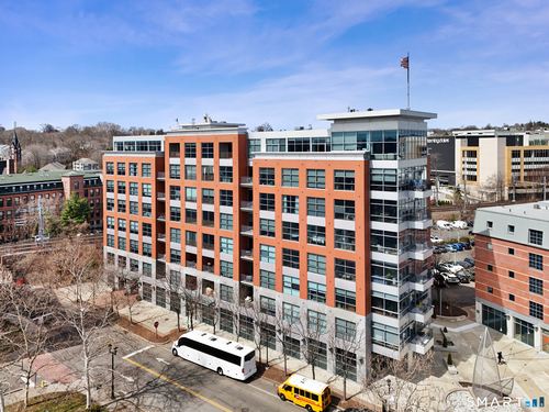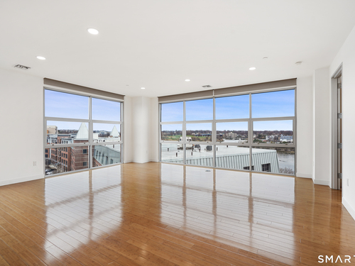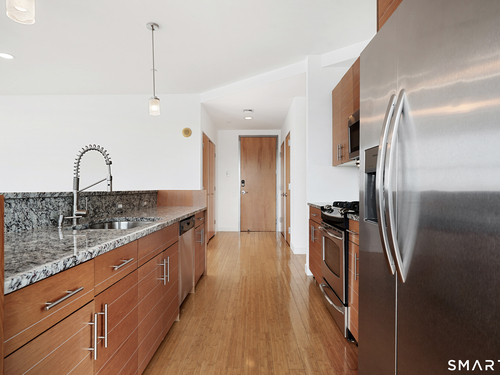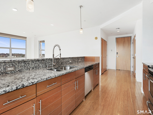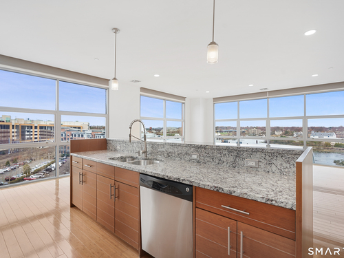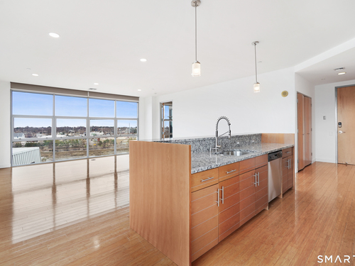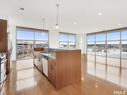 Welcome to luxury mid-rise living, yet with a neighborhood feel, in the gorgeous waterfront Maritime building, close to restaurants, shops, the train and more! This stunning 2-bedroom, 2-bathroom waterfront corner unit with balcony has views from every single floor-to-ceiling window, complete with custom window treatments! Natural light and nature's beauty envelope you while enjoying modern living both in this unit and the building's resident amenities. Gleaming and updated bamboo hardwood flooring and recessed lighting runs throughout the open concept layout and bedrooms. Both full bathrooms boast custom Porcelanosa tile with a sleek design. The kitchen is the heart of the space with solid-wood cabinets, granite countertops, and a 10ft island with seating! The primary bedroom features a walk-in-closet with custom California closet inserts and the second bedroom has two great-size closets for storage! Most appliances have been updated in the last few years including an oversized washer and dryer, and the HVAC system was replaced! This unit boasts MANY updates that others do not have. Two parking spaces are included, one in the private lot outside and one in the parking garage. Building amenities include a fitness center, meeting room, lounge with fireplace, pool table, TV and abundant seating. There are many opportunities for outdoor enjoyment-from kayaking and paddle boarding to sunset strolls along the harbor. Come experience elevated living in Downtown SoNo!