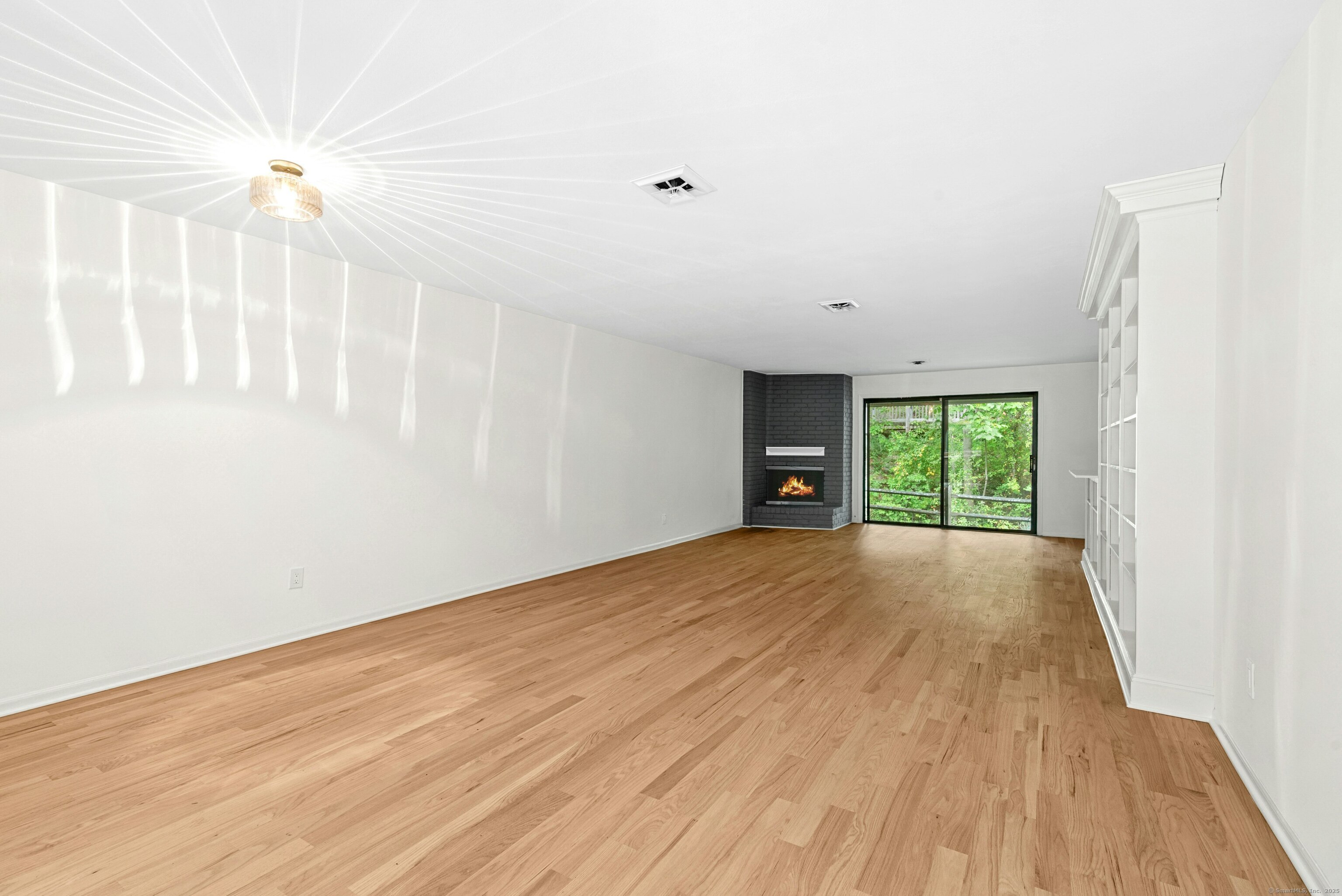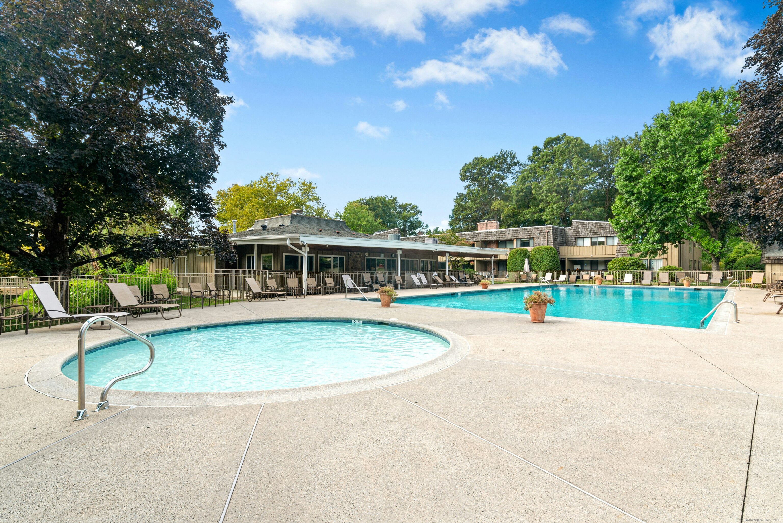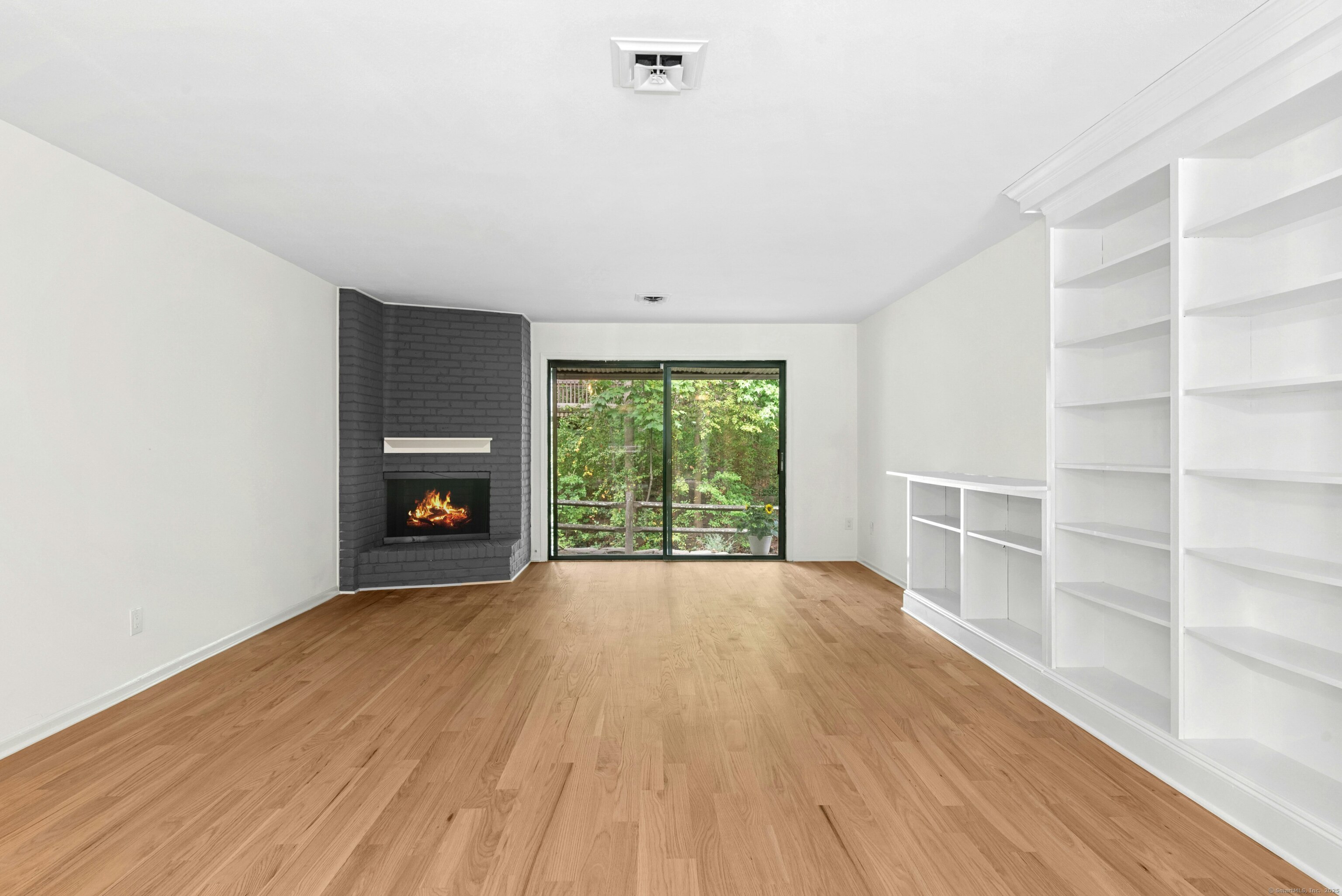 Beautifully refreshed and move-in ready, this spacious first-floor 2-bedroom, 2-bath condo is set in the sought after Ledgebrook community. With a bright open floor plan, the living room features a cozy fireplace and sliders leading to a private patio overlooking the tranquil brook, the perfect spot to enjoy nature year round. A formal dining area flows seamlessly from the living room, ideal for both everyday living and entertaining. This unit has been thoughtfully updated with all new wood flooring throughout, fresh paint, new lighting fixtures, and a new stainless steel dishwasher. The eat-in kitchen also features brand-new flooring, providing a fresh and inviting space. Both bedrooms are generously sized and privately situated at opposite ends of the unit, with the primary suite offering double closets (including a walk-in) and serene brook views. Additional highlights include in unit laundry, a private storage room, and a one-car garage with plenty of guest parking. Residents of Ledgebrook enjoy resort style amenities including a pool, spa, exercise room, library and scenic walking paths around the beautifully landscaped grounds with an aerated lake and charming bridge. A wonderful opportunity to own in one of Norwalk's most desirable complexes, just minutes from shopping, dining, and commuting options.