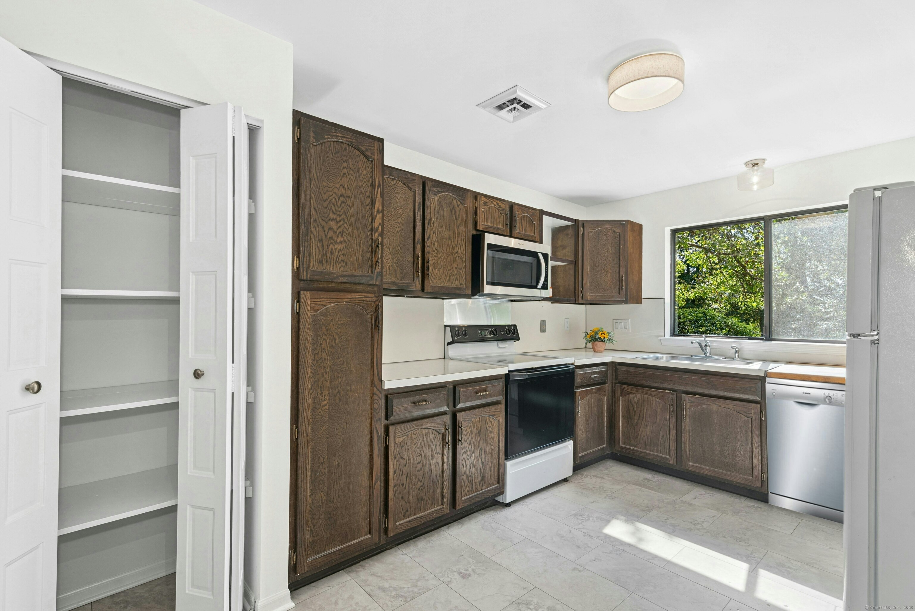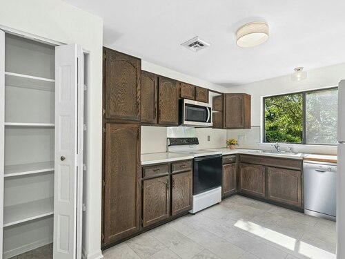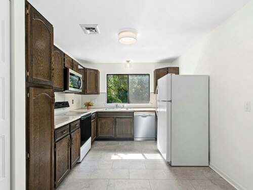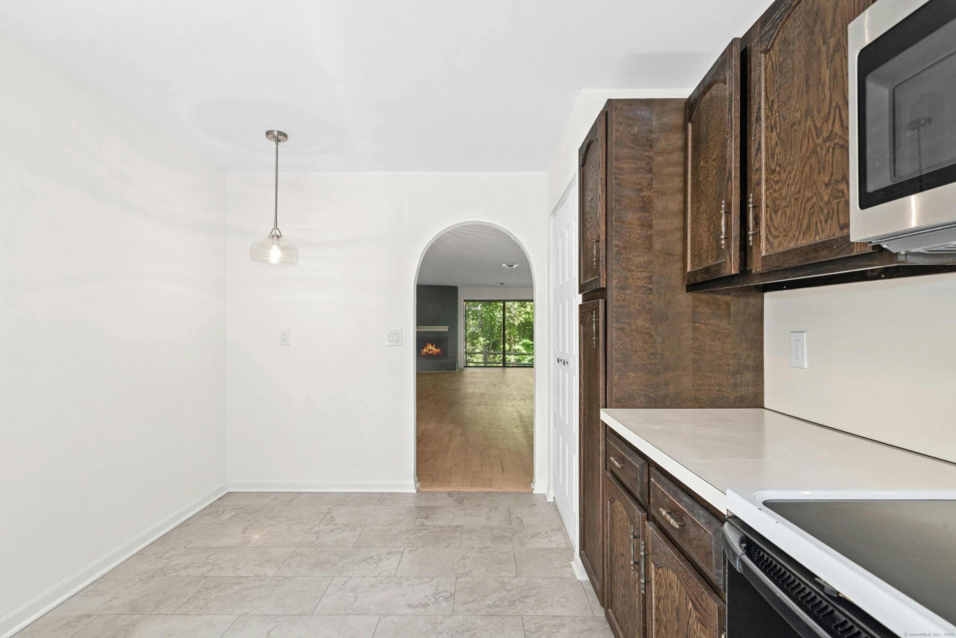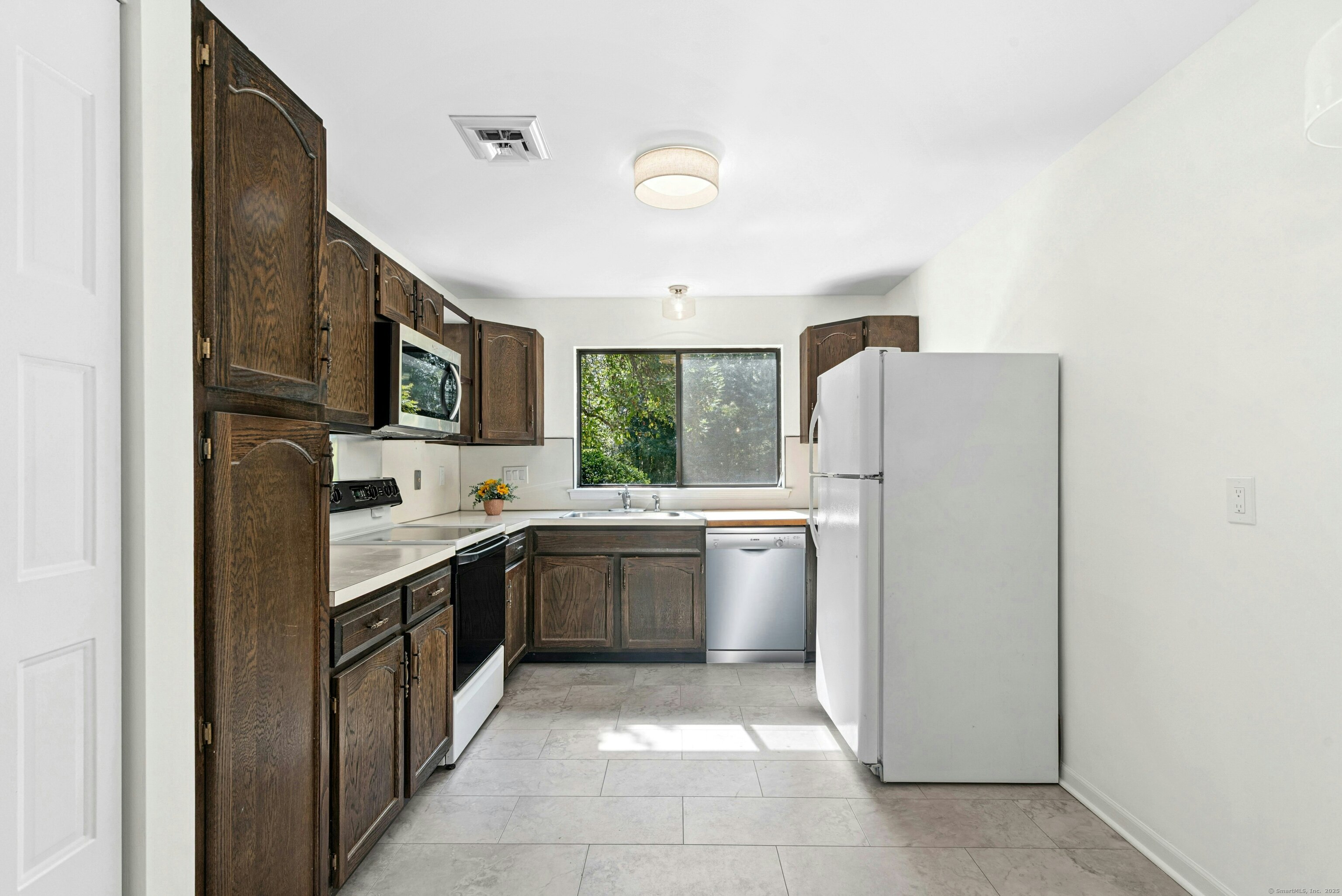 Beautifully refreshed and move-in ready, this spacious first-floor 2-bedroom, 2-bath condo is set in the sought after Ledgebrook community. With a bright open floor plan, the living room features a cozy fireplace and sliders leading to a private patio overlooking the tranquil brook, the perfect spot to enjoy nature year round. A formal dining area flows seamlessly from the living room, ideal for both everyday living and entertaining. This unit has been thoughtfully updated with all new wood flooring throughout, fresh paint, new lighting fixtures, and a new stainless steel dishwasher. The eat-in kitchen also features brand-new flooring, providing a fresh and inviting space. Both bedrooms are generously sized and privately situated at opposite ends of the unit, with the primary suite offering double closets (including a walk-in) and serene brook views. Additional highlights include in unit laundry, a private storage room, and a one-car garage with plenty of guest parking. Residents of Ledgebrook enjoy resort style amenities including a pool, spa, exercise room, library and scenic walking paths around the beautifully landscaped grounds with an aerated lake and charming bridge. A wonderful opportunity to own in one of Norwalk's most desirable complexes, just minutes from shopping, dining, and commuting options.
