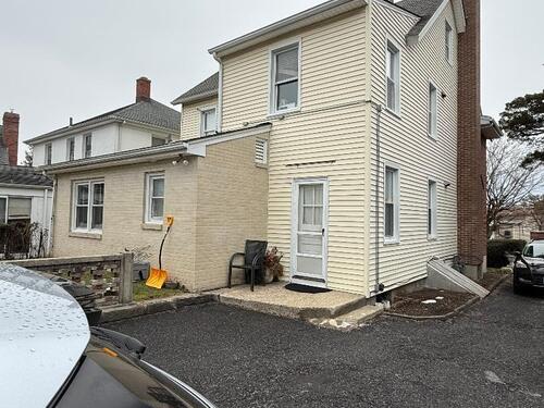 Brick and frame two-family with large detached two-car garage. Centrally located, off street parking, large level lot, flagstone terrace, stone barbecue.
