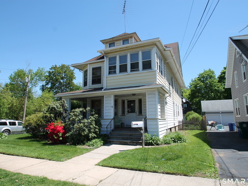 Tucked away on a cul-de-sac street, this 3 family is a great opportunity for investors or owner occupant. First floor is in good condition with an updated kitchen, newer cabinets, updated appliances. Up date baths as well. Lr, Dr, Eik and 2 bedrooms and laundry. This unit has natural gas stove, new gas hot water and gas hot water heat newer furnace. The second floor is the same, Lr, Dr, Eik, 2 Brs, updated bath and enclosed porch. Oil hot air, elec hot water heater, Third floor Lr., Eik, 2 Bedrooms, updated bath. The second and third floor share an oil hot heating system which is included in the rent, landlord pays it. Third floor has electric heat back up. Front porch, wide hallways. fenced yard. 2 car detached garage and plenty of parking. Walk to restaurants and train station, near the historic district.