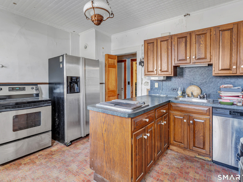 Exceptional Black Rock Multi-Family - Timeless Character & Rare Value Nestled in the heart of the highly coveted Black Rock neighborhood, this impressive 3-unit multi-family residence with a 2-car garage blends classic architectural elegance with modern functionality. Each unit is highlighted by hardwood floors, stately columns(2nd floor), high ceilings, and generously proportioned living and dining rooms that create a bright, open, and welcoming atmosphere. Updated eat in kitchens on 1st and 2nd floors and updated baths in all 3 apartments, offer contemporary comfort while preserving the home's authentic charm. 1st and 2nd floors are oil heat while the 3rd floor unit is gas. The property does require exterior maintenance and select cosmetic updates, presenting a prime value-add opportunity for investors or owner-occupants eager to enhance and customize a home of this caliber. With its desirable location, strong rental potential, and undeniable character, opportunities like this-especially at this price point-are increasingly rare. A compelling chance to own a distinguished multi-family property in one of the area's most sought-after communities. Home has some peeling paint and older heating systems and is being sold as is. The roof and chimney work are just 7 years young and one oil tank just a couple years old.
