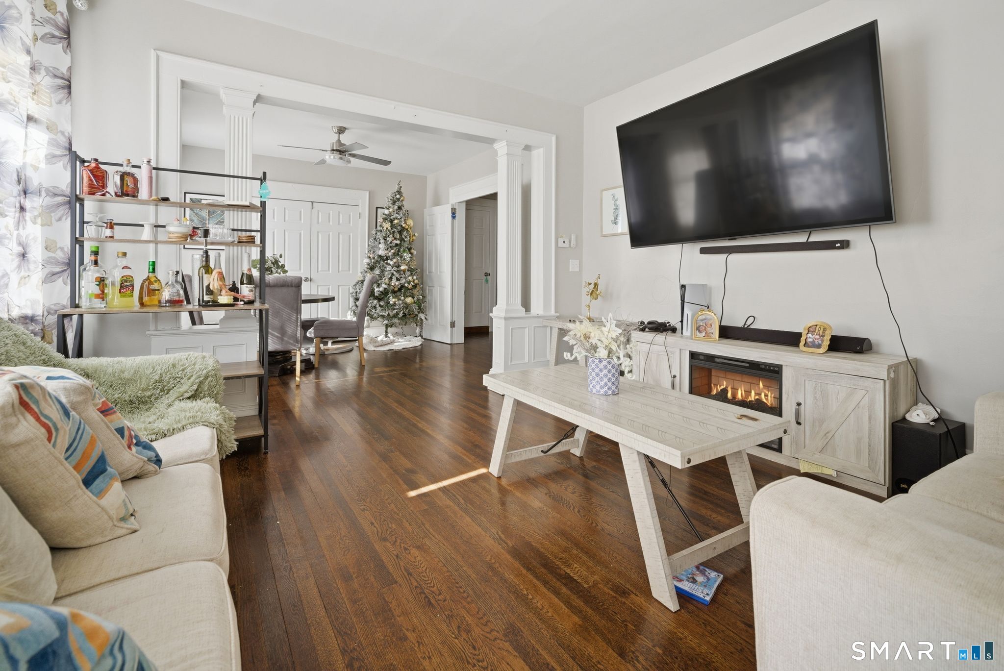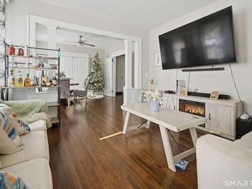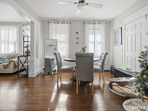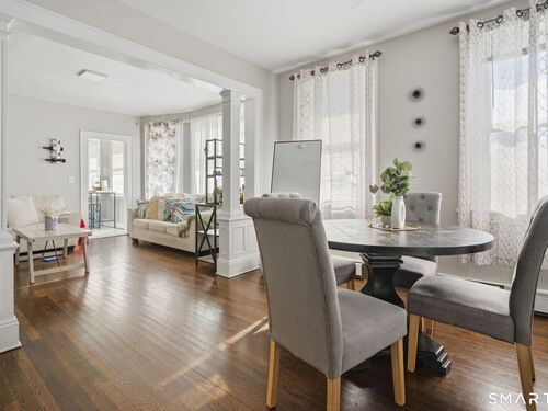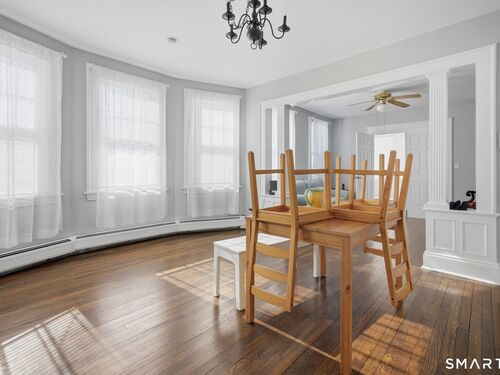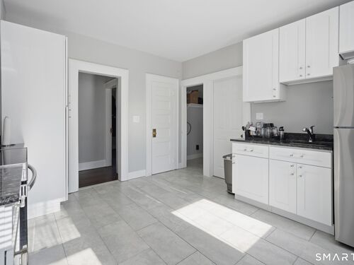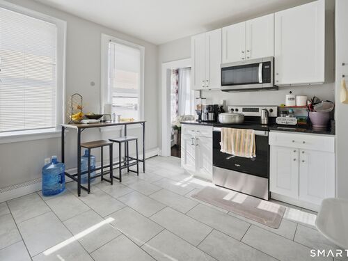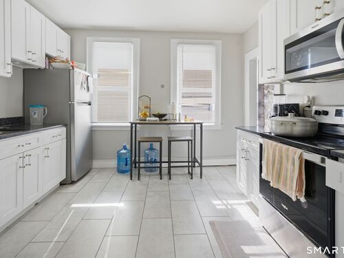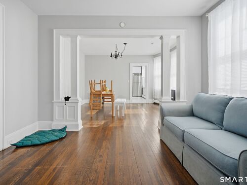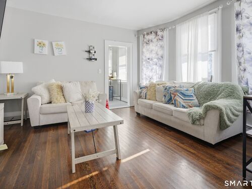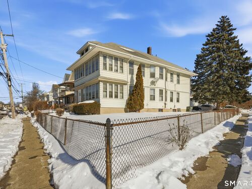 A beautiful gem of a large two-family home, gracefully set just above street level, offering a commanding presence on a prominent corner lot. Wonderfully restored, each unit features newly refinished hardwood floors and a modern kitchen with granite countertops. The butler's pantry includes washer and dryer hookups, adding both charm and convenience. The dining and living rooms flow effortlessly together, with classic double doors providing elegant separation from the front living area. Off the dining room, the bedrooms and bath are thoughtfully set apart from the main living space, offering privacy and comfort, with generously sized rooms throughout. Conveniently located between New York and New Haven along the Connecticut shoreline, Bridgeport is a vibrant, bustling community steeped in history, making this property an excellent opportunity for both owner-occupants and investors alike.