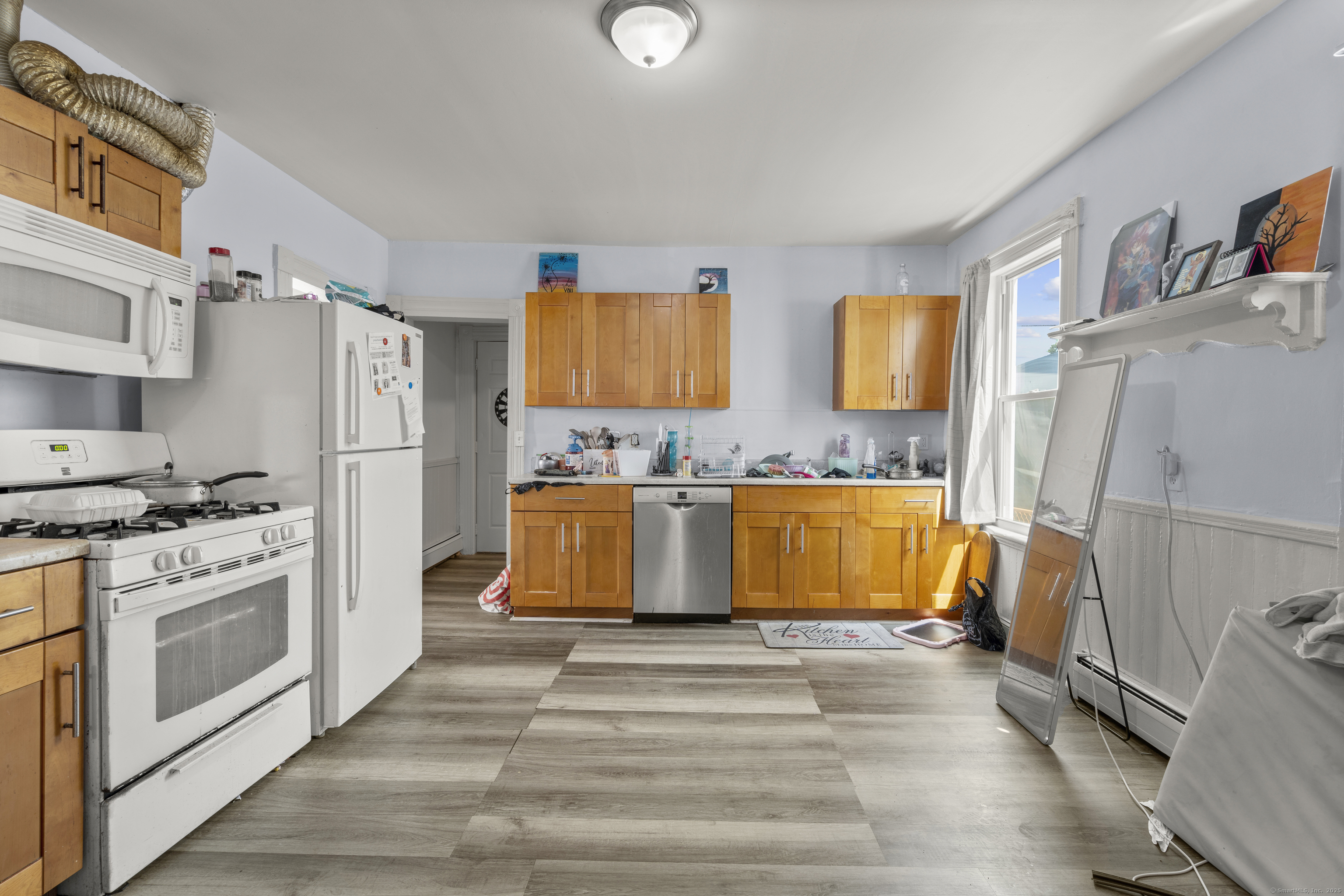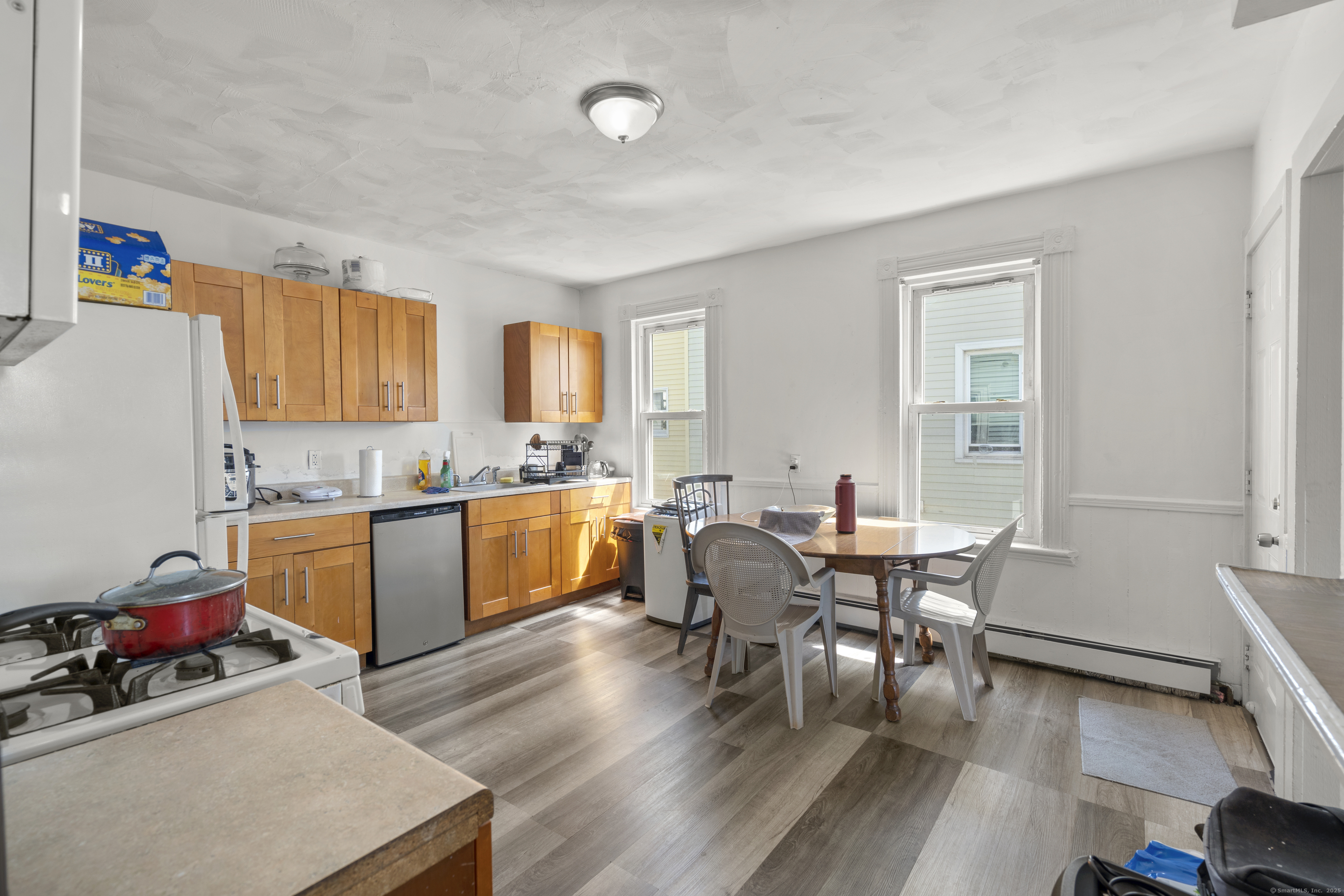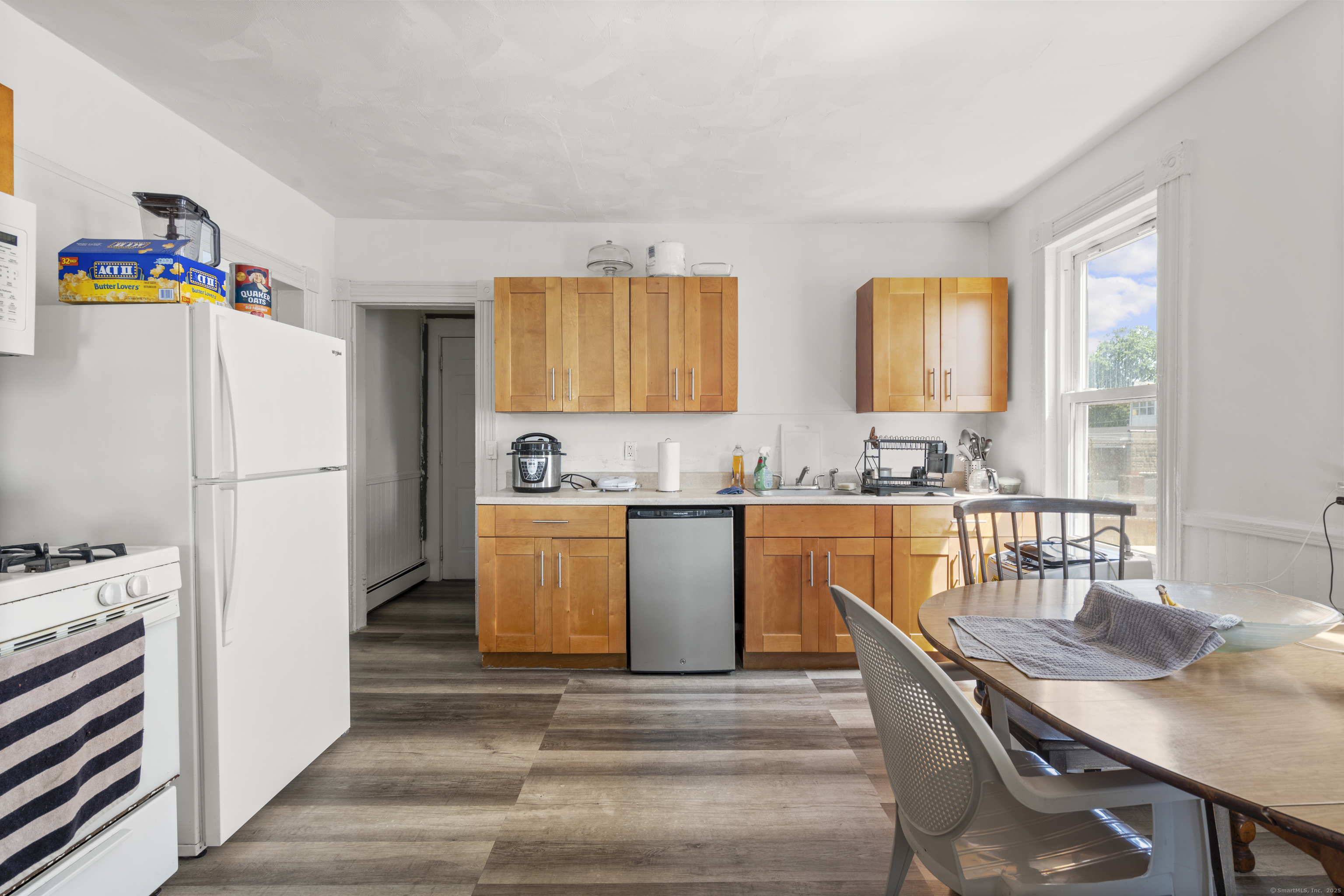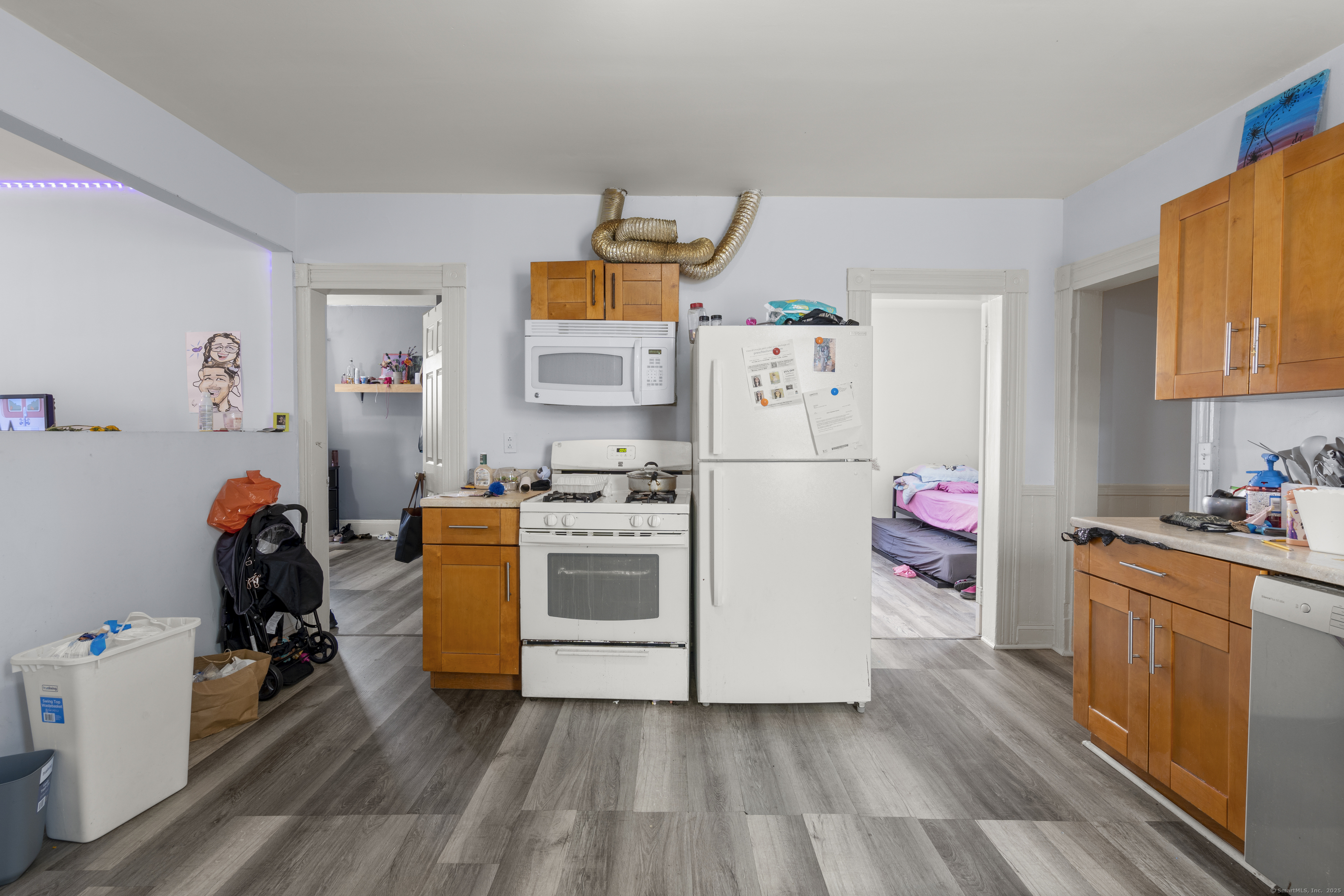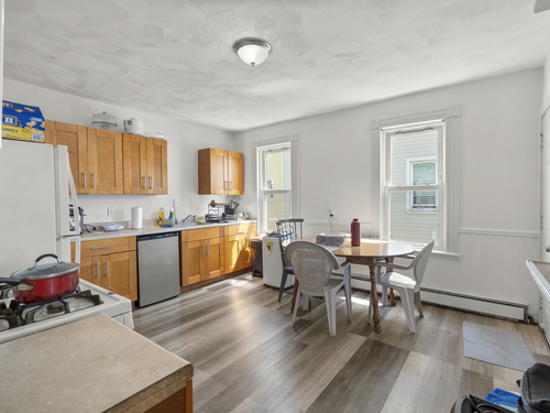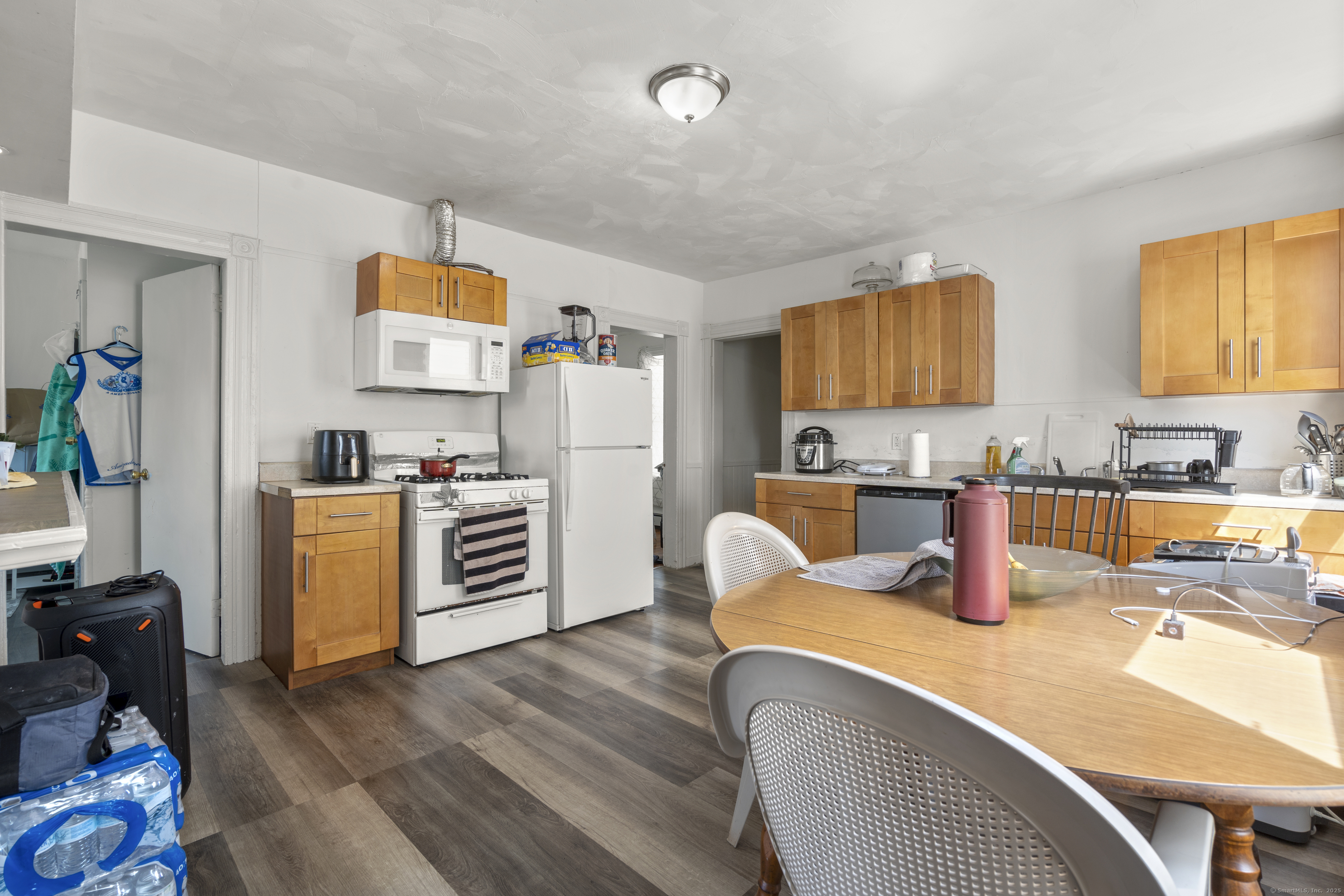 Welcome to this well-maintained 2-family home with additional finished living space in the basement. This property has been thoughtfully updated and is move-in ready, making it a great option for both owner-occupants and investors. The first-floor unit offers a spacious layout with new flooring and nicely updated interiors. The second-floor unit features new flooring throughout, a renovated bathroom, fresh paint, and a new refrigerator. Both the front and back porches have been refreshed, and the back staircase was recently rebuilt for added safety and convenience. The basement includes two finished rooms, adding to the home's overall living space. Additional highlights include gas heating, a roof relayered in 2024, and front and back porches for both units. The exterior has been consistently maintained, ensuring the property remains in excellent condition.