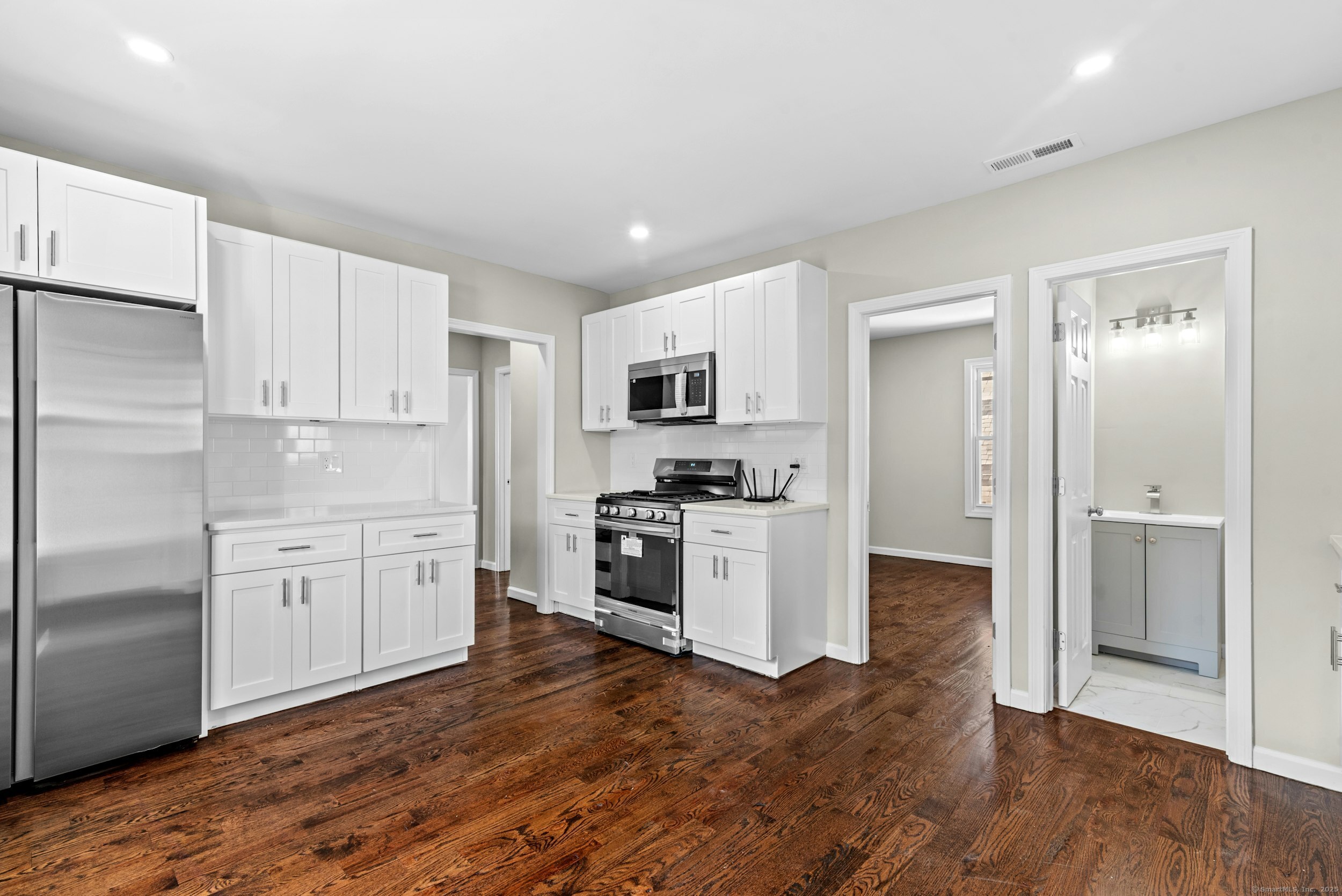 Beautiful Gut-Renovated Two-Family Home on the North End of Bridgeport! This fully renovated multifamily is a true turn-key property-perfect for an owner-occupant or an investor looking for strong rental potential. 1st Floor Unit: 2 spacious bedrooms, extra room/office (can serve as a 3rd bedroom), brand-new eat-in kitchen, large living room, and 1 full bathroom. 2nd & 3rd Floor Unit: 4 spacious bedrooms, brand-new eat-in kitchen, living room, 2 full bathrooms, plus enclosed porch and office space. Extensive Upgrades: New roof, siding, windows, gas furnaces, hot water tanks, plumbing, electrical, panels, appliances, insulation, drywall, doors, trims, and hardwood flooring throughout. Prime location close to public transportation, restaurants, shopping centers, colleges, hospitals, and major highways. A true turn-key property-perfect for an owner-occupant or an investor looking for strong rental potential.