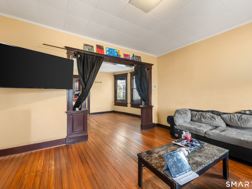 Turnkey three-family ideal for investors or owner-occupants. Each unit includes a kitchen, living room, dining room, bedroom, pantry, and hardwood floors. A separate oversized income producing 3-car garage with electric and a newer roof (1 year old) is currently leased and generates immediate additional income. The second-floor unit has been fully renovated-freshly painted with refinished hardwood floors, refurbished cabinets, brand-new stove and refrigerator, and a completely updated bathroom. Strong rental history. Perfectly located near schools, shopping, public transportation, Metro-North, and convenient access to I-95 and Routes 25/8.