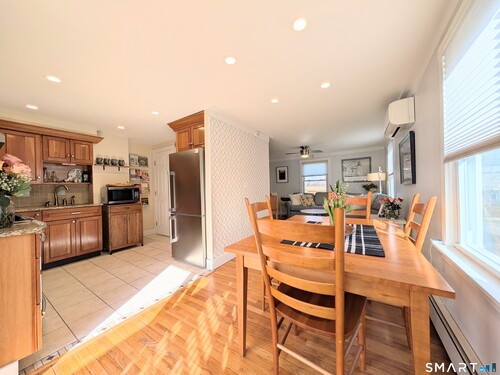 Beautifully maintained 2-Family, Side-by-Side Townhouse-Style Duplex offering the perfect blend of comfort, style, and functionality, featuring a newer roof and vinyl siding, along with an extra-large insulated two-car detached garage with a side-door entrance and an additional rear storage room, plus a long paved driveway. The left (owner's) unit welcomes you with a bright, inviting living room and a dining area with sliding doors that open to a relaxing private deck overlooking a spacious, beautifully landscaped backyard with a therapeutic view, filled with a lush and vibrant variety of beautifully established perennial plantings. The kitchen is tastefully appointed with solid wood cabinetry, granite countertops, and stainless steel appliances, complemented by a convenient half bath on the main level. Upstairs features a primary bedroom with a custom-built closet and an oversized cedar closet, a second bedroom, a full bath, and a linen closet. The right unit offers a similar layout, enhanced by a larger dining area in place of the half bath. Both units include a private full basement with washer and dryer hookups, beautifully maintained hardwood flooring throughout, and ceramic tile in the kitchens and baths. The owner's unit is further elevated by two split-system A/C units, exquisite light fixtures that add warmth & elegance throughout, and a private deck. Ideally located near the train station & major highways. Perfect for commuters, owner occupants, and investors.