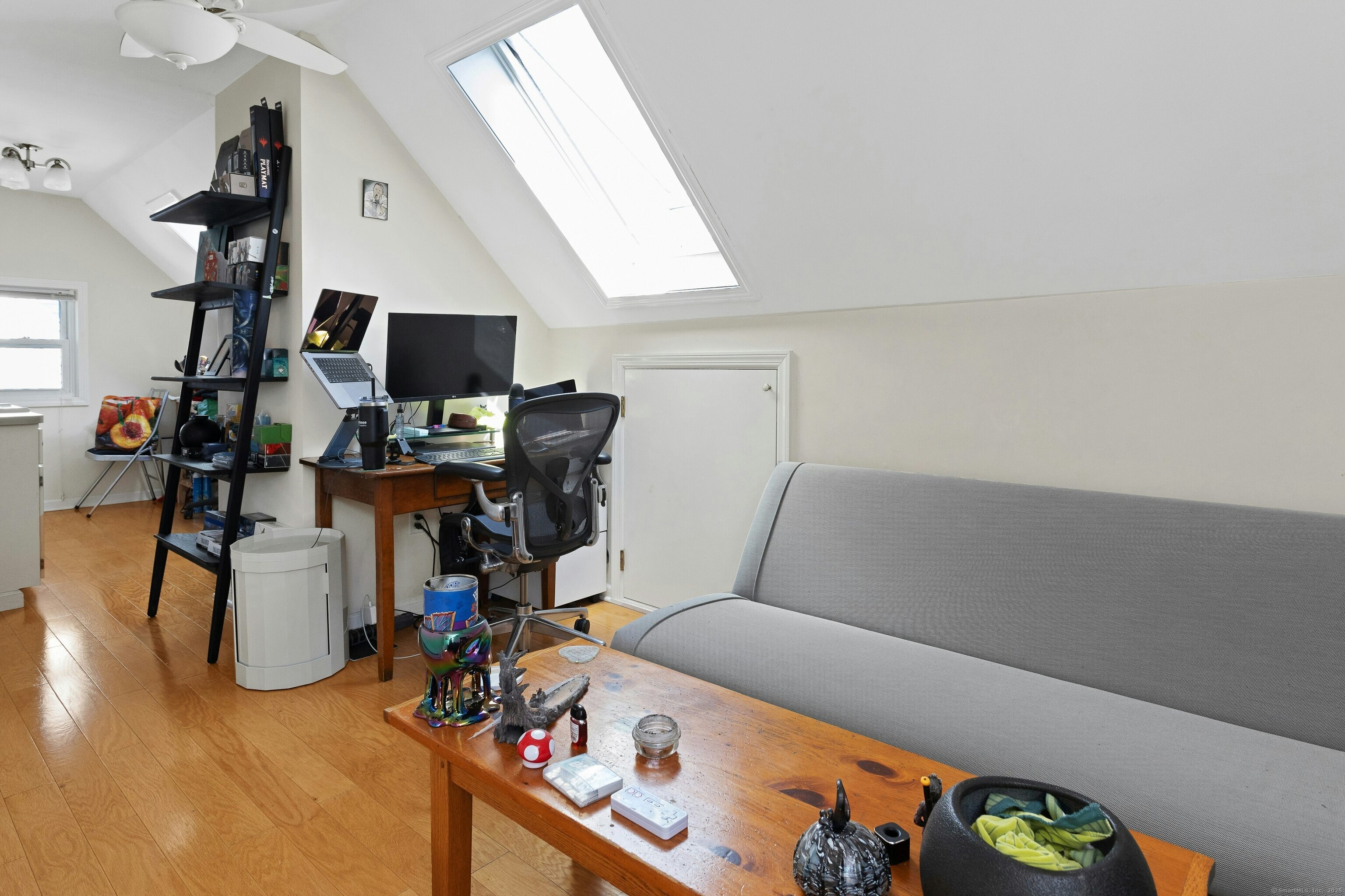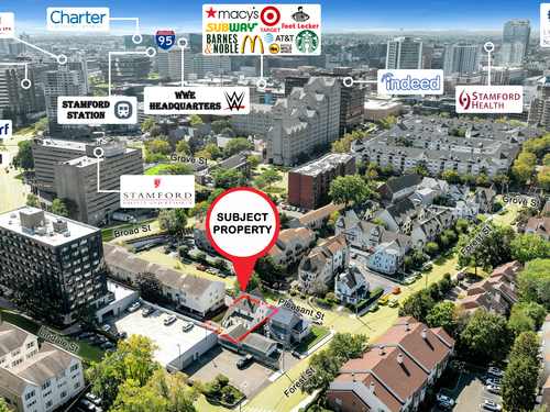 Meticulously maintained and truly unique, this property presents an incredible opportunity in the heart of downtown Stamford. Featuring three spacious residential units plus a grandfathered-in commercial workshop, it is a rare investment property with multiple streams of current and future income. The first floor hosts a 3-bedroom, 1-bath unit with a generous layout. The second floor is a larger one-bedroom, one-bath residence highlighted by large walk-in-closet/office. The third floor provides a cozy 1-bedroom, 1-bath apartment with skylights & storage nooks, perfect as an efficient rental or for Airbnb/short-term rental income given its prime location steps to downtown Stamford & minutes to Metro North. Adding to its distinct appeal is the standalone commercial workshop with a separate shed. This space is ideal for trades, storage, or creative uses-offering additional income streams. The lower level includes office space, storage, utility rooms, two (2) half baths & coin-operated laundry for tenants, creating future opportunities for expansion. Additional highlights include a new roof, freshly sealed driveway, and private entrances for each unit-all tucked away on a quiet dead-end street! This turn-key property offers multiple revenue streams and strong value-add income opportunities for investors. This is truly a one-of-a-kind property that blends convenience, versatility, and strong rental demand -a rare chance to own a multi-use investment in mid-city Stamford!