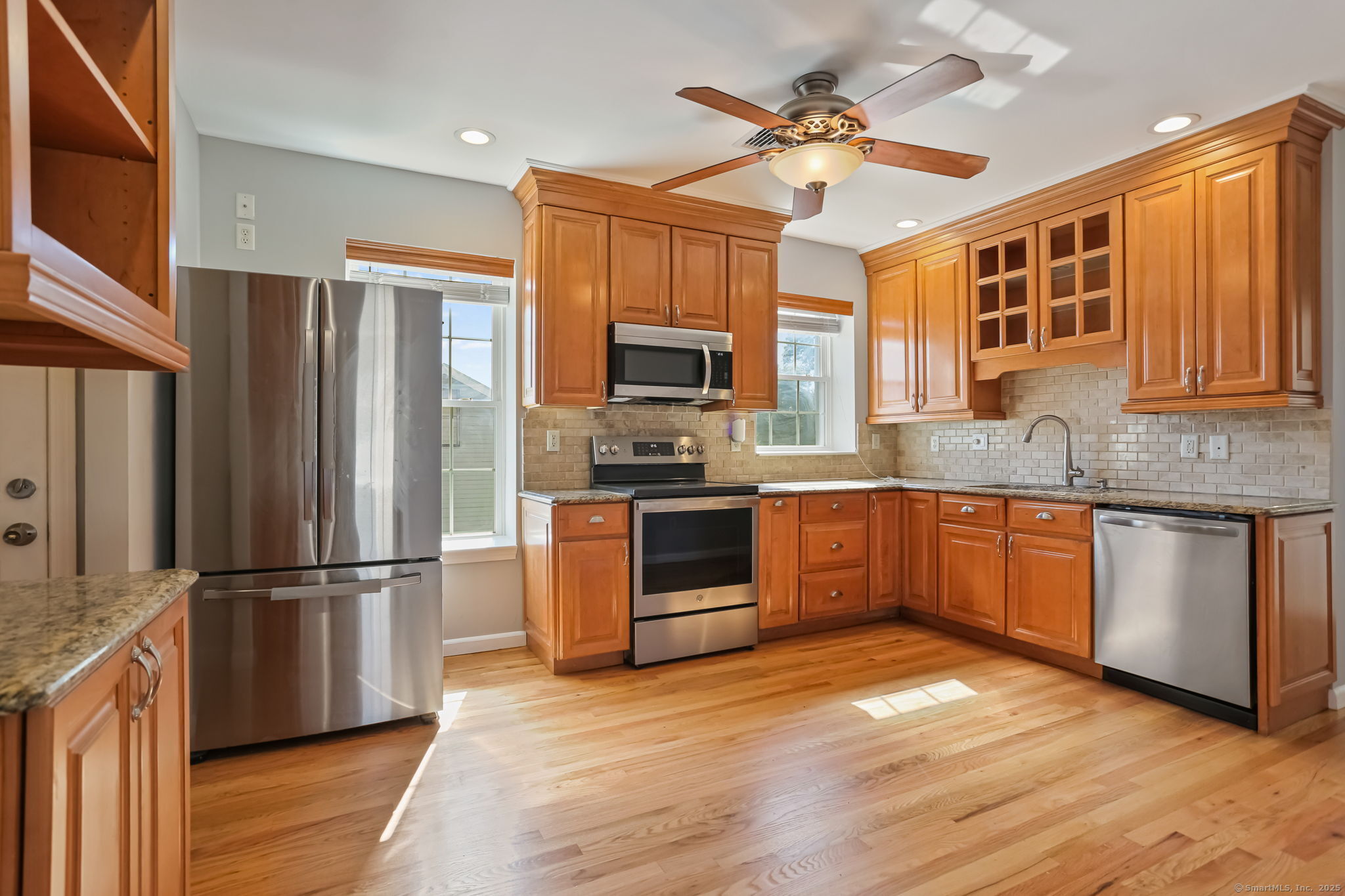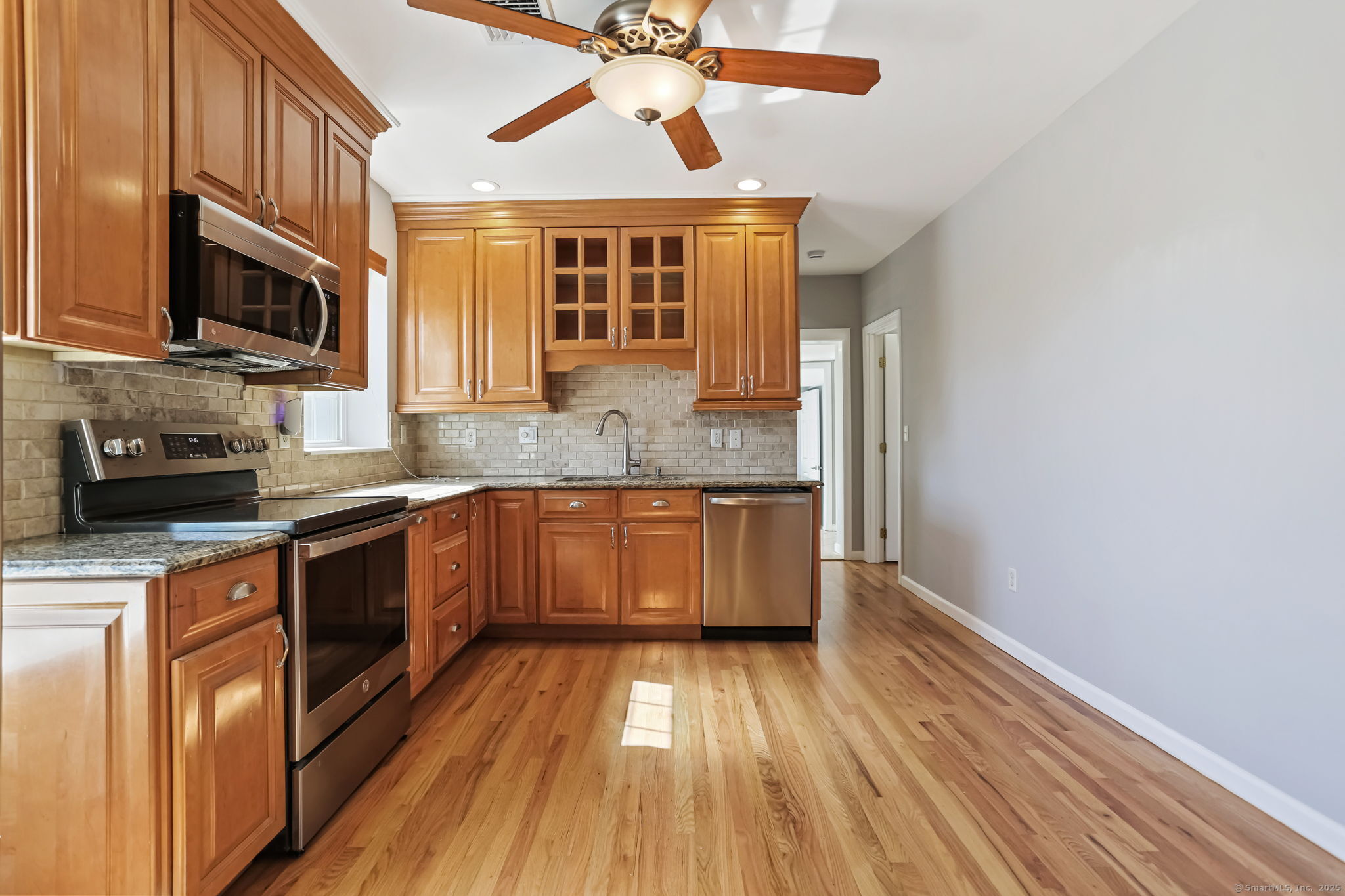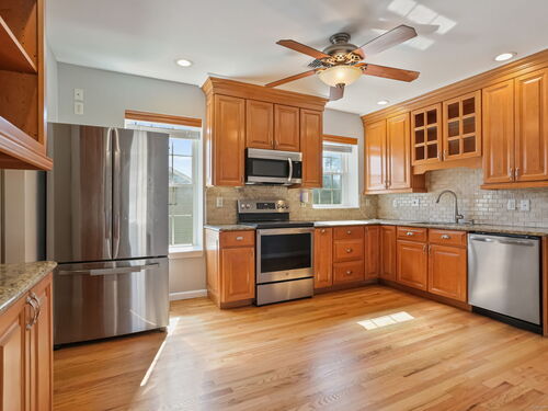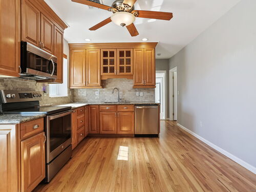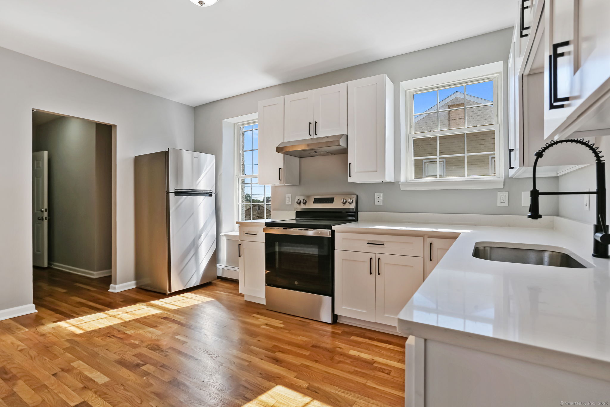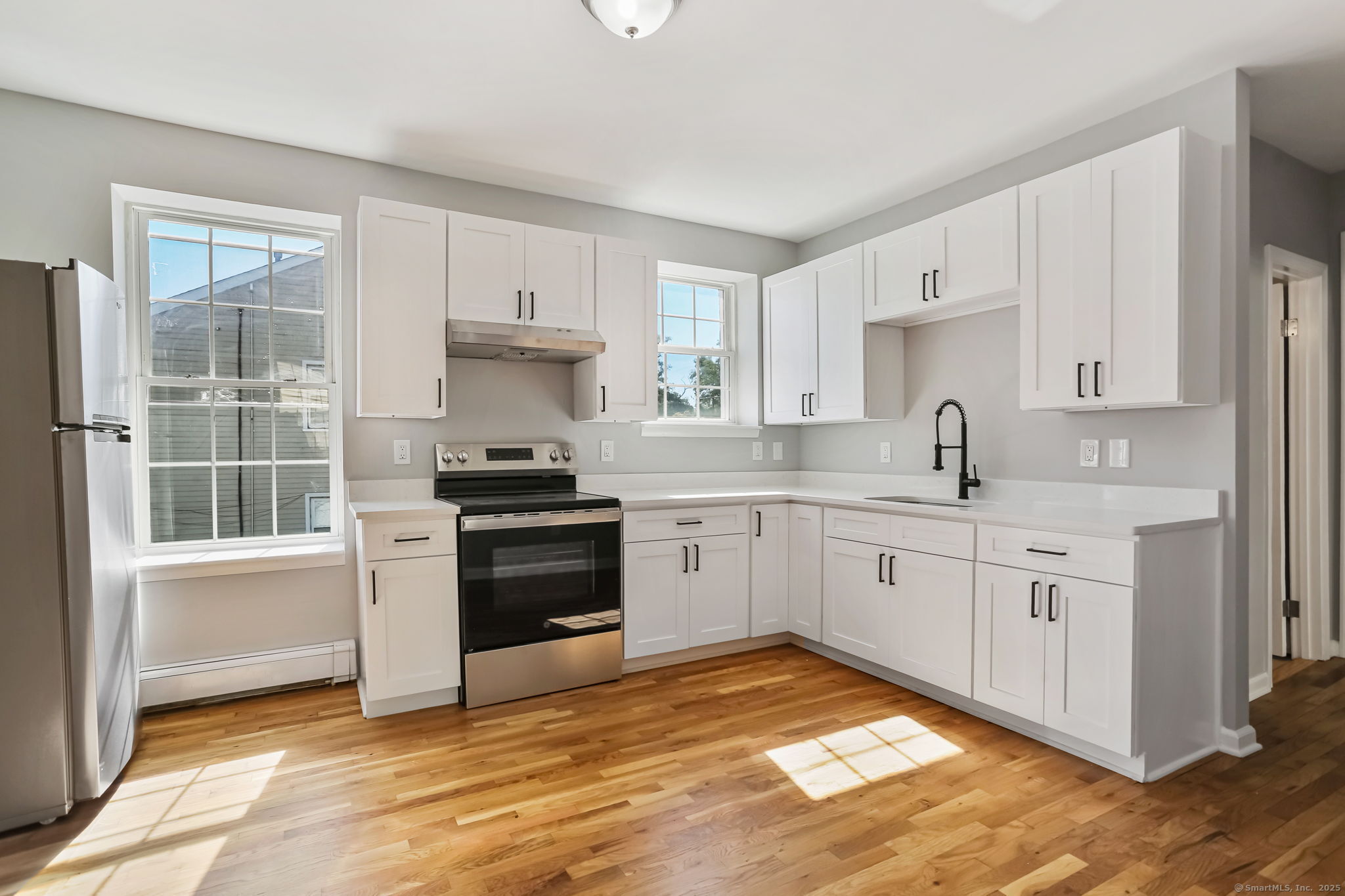 Don't miss this exceptional two-family home located in the desirable North End of Bridgeport! Both units have been thoughtfully refreshed, offering a move-in ready experience for homeowners or tenants alike. The first floor includes five rooms with two bedrooms and one full bath, a spacious laundry room , a newly renovated white kitchen with stainless steel appliances, gleaming hardwood floors throughout, and a freshly painted interior. The second floor has been completely painted and rejuvenated, making it move-in ready." featuring three bedrooms, two full baths, central air conditioning, solar panels for energy efficiency, newer windows, and a-new partial roof. The exterior has been recently painted to enhance the home's curb appeal. A newly paved driveway offers ample parking, accommodating 4 or more cars. The outdoor space is a blank canvas, ready for your personal touch and creativity. Ideal for entertaining or relaxing. Conveniently located near St. Vincent's Hospital and offering easy access to major highways, this property is perfect for both owner-occupants and investors. Schedule your showing today!