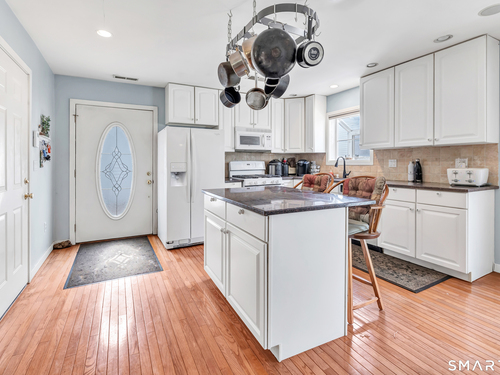Exceptional investment and lifestyle opportunity in the highly desirable Bulls Head neighborhood of Stamford! Tucked away on a quiet dead-end street just minutes from vibrant downtown, this rare three-unit, legal two-family property offers versatility, strong income potential and modern updates throughout. The front residence (Unit 1) is a charming Cape Cod-style home featuring 3 bedrooms and 1.5 baths. The main level offers a classic layout with a spacious living room, dining room, eat-in kitchen and a primary bedroom with convenient in-unit laundry. Upstairs, you'll find two additional bedrooms and a half bath. The rear residence (Unit 2), built in 2005 and located above the three-car garage, offers a bright and open floor plan with 1 bedroom and 1.5 baths. This thoughtfully designed space includes a kitchen with granite countertops and center island, dining and living areas, central vacuum and a laundry room. The primary suite features cathedral ceilings, skylights, a walk-in closet, and an oversized bath with jacuzzi tub. Sliding doors lead to a private deck overlooking a level backyard. (Unit 3) has been newly constructed in 2024 and serves as a fully independent in-law/studio apartment. With its own private entrance, kitchen, full bath and open layout, it provides excellent rental or multigenerational living potential.