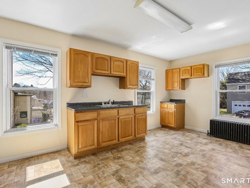 Welcome to this spacious 6 bedroom, 3 bath non conforming two family home that includes a 3 bedroom upstairs apartment that can be reconfigured, offering flexibility for additional living space or rental income. The home can function as a 5 bedroom residence with a 1bedroom apartment, a 6 bedroom single family home, or a 3up/3down multifamily layout. Per zoning, one unit must be owner-occupied. A standout feature is the detached 3 car garage with unfinished space above-ideal for an office, studio, storage, or future customization. A solid structure with multiple use options and strong potential for the next owner. Included in the purchase is a single family building lot of .28 acre and the 2 family home on .33 acre. The additional lot has city water and sewer access.
