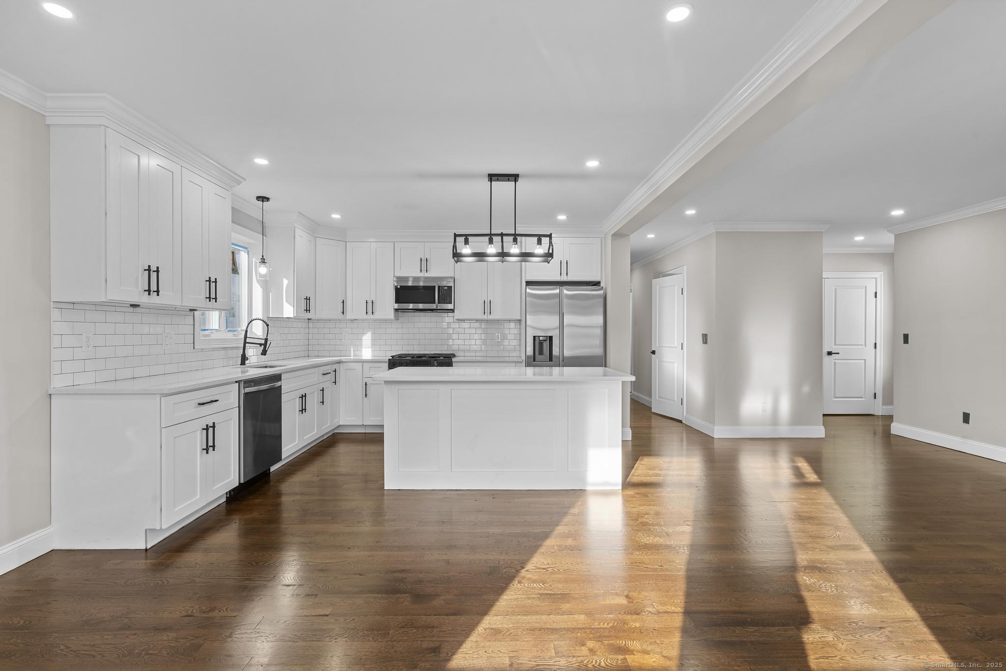 First floor offers 3 bedrooms, 1.5 baths, Open Floor plan, Modern Kitchen, Hardwood floors throughout. Second floor offers 4 bedrooms and 2.5 baths same open floor plan and Modern Kitchen, hardwood floors as well. Kitchen appliances included or both units. Both Units offer in-unit laundry. Central Air conditioning and tankless water heaters for each unit. ***Seller is offering a 1yr Guarantee on mechanicals and structural building construction***