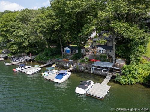 Lakefront Investment Paradise - 100 Feet of Direct Waterfront! Live the lake life while generating serious income with this rare opportunity on the water. Set on a private stretch of shoreline, this income-producing property features six individual cottages and three docks with six boat slips - perfect for short-term rentals or seasonal tenants. Each cottage offers a private wood deck, scenic lake views, and tranquil surroundings backed by unbuildable state forest land, ensuring lasting privacy and natural beauty. The shared waterfront area includes a lounge space with a canopy and a Tiki bar, making it an ideal spot for guests or entertaining. The main house, currently used by the owner, has been tastefully updated with tile and hardwood flooring, granite countertops, stainless steel appliances, and includes a walkout basement. It also generates approximately $32,000/year on Airbnb. All roofs were replaced just three years ago, offering peace of mind for years to come. Whether you're seeking a personal retreat with rental income or a high-performing short-term rental portfolio, this property delivers on both lifestyle and returns.