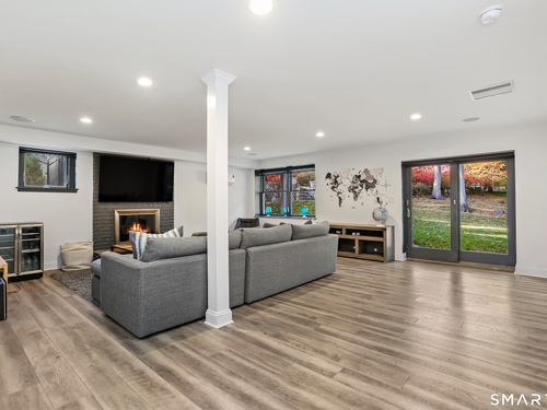 One of Westport's premiere CUL-DE-SACS, WALKING DISTANCE TO ALL 3 SCHOOLS (Long Lots, Bedford, Staples), and 2.3 MILES TO GREENS FARMS TRAIN STATION, this beautifully renovated (2016/2017) 5-bedroom, 4.5-bath home perfectly blends modern luxury with timeless charm. Set on a full acre of manicured grounds, this property offers a serene retreat just minutes from every essential. The open floor plan is designed for effortless entertaining, centered around a gourmet eat-in kitchen with high-end appliances. The main level hosts three bedrooms and 2.5 baths, while the upper level serves as a private sanctuary-a lavish primary suite featuring two expansive walk-in closets, a spa-inspired bath, and a cozy lounge. The light-filled, walk-out lower level is exceptionally versatile, offering a 5th bedroom/gym, full bath, rec room, mudroom, and a dedicated home office with three separate entrances-ideal for remote work. Outside, your personal oasis awaits: a sprawling deck overlooks an inviting in-ground pool/spa, surrounded by lush greenery and a yard perfect for recreation. Unbeatable location complete with natural gas, public water, and easy access to vibrant shopping and dining. This isn't just a home-it's a lifestyle.