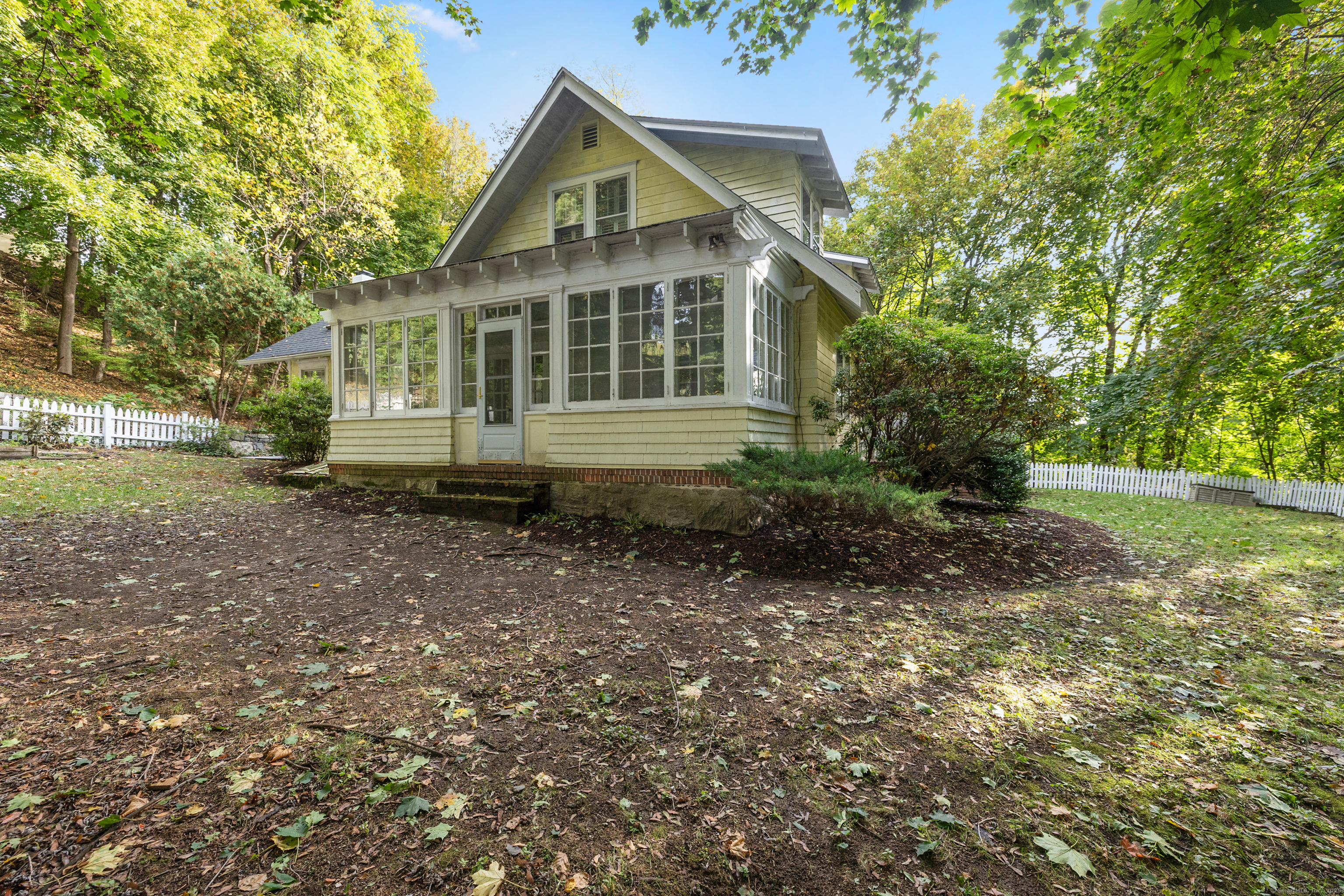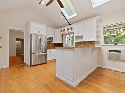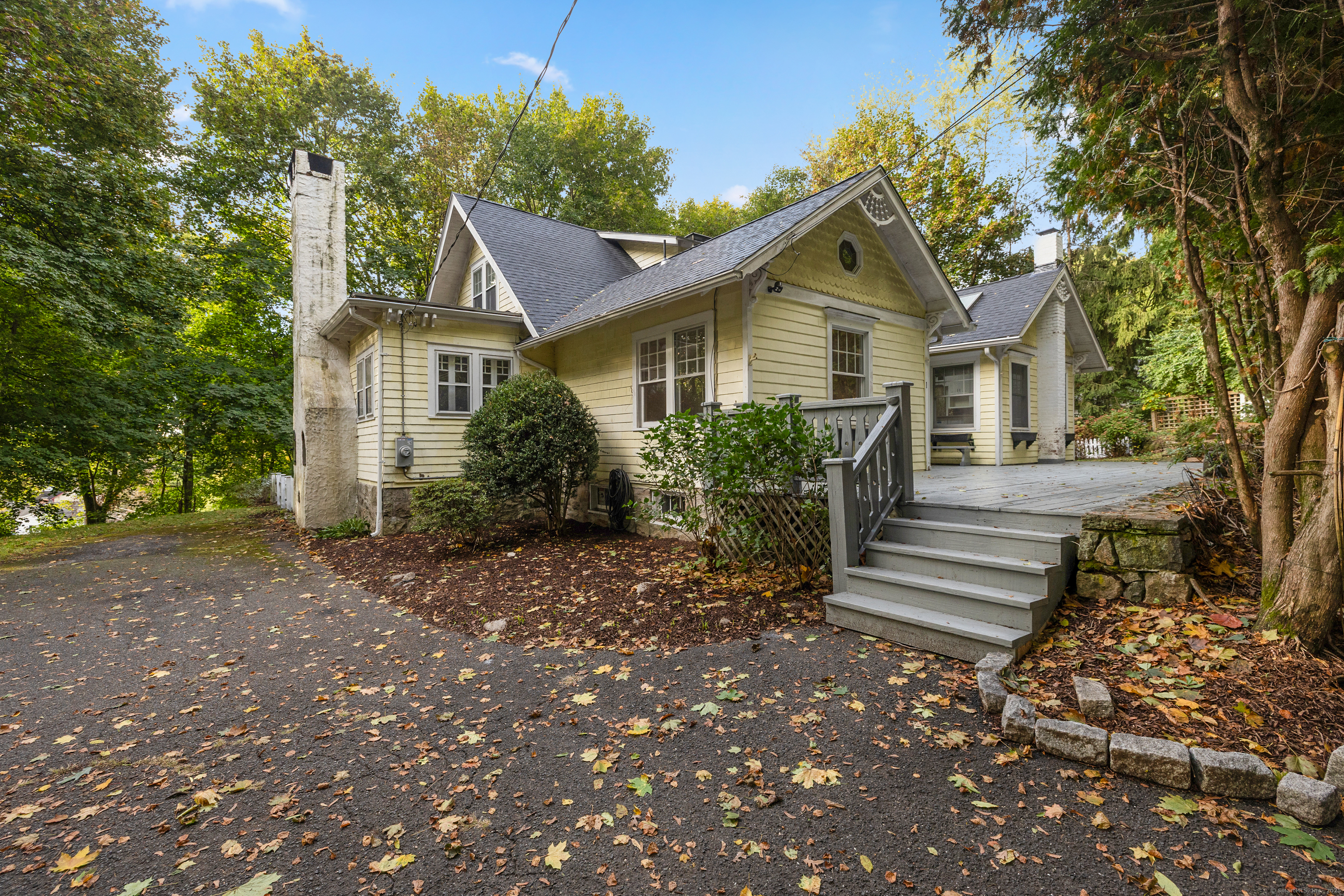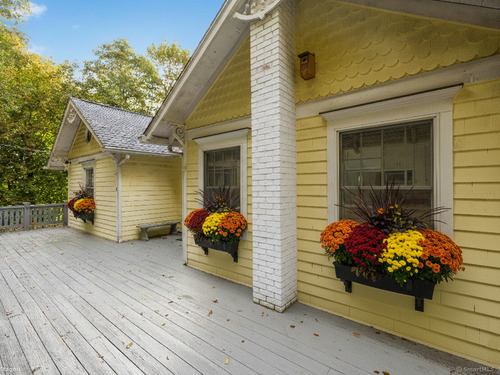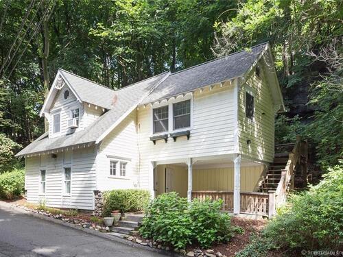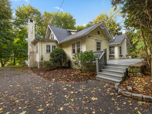 Welcome home to this 1920's Storybook Cape with Cottage brimming with character and charm-ideally located in the desirable Lower East Rocks neighborhood. A spacious front deck leads into the skylit foyer and updated eat-in kitchen featuring granite counters, stainless steel appliances, vaulted ceiling and multiple skylights. The cozy living room with fireplace and French doors opens to a private yard, while the formal dining room with French doors leads to a delightful screened in porch. The spacious family room with stone fireplace, two full baths (one updated), and a bedroom complete the main level. Upstairs, you'll find two additional bedrooms and an updated full bath, all with lovely treetop views and hardwood floors throughout the main house. Freshly painted interior and a new roof on main house & cottage add to the appeal. The unfinished basement has great storage. BONUS: Cottage (approx. 548 sq ft) offers 1 bedroom, living room, EIK and private deck offering great income potential for the savvy buyer.