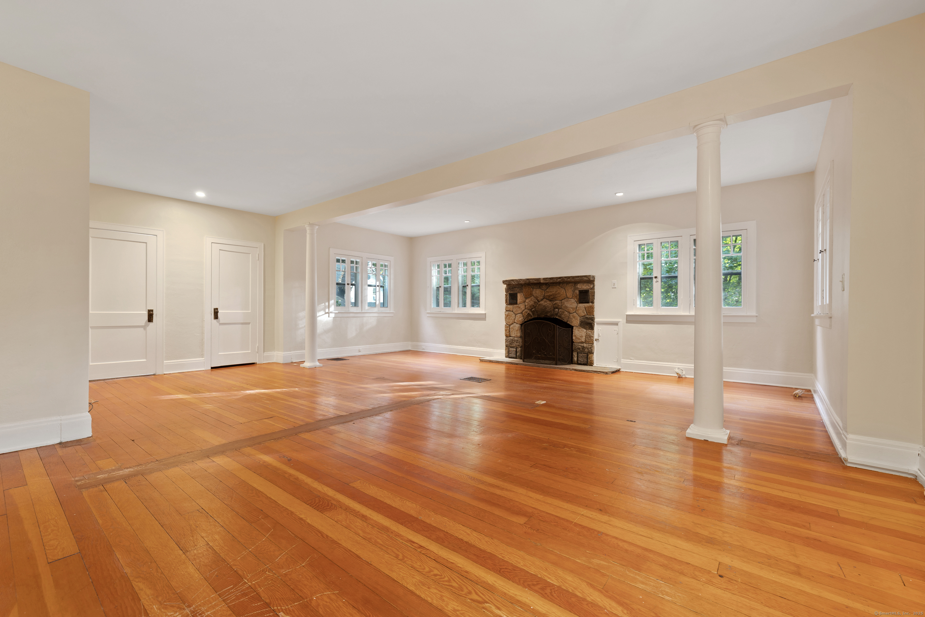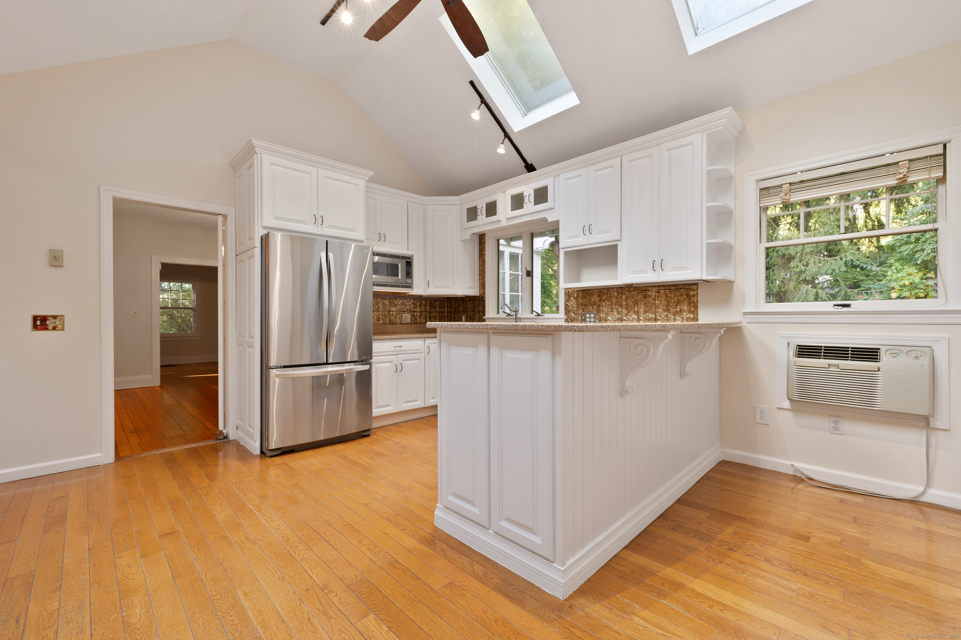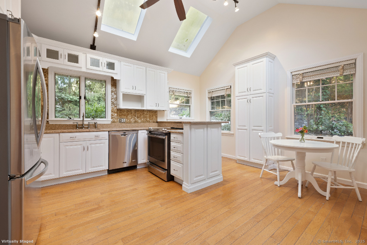 Welcome home to this 1920's Storybook Cape with Cottage brimming with character and charm-ideally located in the desirable Lower East Rocks neighborhood. A spacious front deck leads into the skylit foyer and updated eat-in kitchen featuring granite counters, stainless steel appliances, vaulted ceiling and multiple skylights. The cozy living room with fireplace and French doors opens to a private yard, while the formal dining room with French doors leads to a delightful screened in porch. The spacious family room with stone fireplace, two full baths (one updated), and a bedroom complete the main level. Upstairs, you'll find two additional bedrooms and an updated full bath, all with lovely treetop views and hardwood floors throughout the main house. Freshly painted interior and a new roof on main house & cottage add to the appeal. The unfinished basement has great storage. BONUS: Cottage (approx. 548 sq ft) offers 1 bedroom, living room, EIK and private deck offering great income potential for the savvy buyer.