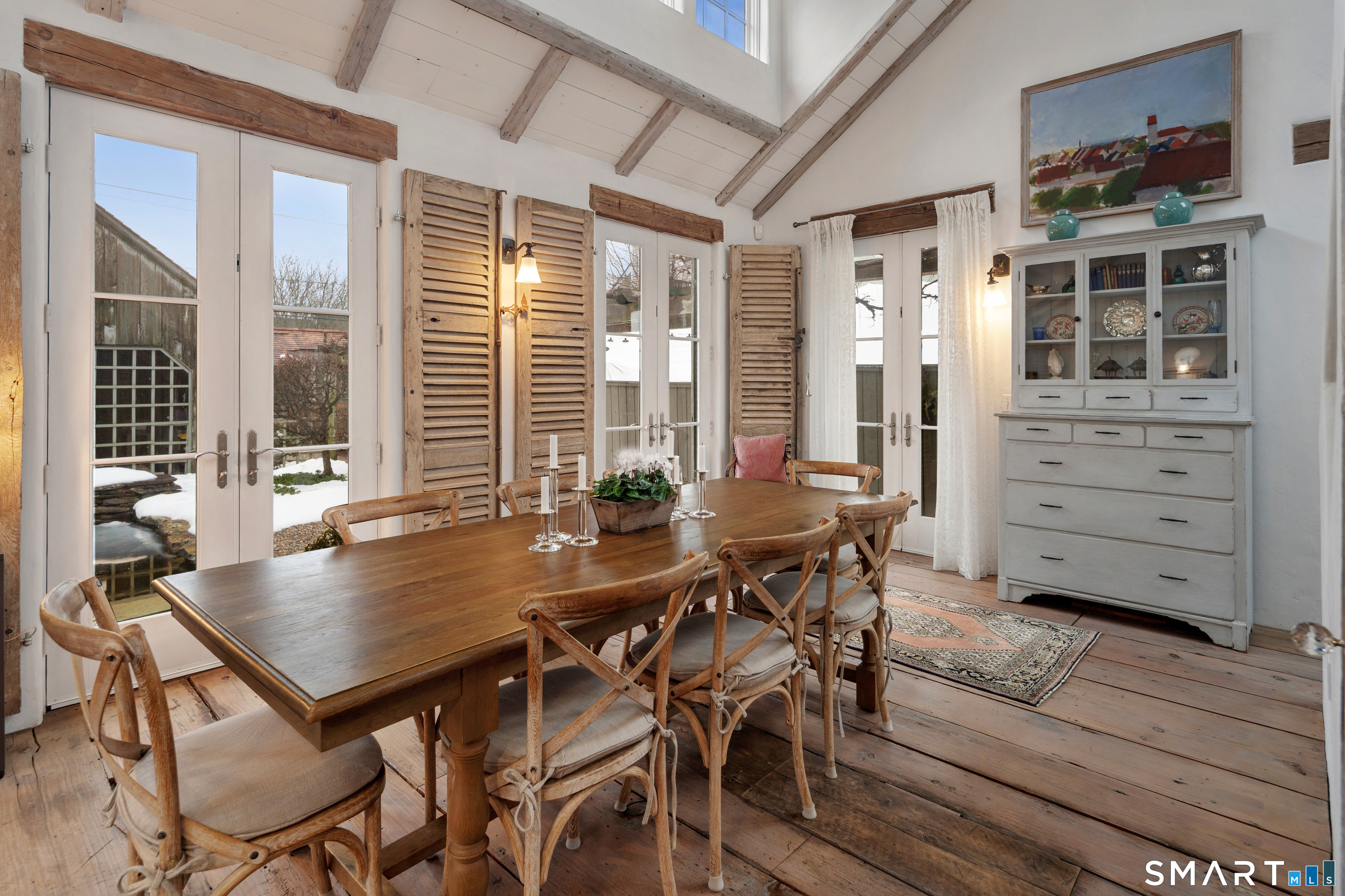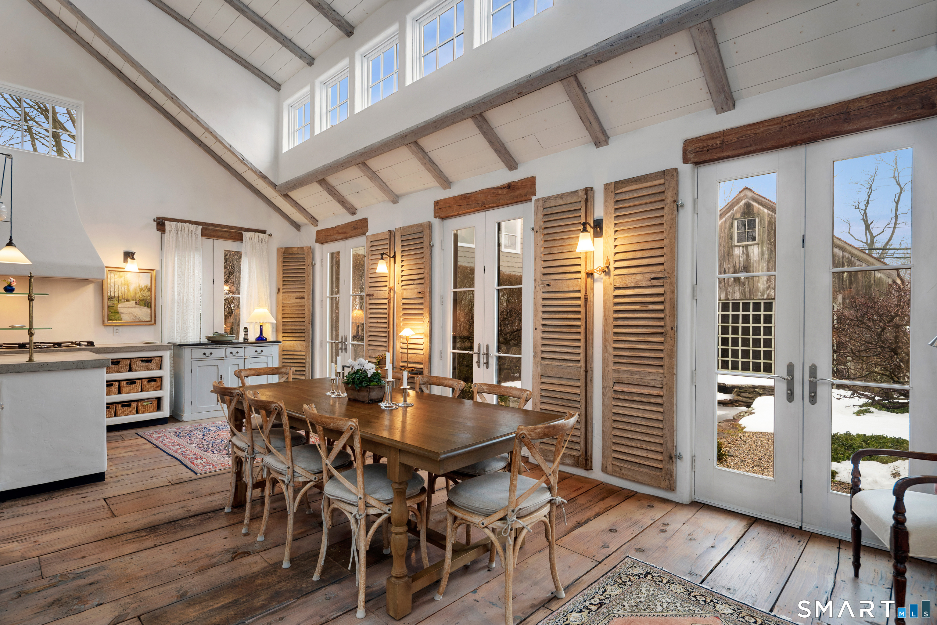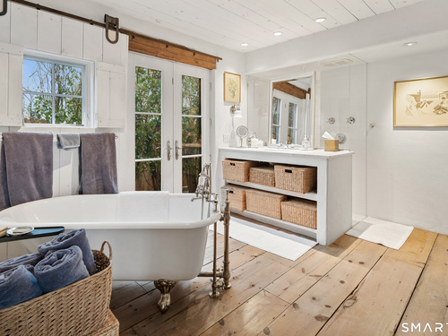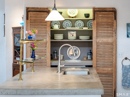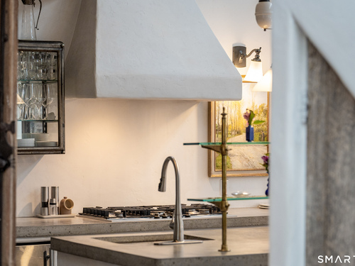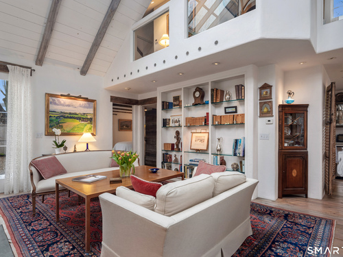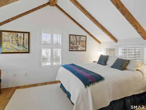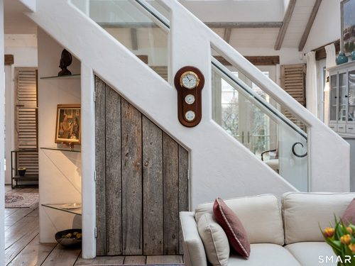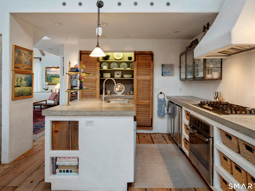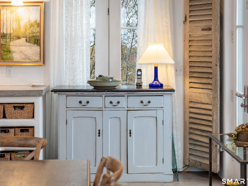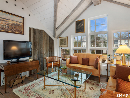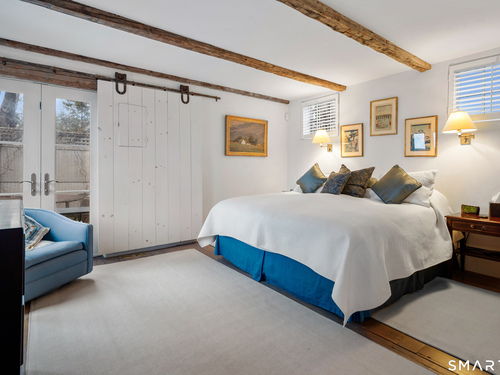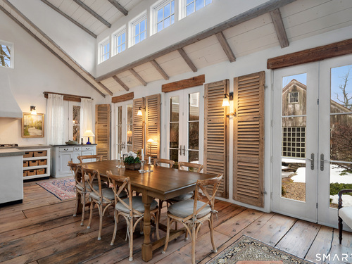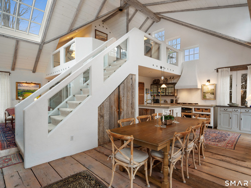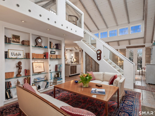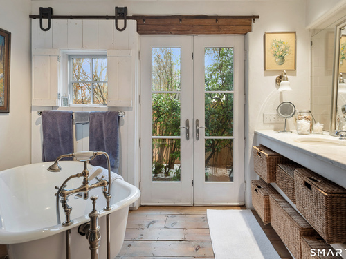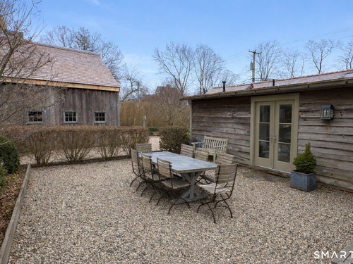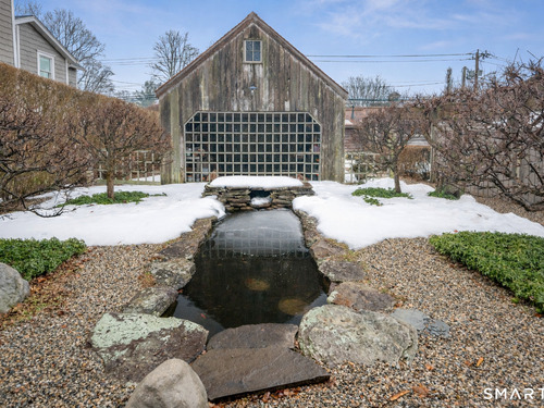 Step into this magical home and be transported to the South of France-Provence in Rowayton! Bathed in natural light, the residence blends refined, understated elegance with intimate yet open living spaces. Throughout the home, French doors open to serene outdoor settings including a koi pond, private sitting areas, and tranquil pebbled gardens. The main house features a beautiful living room with fireplace and soaring two-story ceiling, a charming Provencal-inspired dining room, and a thoughtfully designed kitchen. A 1st floor primary suite offers comfort and convenience, while the 2nd floor loft provides Five Mile River and treetop views along with an additional bedroom and full bath. "The Smithy," originally built in 1775 and completely rebuilt in 2002, is a charming detached structure offering a versatile office or studio space with full bath and its own private patio -perfect for guests, work-from-home, or creative pursuits. A delightful barn/garage features a lattice wall that welcomes natural light and frames views of the garden and wisteria vine. The entire property was thoughtfully designed by Barbara Garfield, celebrated for her distinctive attention to detail. Special features include wrought iron accents, random-width flooring, reclaimed wood and beams from historic barns in Connecticut and the South of France. All in the heart of Rowayton. Walk to shops, restaurants, beach, town dock, tennis, pickleball, library, dog park and train to NYC. Truly a special offering