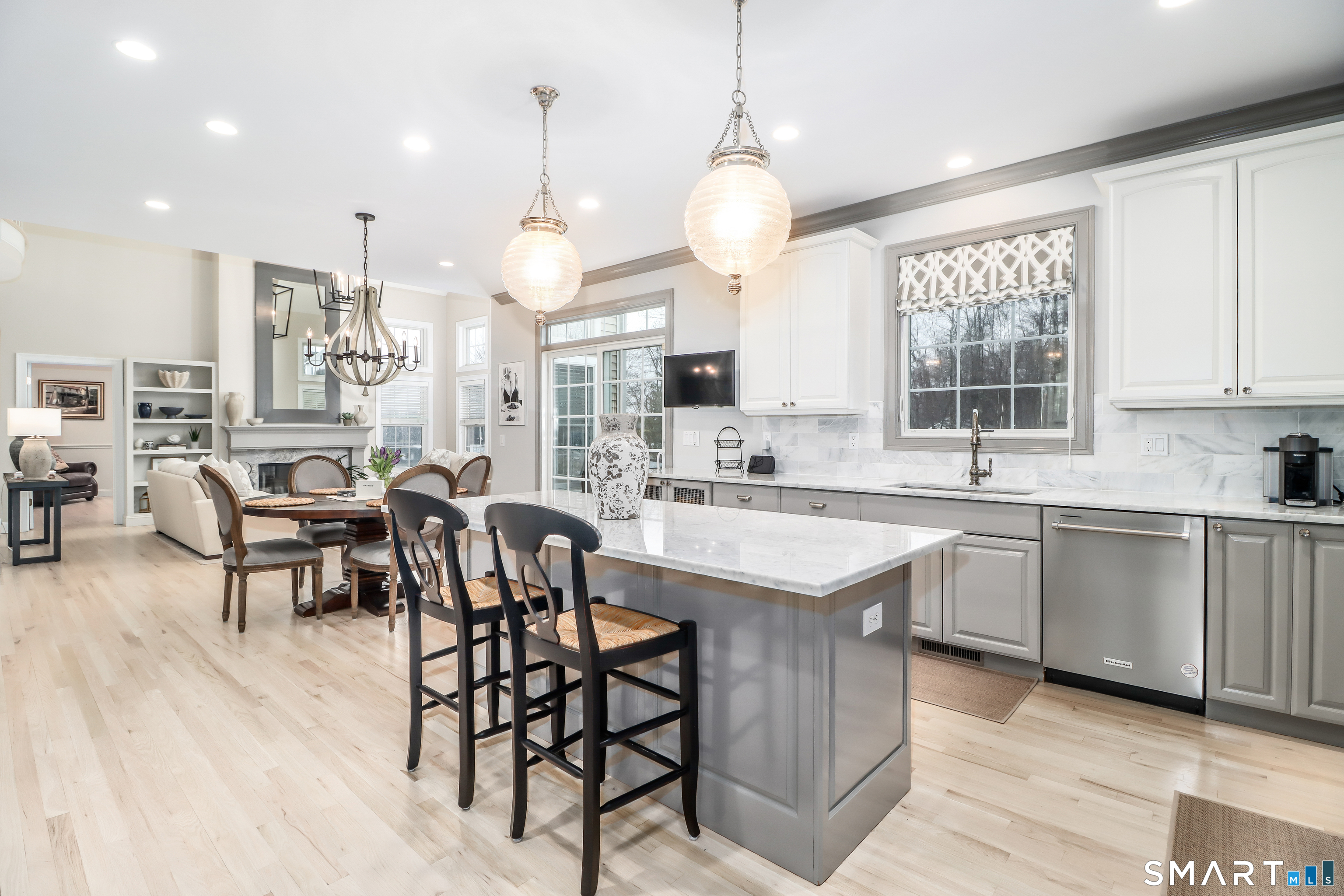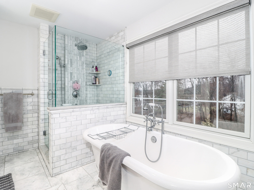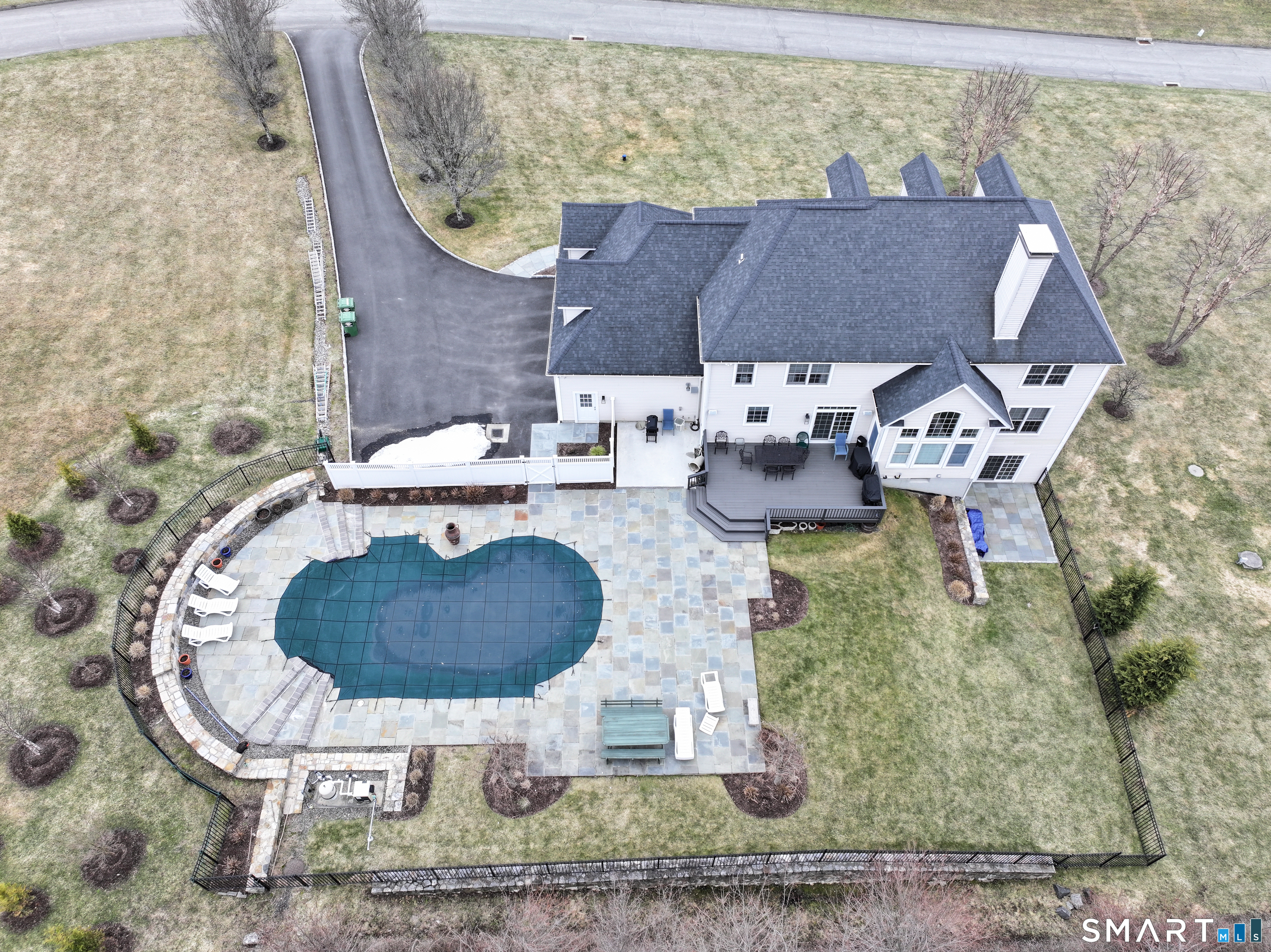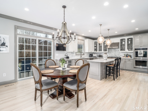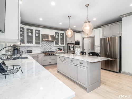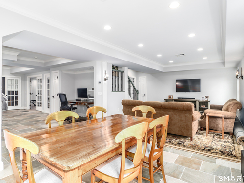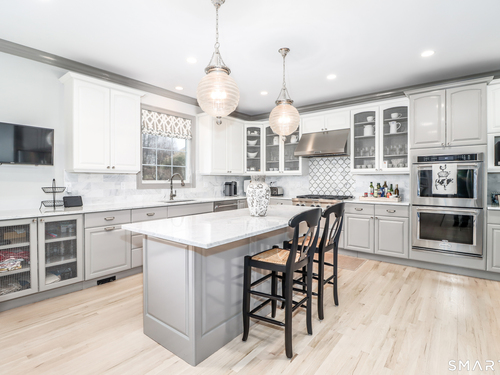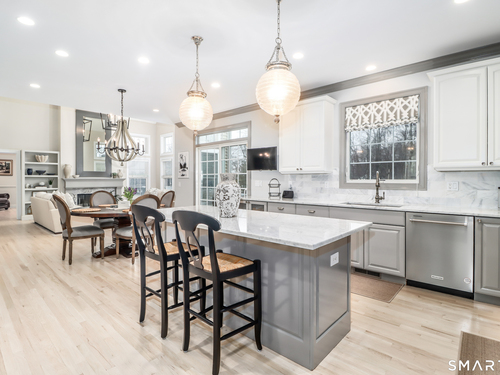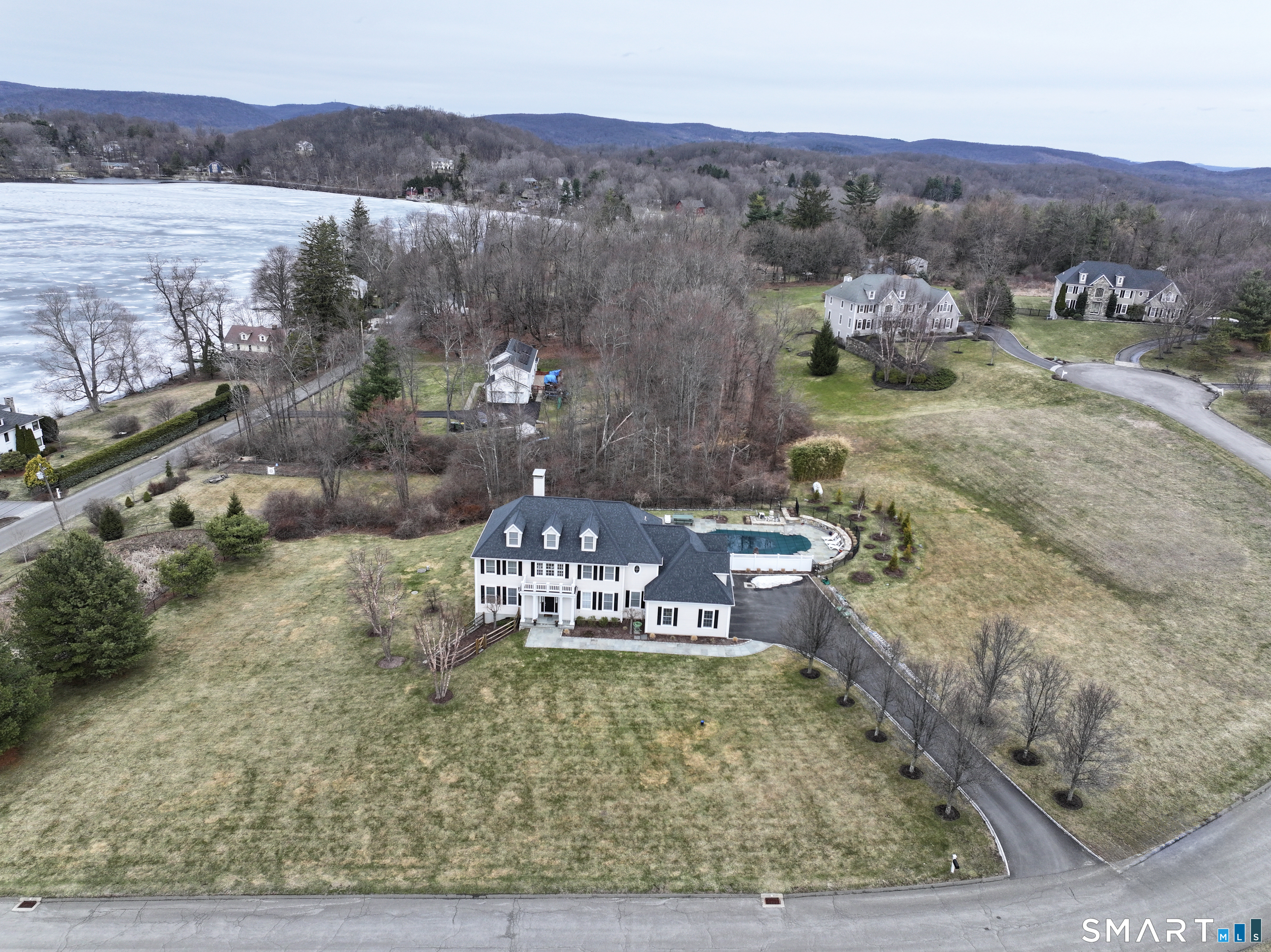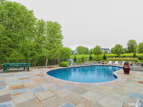 There's something special about being number one, and #1 Meadow Ridge Drive lives up to the expectation! Offering over 5,000 square feet of spectacular updated living space and a backyard retreat designed for unforgettable summers. The main level features an open-concept kitchen & family room with marble counters, gas cooktop, and a handsome stone surround fireplace serving as the focal point of the family room. Formal dining & living rooms, along with a private home office, provide the perfect balance of space for everyday living and entertaining. Upstairs are four generously sized bedrooms, including a spacious primary suite with two walk-in closets and a spa-like bathroom complete with a soaking tub, tiled shower, and double vanities. The thoughtfully designed laundry room makes the task surprisingly enjoyable, featuring hanging racks, folding space, and room for ironing all in one place. The finished lower level expands the home's versatility with a media room, home gym, full bath, second laundry hookup (perfect for towels after a day at the pool), wet bar, additional living area, and private patio. A walk-up attic and front & back staircases add to the home's functionality and appeal. Don't plan a summer vacation, this backyard is the destination! A custom kidney-shaped heated Gunite pool takes center stage, surrounded by an expansive stone patio, beautifully landscaped grounds with ornamental grasses and trees, and completed with magnificent sunset views over Ball Pond