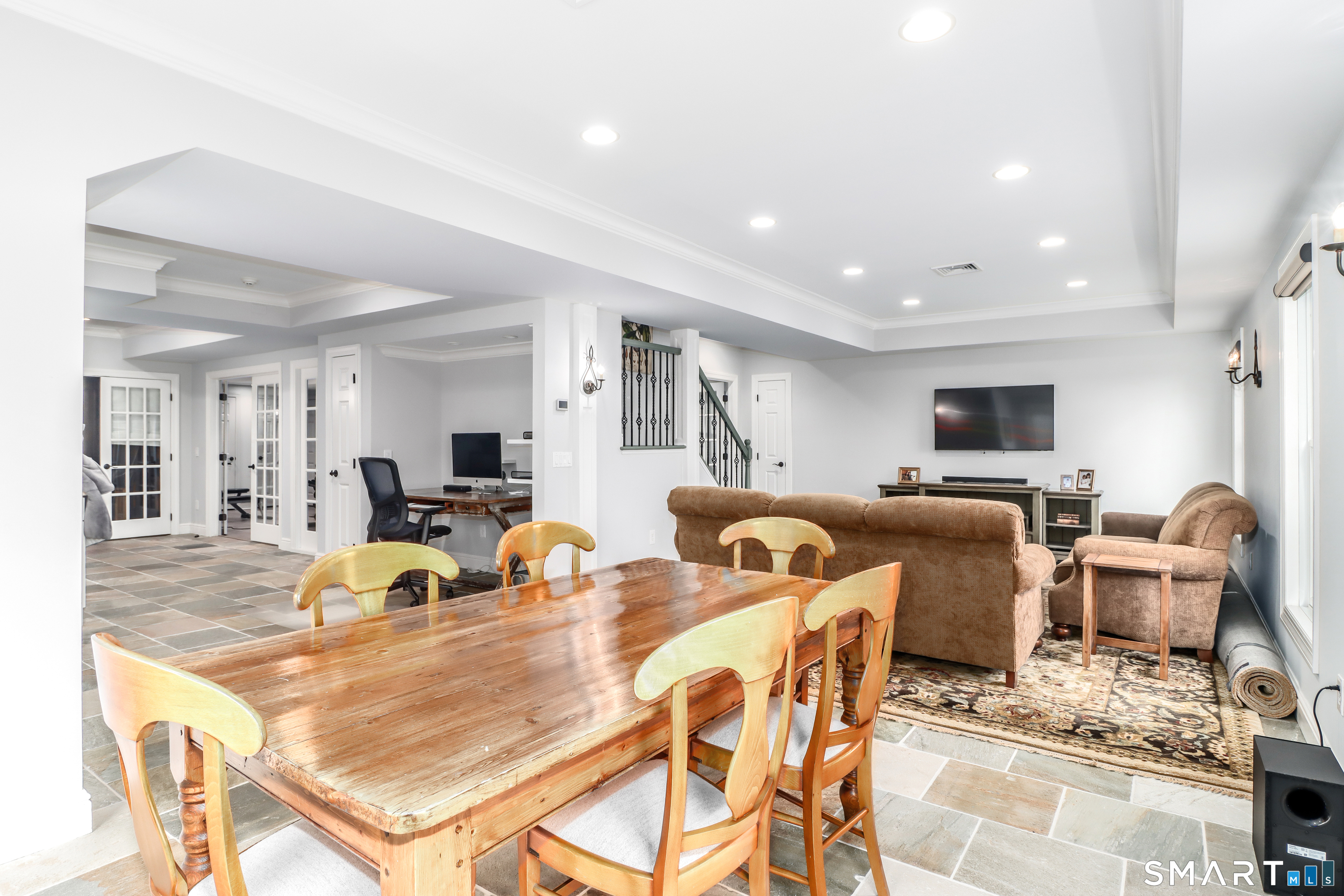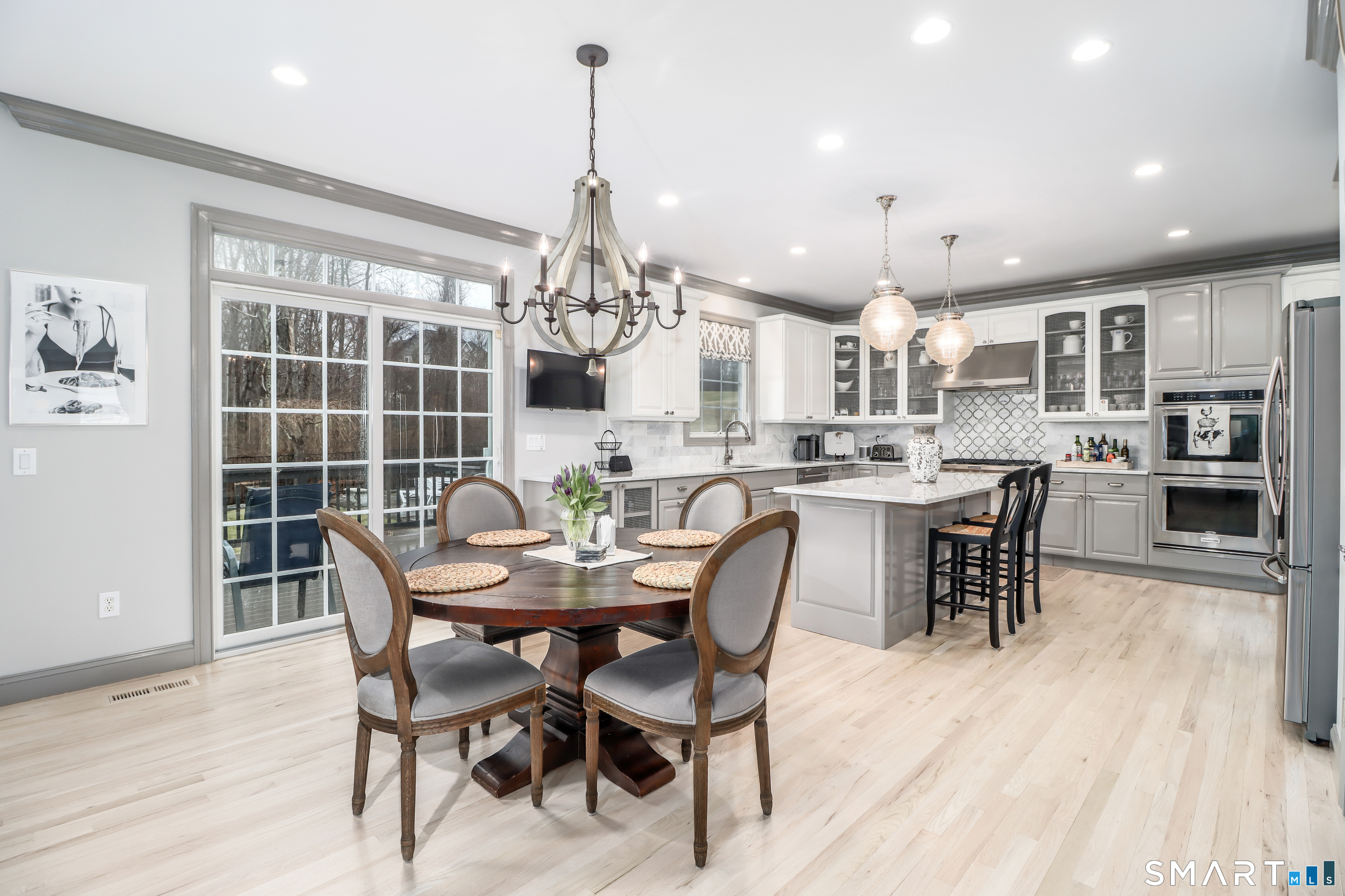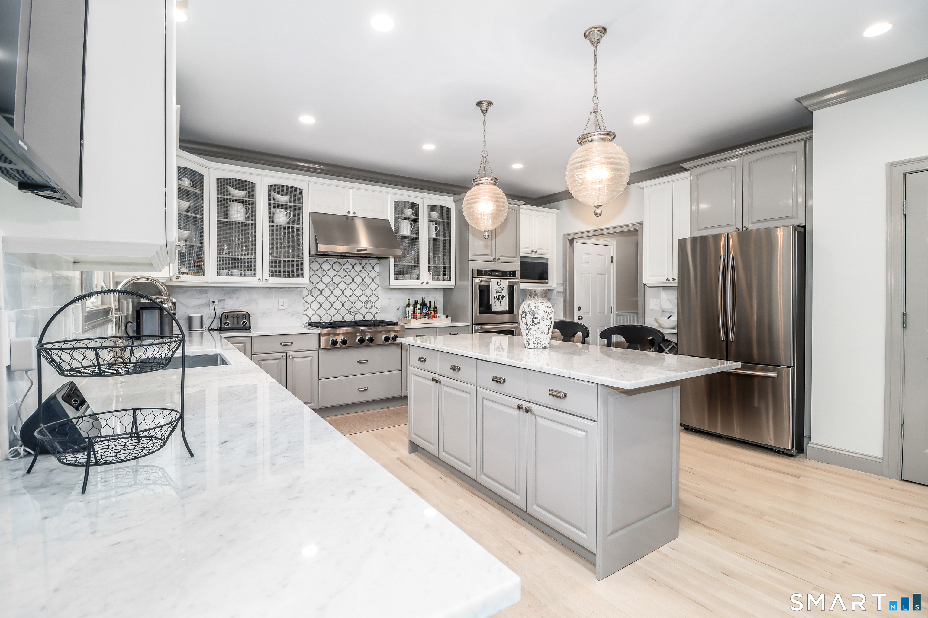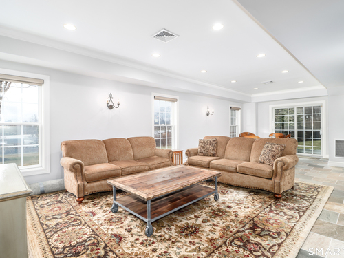 There's something special about being number one, and #1 Meadow Ridge Drive lives up to the expectation! Offering over 5,000 square feet of spectacular updated living space and a backyard retreat designed for unforgettable summers. The main level features an open-concept kitchen & family room with marble counters, gas cooktop, and a handsome stone surround fireplace serving as the focal point of the family room. Formal dining & living rooms, along with a private home office, provide the perfect balance of space for everyday living and entertaining. Upstairs are four generously sized bedrooms, including a spacious primary suite with two walk-in closets and a spa-like bathroom complete with a soaking tub, tiled shower, and double vanities. The thoughtfully designed laundry room makes the task surprisingly enjoyable, featuring hanging racks, folding space, and room for ironing all in one place. The finished lower level expands the home's versatility with a media room, home gym, full bath, second laundry hookup (perfect for towels after a day at the pool), wet bar, additional living area, and private patio. A walk-up attic and front & back staircases add to the home's functionality and appeal. Don't plan a summer vacation, this backyard is the destination! A custom kidney-shaped heated Gunite pool takes center stage, surrounded by an expansive stone patio, beautifully landscaped grounds with ornamental grasses and trees, and completed with magnificent sunset views over Ball Pond