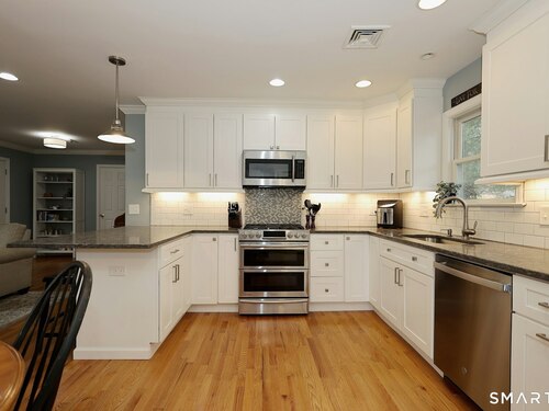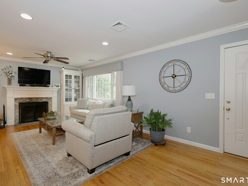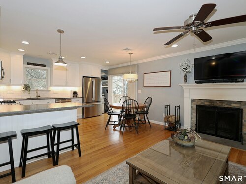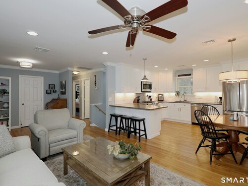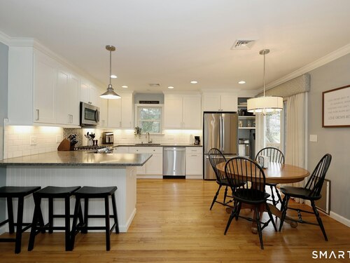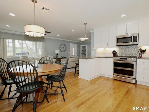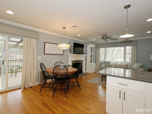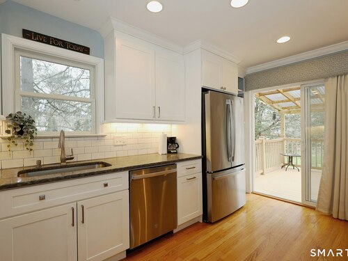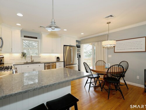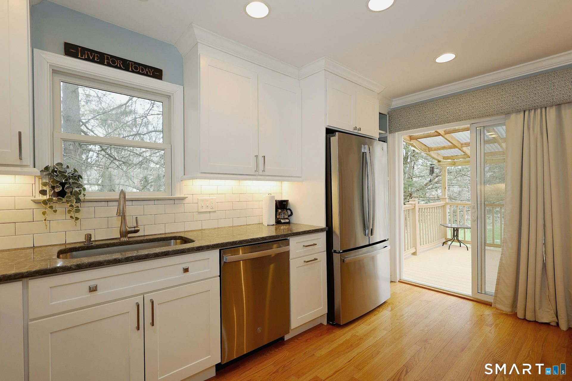 Pride of ownership abounds in this totally updated, sun-filled home, on a quiet cul de sac in the picturesque Rainbow Lake community. Optional membership (apprx. $200/year) to the Rainbow Lake Assoc. includes use of the beach, kayaks, canoes, fishing, and a multitude of social events. This charming ranch offers crown moldings, gleaming hardwood floors, and a modern open floor plan. The spacious living room with inviting fireplace is wide open to the sparkling updated kitchen featuring stainless steel appliances, white recessed panel cabinetry, subway tile backsplash, quartz counters, bright dining area, & sliders to the adj. covered deck for outdoor enjoyment. The main floor also features 2 bedrooms with hardwood floors and updated hall bath with decorative tile floor, granite topped vanity, and walk-in shower. This expansive home offers plenty of room to spread out. A 23'x23', 2 car garage was added in 2009 with storage loft above. This room also makes an ideal studio or bonus space. The partially finished lower level offers a large family room, third bedroom option, second full bath, separate laundry room, and direct access to the 2 car attached garage. So many updates (see full list in additional public remarks) including central air, conversion to propane heat, on demand hot water, additional insulation, new roof and septic (2009), plus more. Idyllic location, walk to Rainbow Lake, quick drive to downtown Ridgefield for shopping/restaurants, and just 62 miles to Midtown.