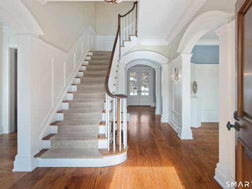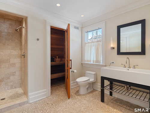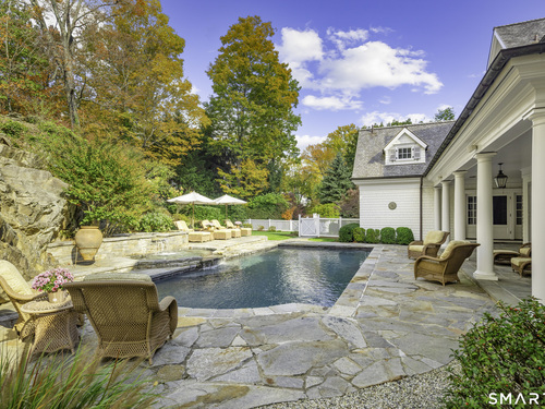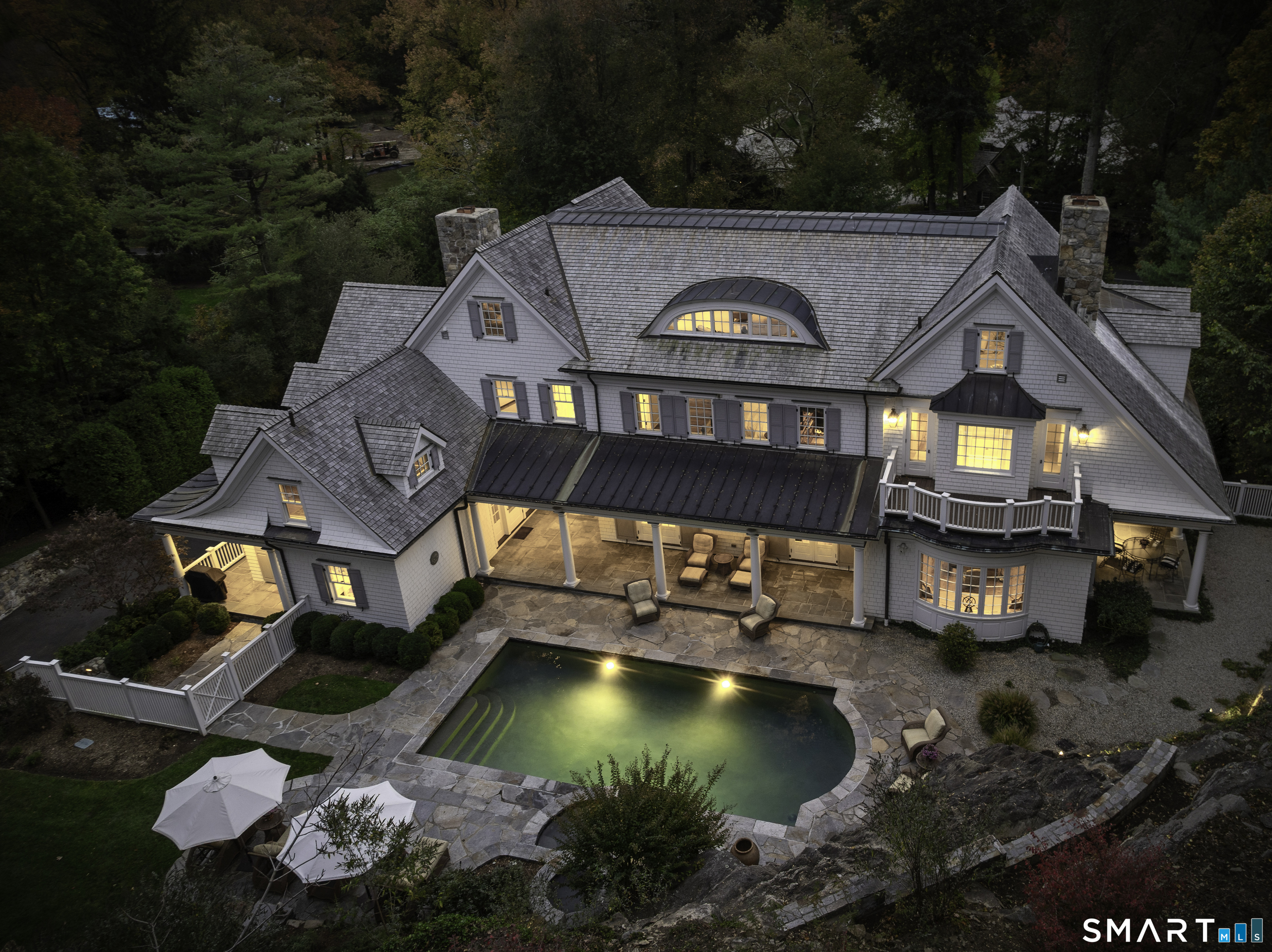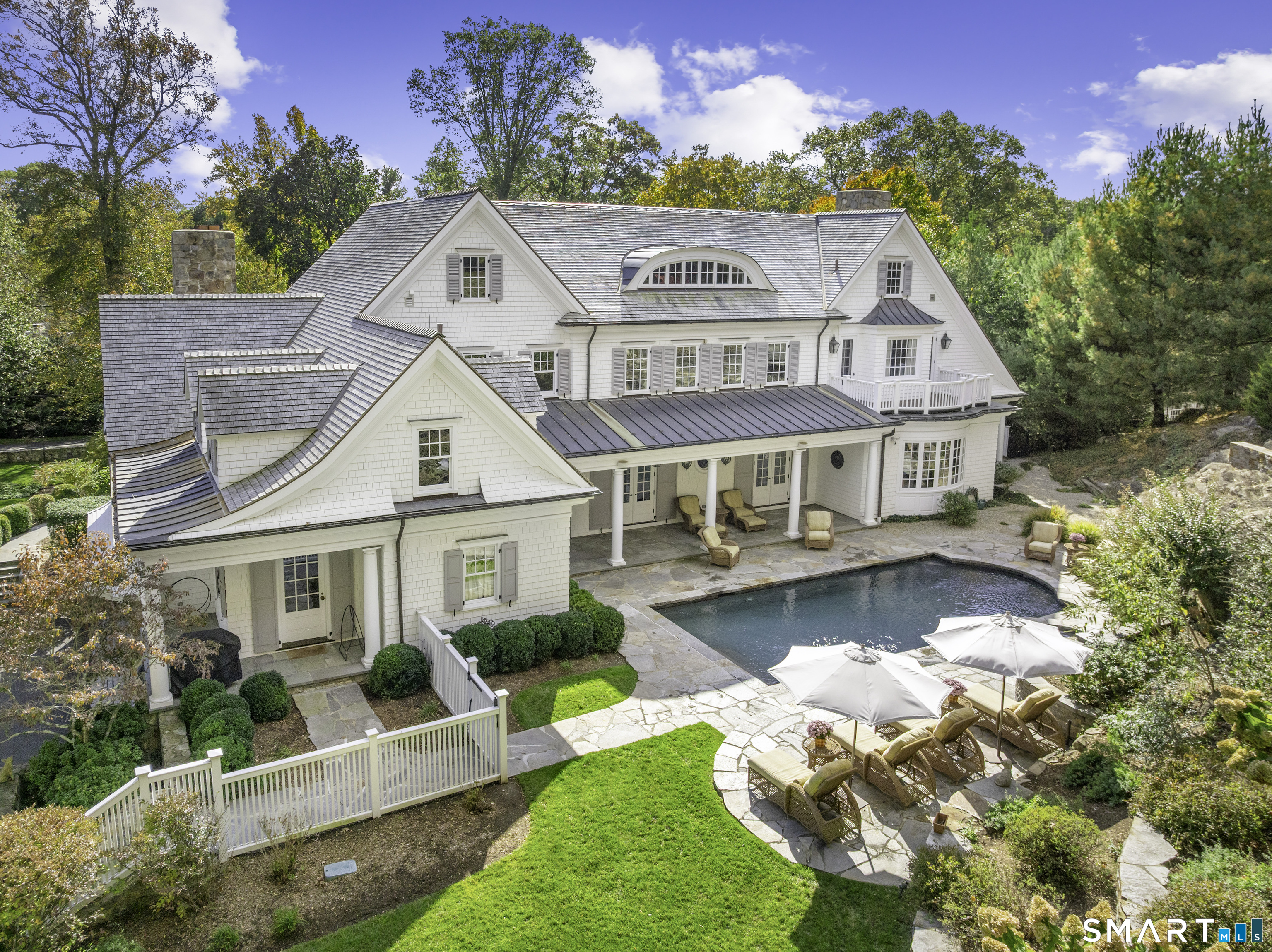 10 Cross Road is custom built and thoughtfully designed by Louise Brooks & Artisan Builders. No expense has been spared...extensive millwork and moldings, soaring 10-foot and cathedral ceilings! In the heart of the private Tokeneke Assoc. on a hilltop with southern exposure, multiple French doors create a seamless indoor-outdoor lifestyle. Enjoy a custom pool, spa, & waterfall beautifully integrated into lush gardens and refined hardscaping. Meticulously maintained, this private backyard offers a true oasis - you won't want to leave! A chef's kitchen appointed with Wolf and Sub-Zero appliances, a dble. island and a cozy dining area with expansive windows and fireplace is open to a grand family room. Formal living and dining room with entertaining butlers parlor and mature office complete the main floor. Upstairs, the spacious primary suite offers a sitting area, walk-in closets and serene bathroom. 3 ensuite bedrooms provide luxurious accommodations. The 3rd floor offers a large playroom space with 2 adjacent bedrooms sharing a jack-and-jill bathroom. Additional amenities include a 3-car heated garage, theater, gym, sauna and partial heated driveway. Many recent improvements - including a new cedar roof, newly paved driveway, full exterior painting, new front stone wall, and pool enhancements - further elevate the home's turnkey appeal. Come experience the beauty, history, and prestige of Tokeneke at its finest, a private coastal community just a short distance from town.