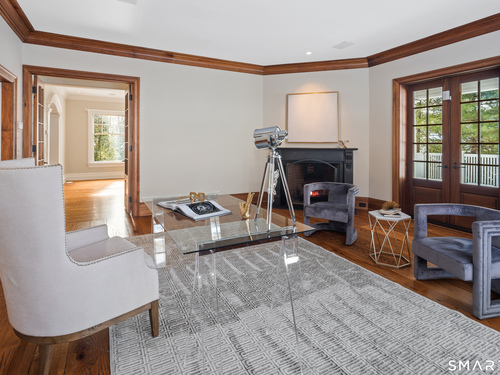 Study (Main Level)Built-Ins, Fireplace, French Doors, Patio/Terrace, Hardwood Floor