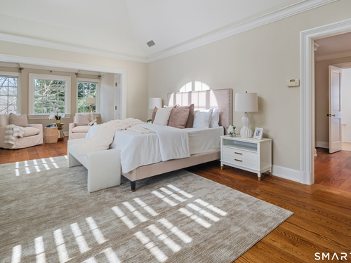 Primary Br Suite (Upper Level)Cathedral Ceiling, Balcony/Deck, Full Bath, Steam/Sauna, Walk-In Closet, Hardwood Floor
