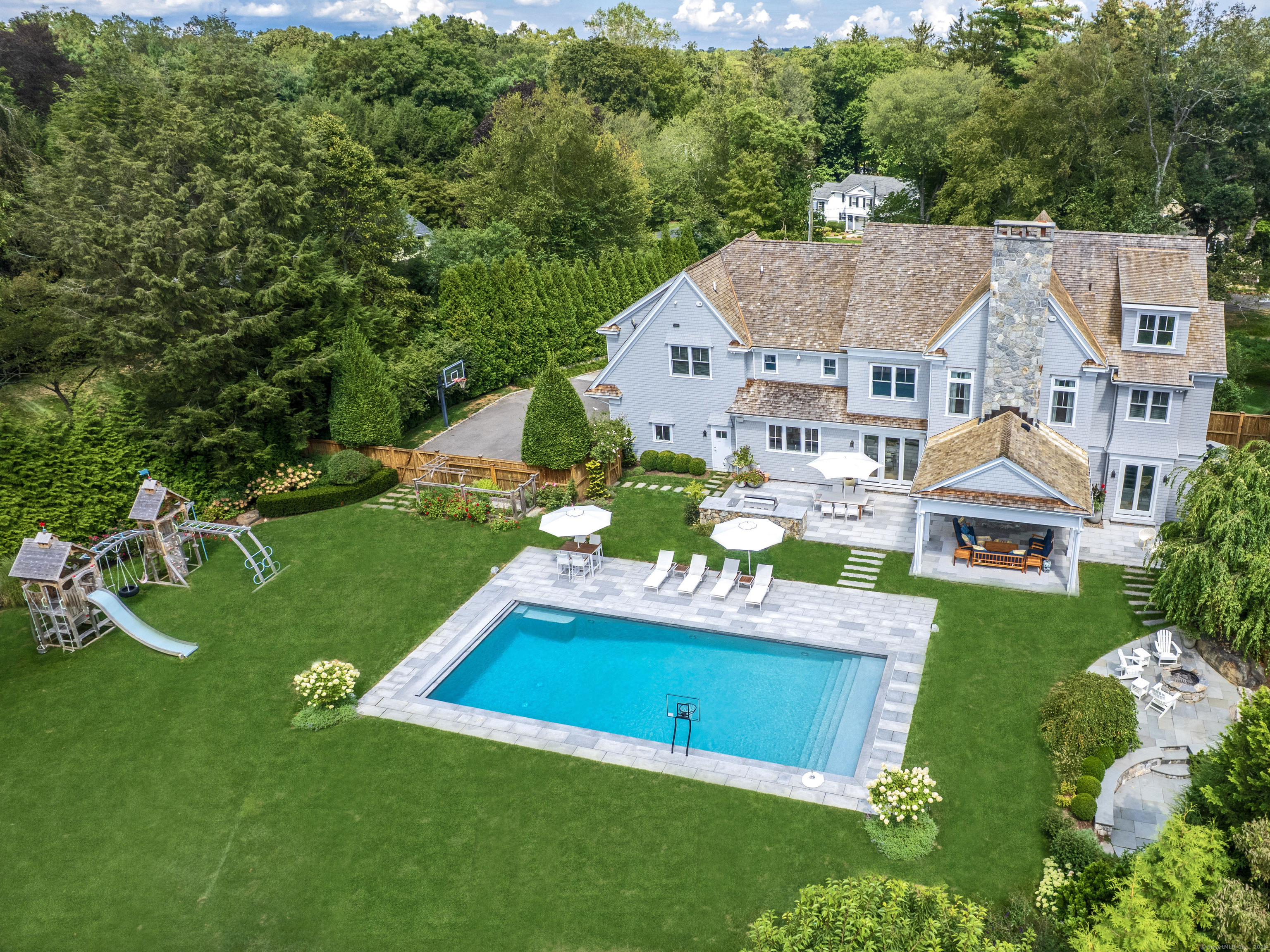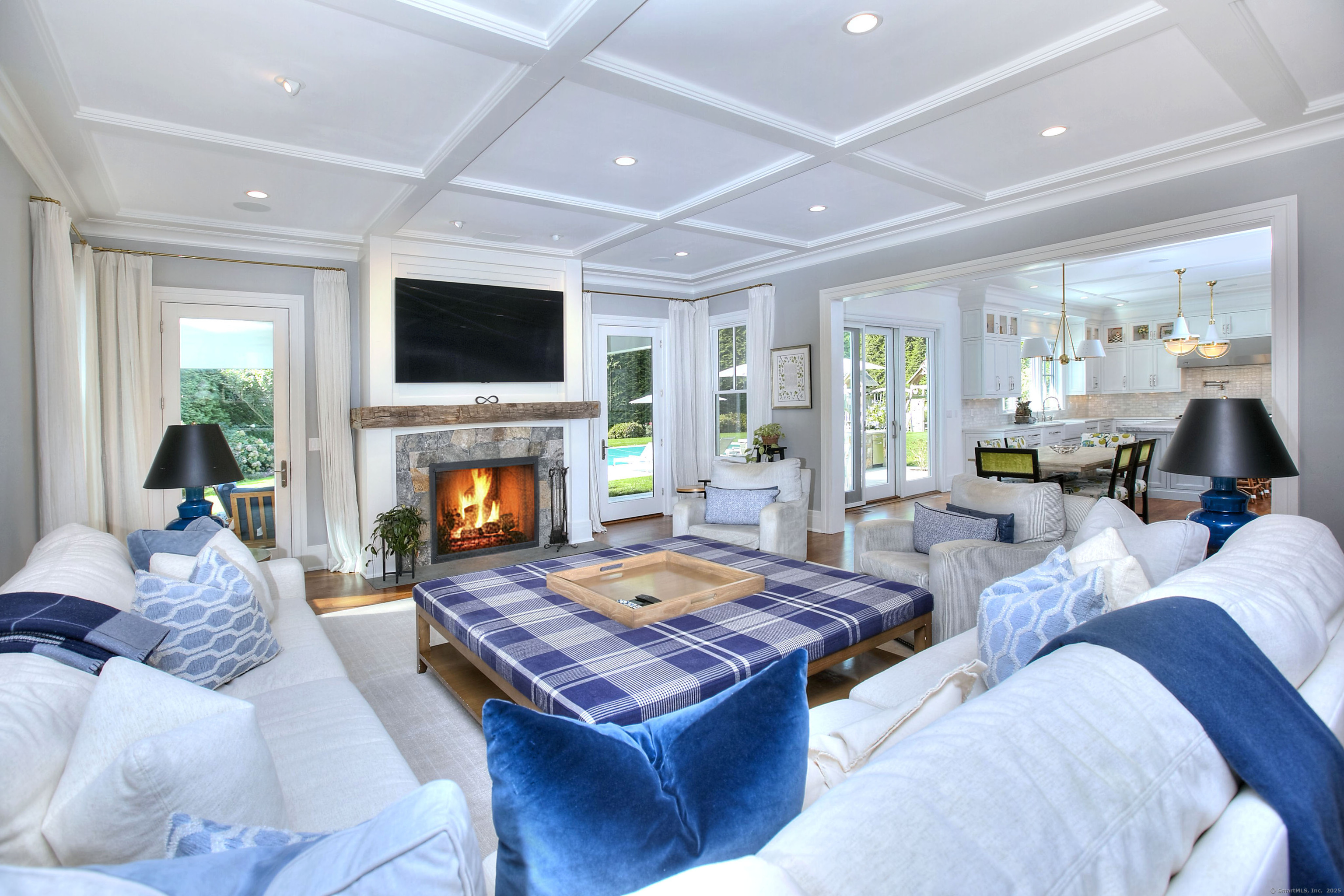 Stunning 6 Bedroom 9600SF (including all 4 levels) Colonial in the heart of Westport. Built by Bluewater Home Builders, this stunning custom residence is situated on a private cul-de-sac in the central Hunt Club area. The traditional design boasts exceptional interior details, including soaring ceilings, beamed and coffered accents, shiplap paneling, and sleek millwork throughout all finished levels. The state-of-the-art gourmet Kitchen flows seamlessly into the grand Family Room, both opening to a covered bluestone patio featuring a fireplace, remote-controlled phantom screens, and a built-in outdoor kitchen-perfect for entertaining.The 1st floor office also opens to the peaceful yard and Patio. A 20'x45' saltwater Pool with automatic cover and sun ledge add a resort-like touch, complemented by mature landscaping, a koi pond, multiple gathering areas and a fire pit. Luxurious Primary Suite offers a soaring 11' ceilings, a fireplace, dressing/sitting room, and a marble spa bath. Five additional en-suite Bedrooms provide ample space for family and guests. The finished Lower Level includes a Game Room, Media Room with stadium seating, Gym, Wine Center and an 6th Bedroom. Finished 3rd floor offers bunk beds for sleep overs, a stage, an art area, lounge,cedar closet & abundant storage. Modern amenities include a generator and Lutron lighting system throughout. Located on a perfect acre, this home combines elegance, comfort, and convenience-just moments from all Westport amenity.