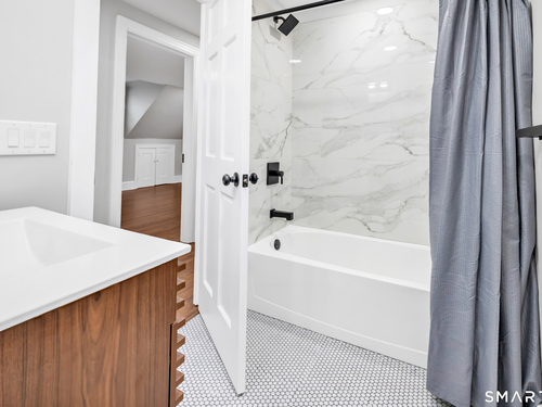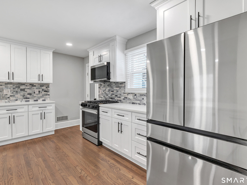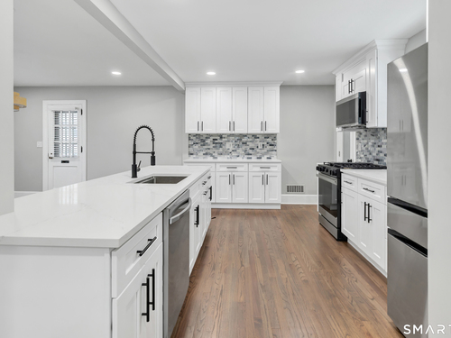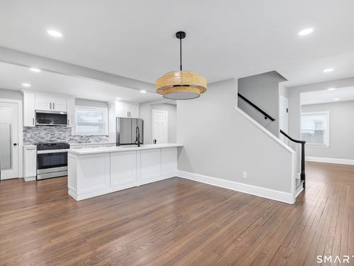 Welcome to this completely renovated three-bedroom, two-and-a-half-bathroom home in Norwalk, CT. This residence offers modern living in a move-in-ready condition from top to bottom. The main level features an open-concept layout connecting the living, dining, and kitchen areas. The kitchen is equipped with new stainless steel appliances, quartz countertops, and contemporary cabinetry. A convenient half-bathroom is also located on this floor. Upstairs, you will find three bedrooms, including a primary suite with a private, fully renovated bathroom. A second renovated full bathroom serves the additional bedrooms. The home includes newer systems, such as HVAC, plumbing, and electrical, for contemporary efficiency. Provides access to local parks, schools, shopping, and commuter routes, including Metro-North train stations for service to New York City.This is a turnkey property designed for comfortable, low-maintenance living.