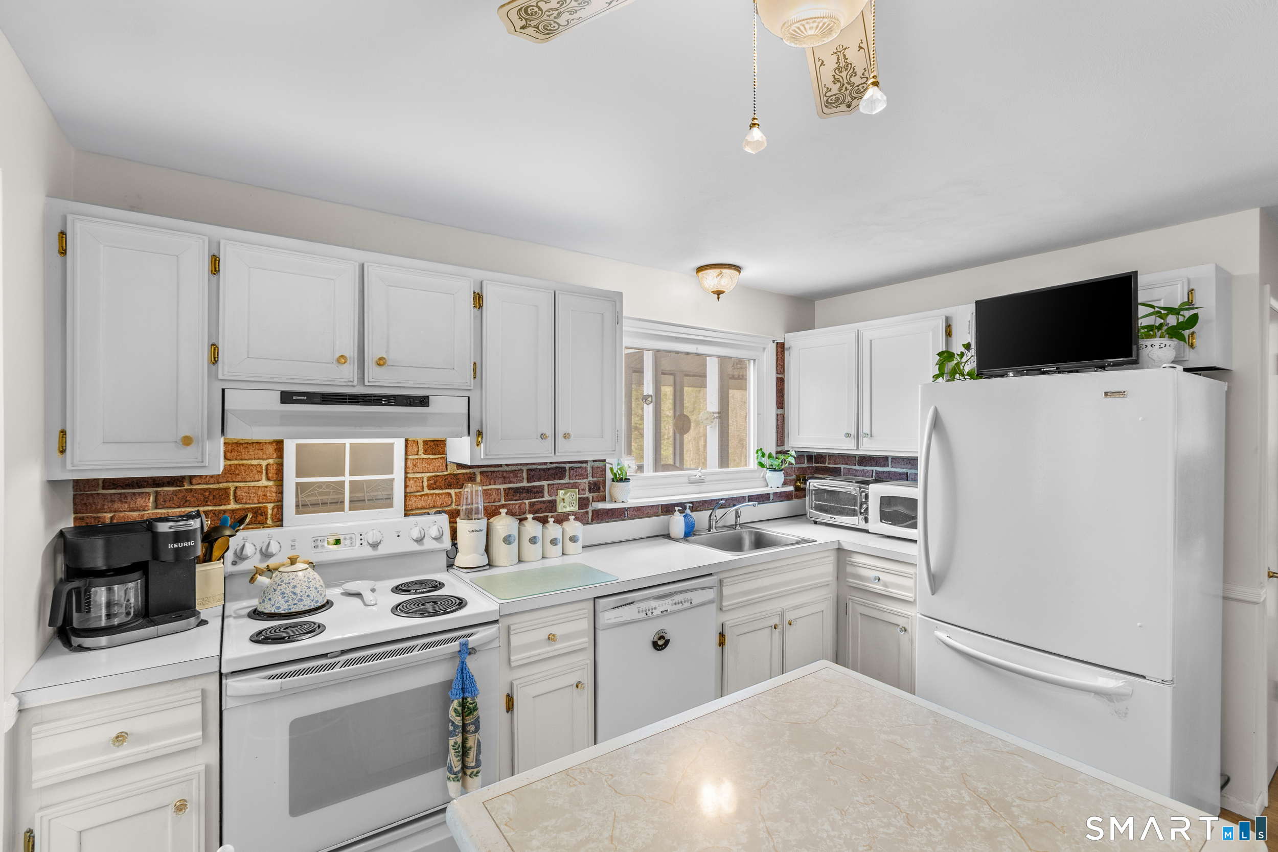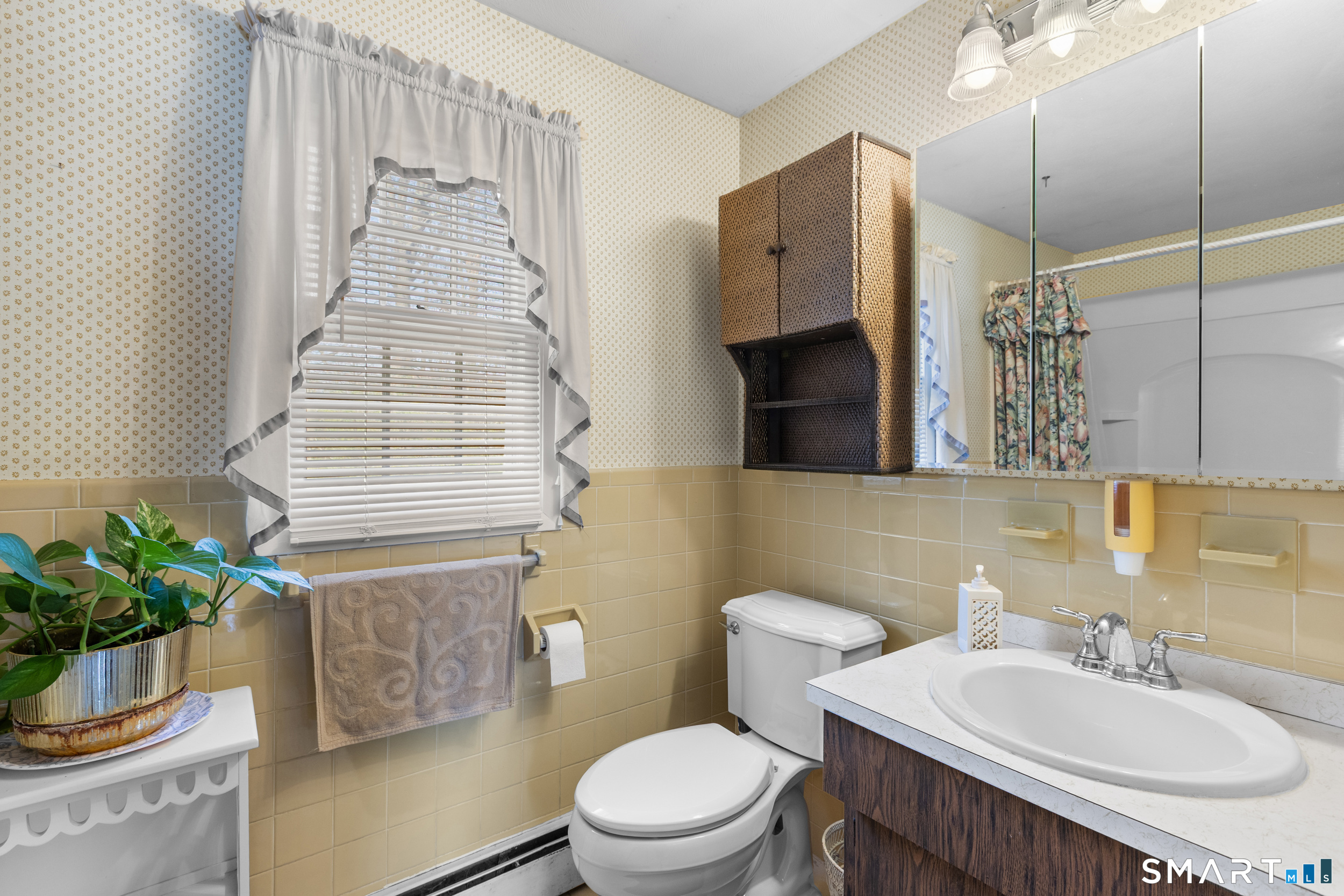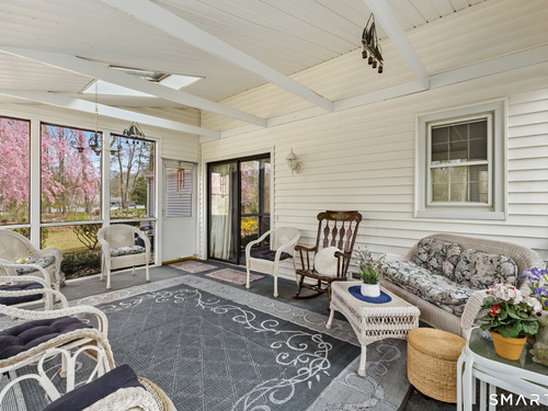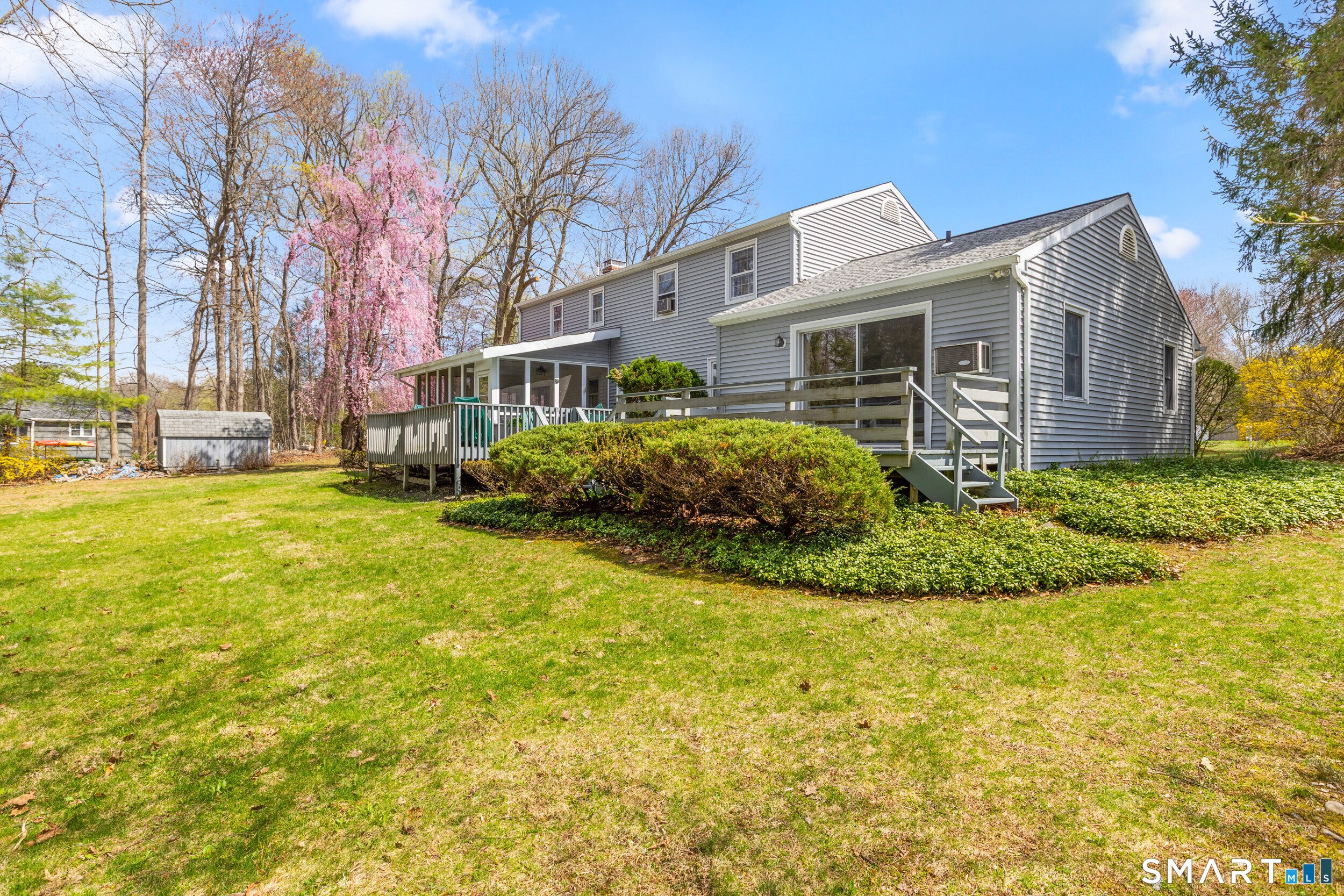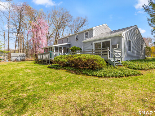 LEGAL IN-LAW! This charming Farmhouse Colonial, situated on a desirable Chimney Heights cul-de-sac, offers a perfect blend of space, versatility, and potential. Featuring 4 bedrooms, 3.5 bathrooms, 2,400 square feet. This home is designed for both comfort and functionality. The main level floor plan includes a spacious living room (with access to the in-law suite-also has its own private front door entrance), formal dining room, a bright eat-in kitchen with island, powder room with laundry, family room with wood-burning stove, access to garage with only 2 steps, sliders to oversized screened porch with vaulted ceiling & sky light - perfect for indoor-outdoor living. Upstairs you'll find the primary bedroom with full bath, plus three additional bedrooms and a hallway walk-in closet and full bath. Enjoy beautiful hardwood flooring throughout. A Brand New Roof currently being installed for peace of mind. Two decks overlook a private, level backyard with room for a future pool. A full unfinished basement offers a blank canvas for a home gym, media room, or extra storage. City water and septic, with ability to connect to sewer in street. Sewer assessment balance to convey to buyers at closing. Great neighborhood for walking or biking, this home provides an easy commute with quick access to Route 6 and I-84. Conveniently positioned just 12 minutes from the New York border