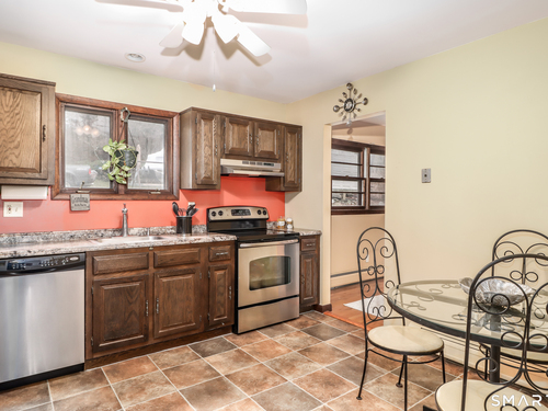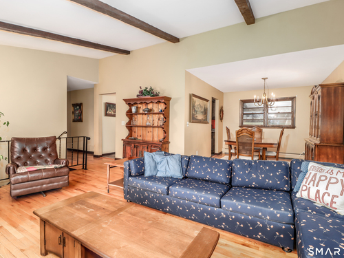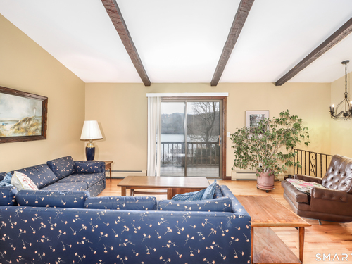 Tucked into one of Candlewood Lakes most desirable communities, "Snug Harbor" is a neighborhood that quietly delivers on exactly what you hope lake living will feel like. Surrounded by mature trees, views of the water, and a private beach that becomes an extension of your everyday life. Sunlight fills the main level, where hardwood floors flow throughout. The living room's vaulted ceiling and exposed beams echo the home's natural surroundings, while sliders open to a deck overlooking peaceful vistas. The dining room and well-appointed kitchen provide comfortable options for everyday meals or larger gatherings. A private hallway leads to the bedroom wing. The primary suite includes an updated full bath, while two additional bedrooms and a hall bath complete this level. The lower level adds flexible living space, centered around a large family room with a brick fireplace and sliders to a covered patio. A powder room, laundry room, and 2 car garage add convenience on this level. Set in northern Fairfield County at the base of the Berkshire Mountains, Danbury offers the balance of scenic surroundings and everyday convenience, with access to major highways and an easy commute to NYC by train or car. And fittingly, on Sunset Drive, the best part of living here may be exactly what the address suggests; ending your days with breathtaking sunset views and a sense of calm that makes you glad you're home.