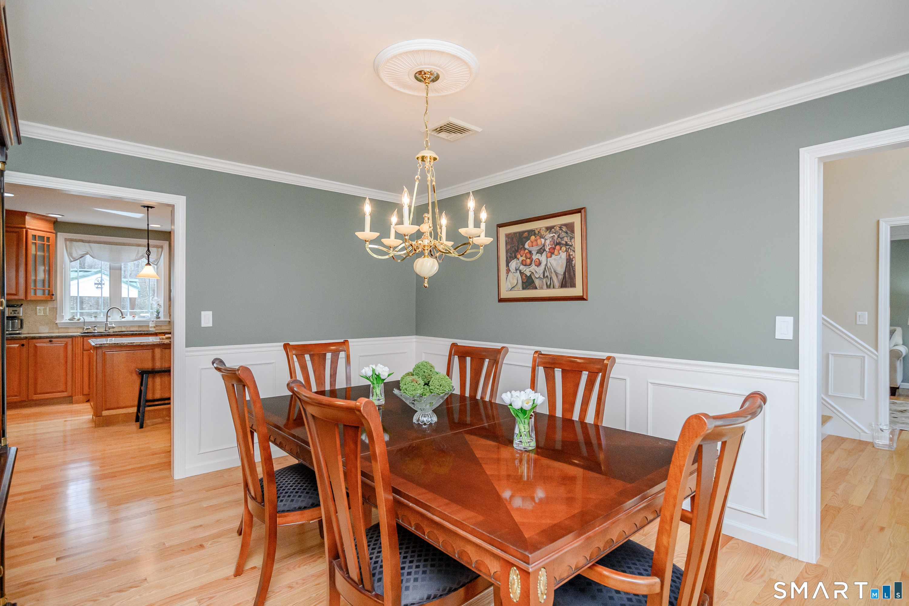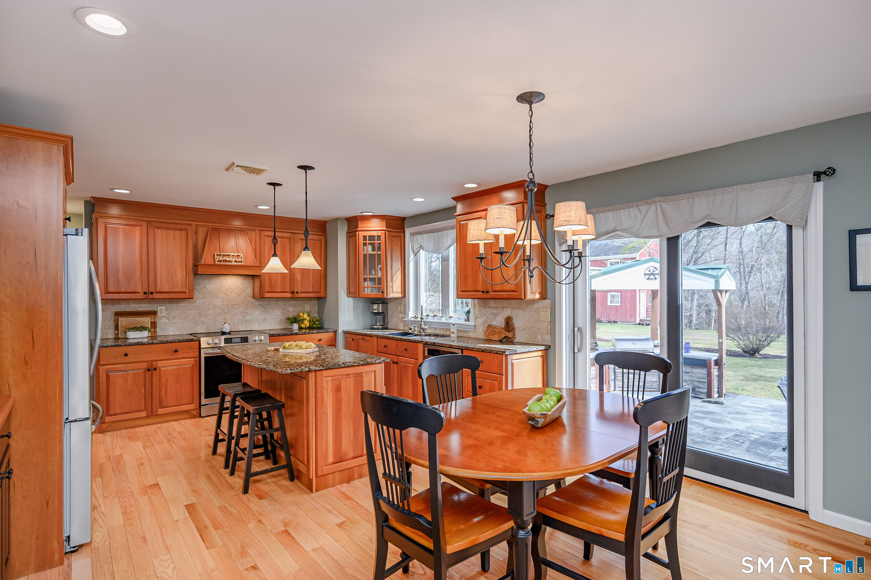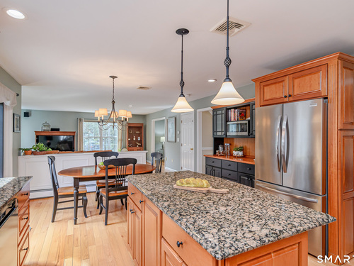 Breakfast Bar, Built-In Hutch, Granite Counters, Dining Area, Island, Hardwood Floor