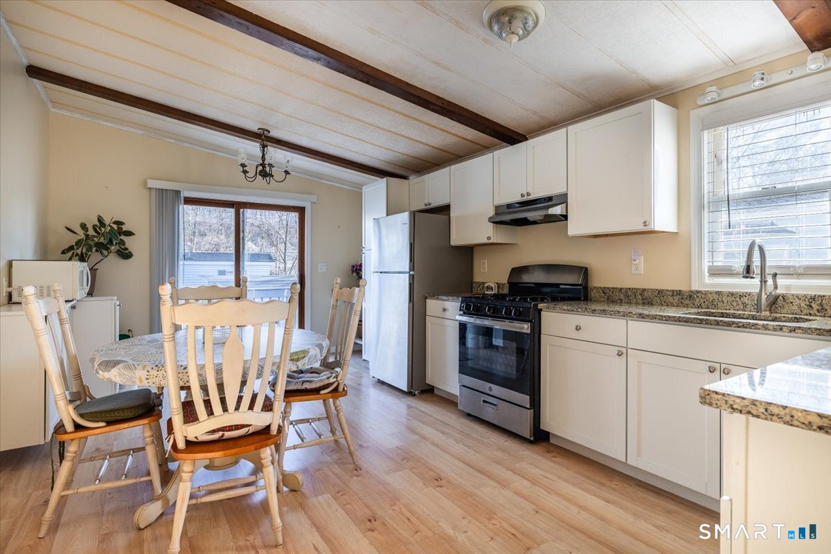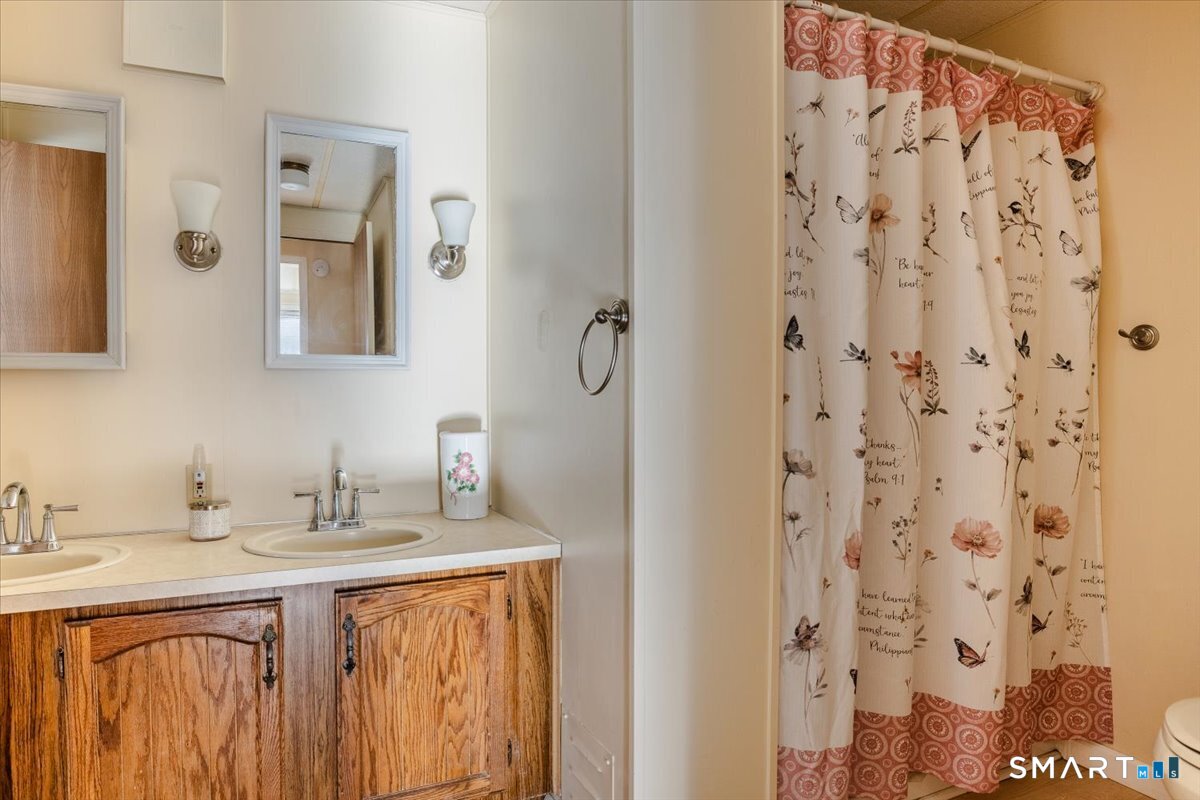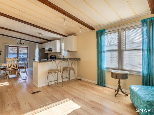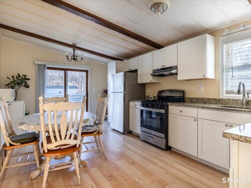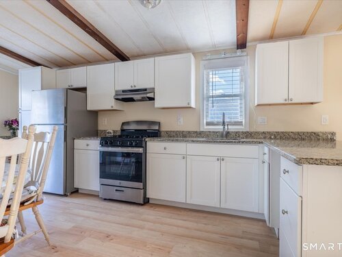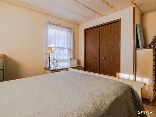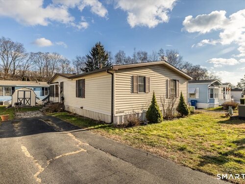 Well maintained 2 bedroom, 1.5 bath mobile home located in the desirable Woodland Park community in Shelton, CT. This home offers a functionality layout with generous living space, abundant natural light, and comfortable room sizes throughout. The main living area flows into the dining space and kitchen, providing an easy everyday living experience. The primary bedroom includes a full bath, while the second bedroom has a 1/2 bath and offers fexibility for guests, home office space, or additional living needs. The home provides storage, laundry area, and a practical floor plan ready for personal touches. Woodland Park offers a small dog park for residents. This is a land-lease community with park approval required for all adult occupants afer contract acceptance. Monthly lease apply and are set by park management. Must meet park requirements, including credit, income, and background review. Pets may be allowed with restrictions. Conveniently located close to shopping, dining, major routes, and all Shelton has to offer. A great opportunity for affordable homeownership in a well established community.