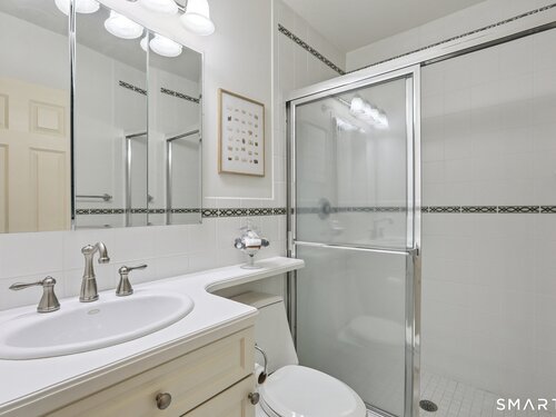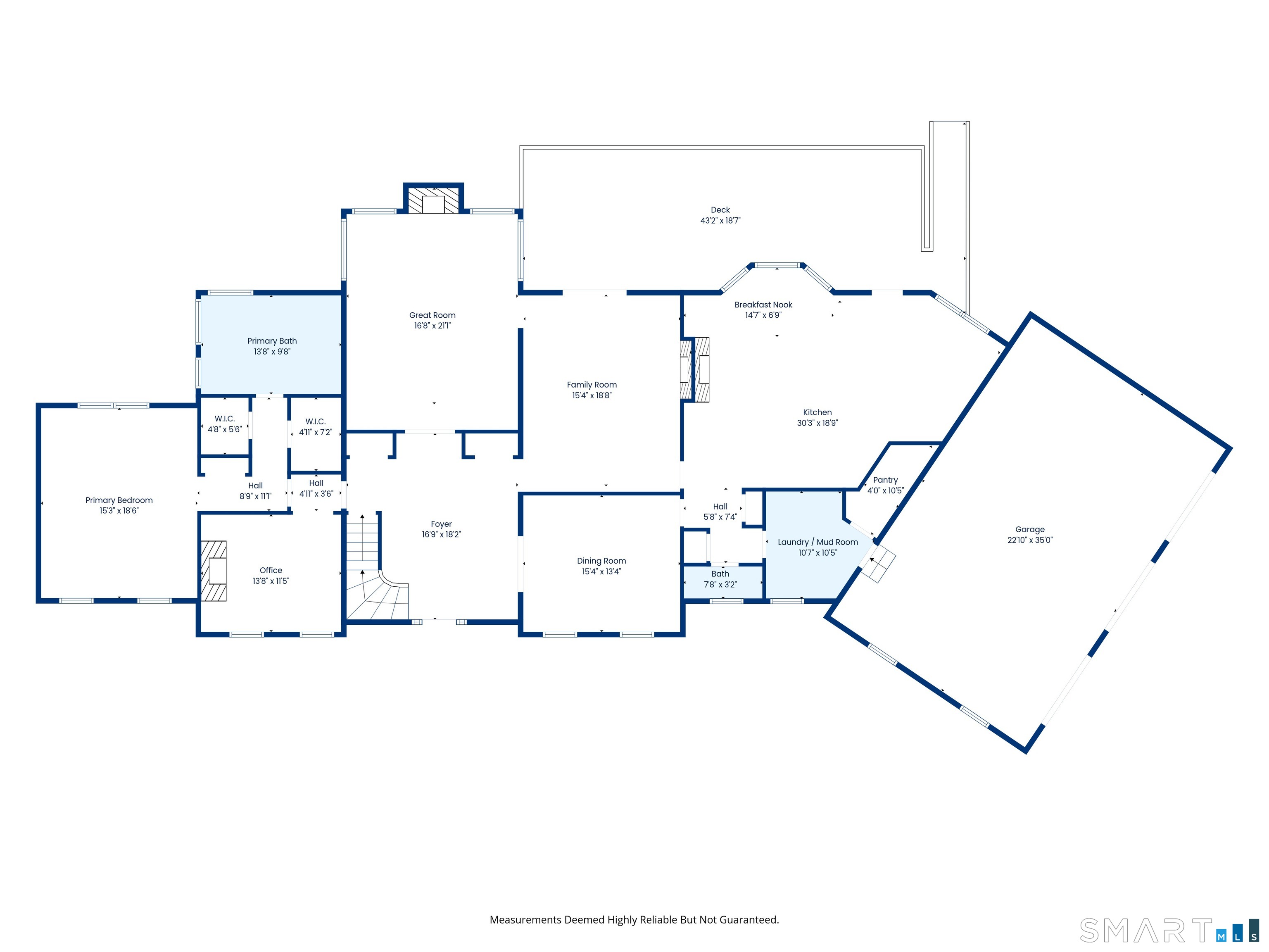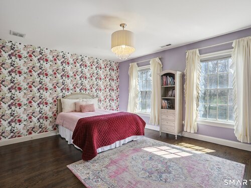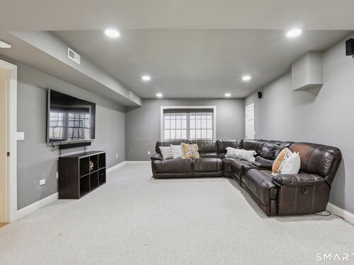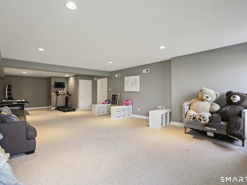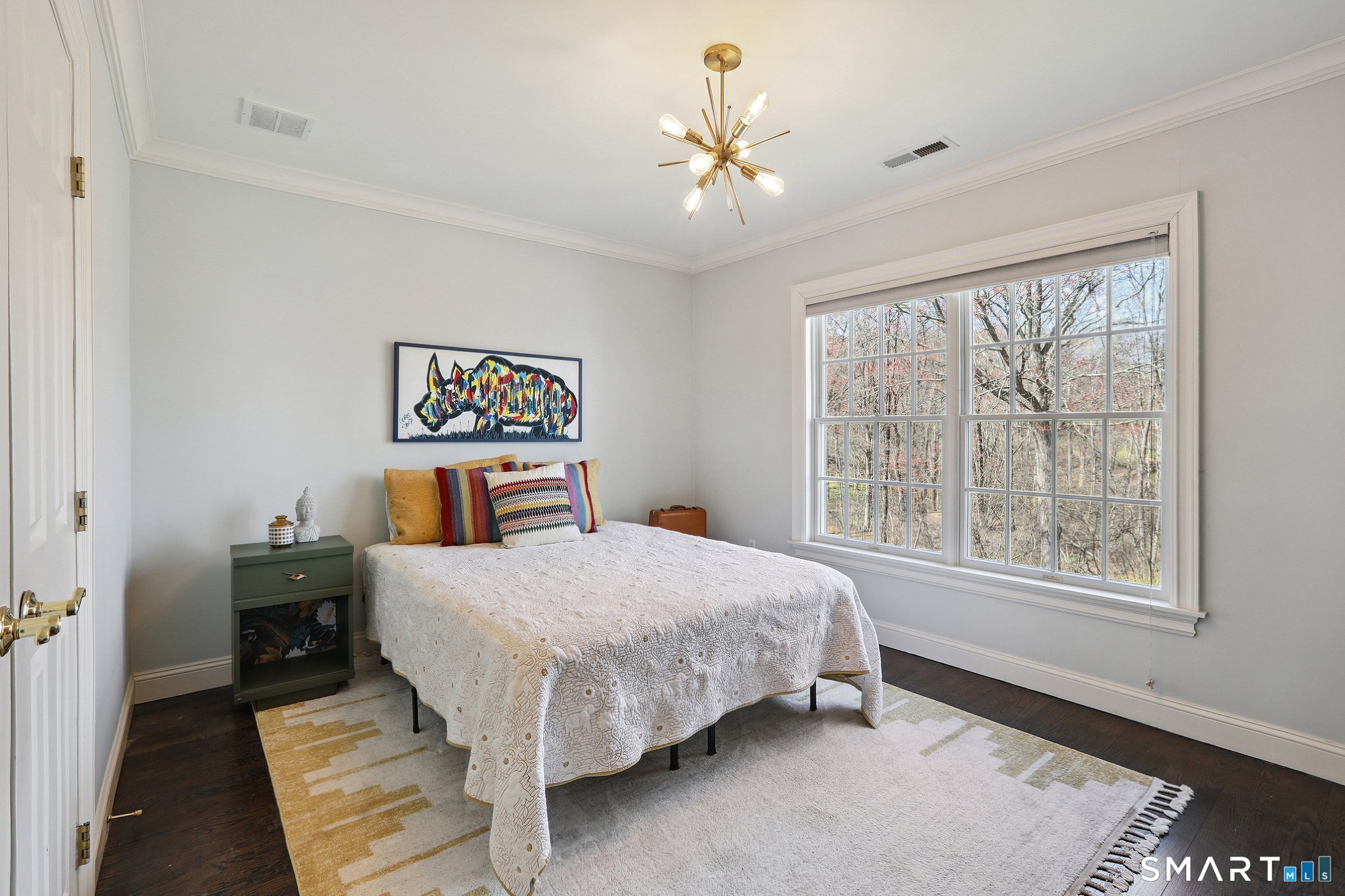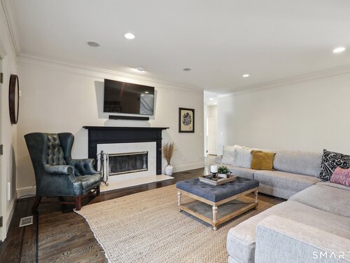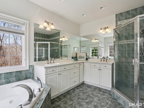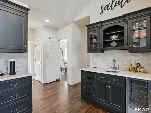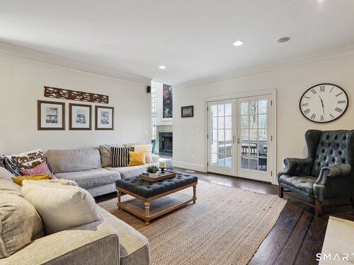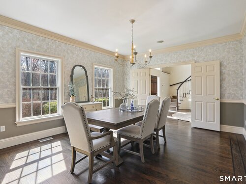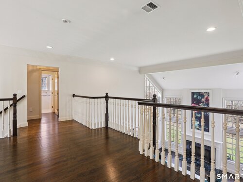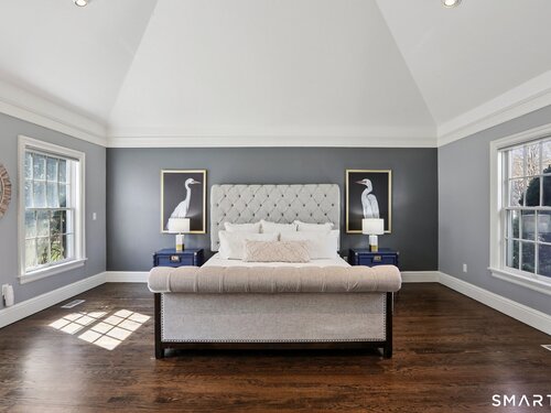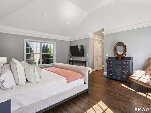 A dramatic two-story entry sets the tone, drawing your eye to the sun-drenched great room, where soaring ceilings and walls of glass frame ever-changing light. The eat-in kitchen with vaulted ceiling and skylights feels bright and inviting, complimented by premium appliances including a six-burner Viking cooktop, double ovens, Sub-Zero refrigerator, and Bosch dishwasher. A marble backsplash, expansive center island, and wet bar with beverage refrigerator complete the space. Designed for both everyday living and effortless entertaining, the kitchen flows into the family room with a striking double-sided fireplace, as well as the formal dining room. The main level primary features a vaulted ceiling, dual walk-in closets, and ensuite bath. The office offers a refined work-from-home setting, complete with custom built-ins and a marble fireplace. Upstairs, four bedrooms and two full baths are thoughtfully arranged into two suite-style layouts, offering flexibility for family, guests, or additional workspace. The finished walk-out lower level expands the home's versatility, featuring a large rec space and a separate area currently used as a media room, also ideal for an in-law or au pair suite with its own full bath. Outdoors, a full-length deck spans the rear of the home, accessible from both the kitchen and family room, creating seamless indoor-outdoor living. Located minutes from top-rated schools, golf, dining, shopping, and commuting routes.