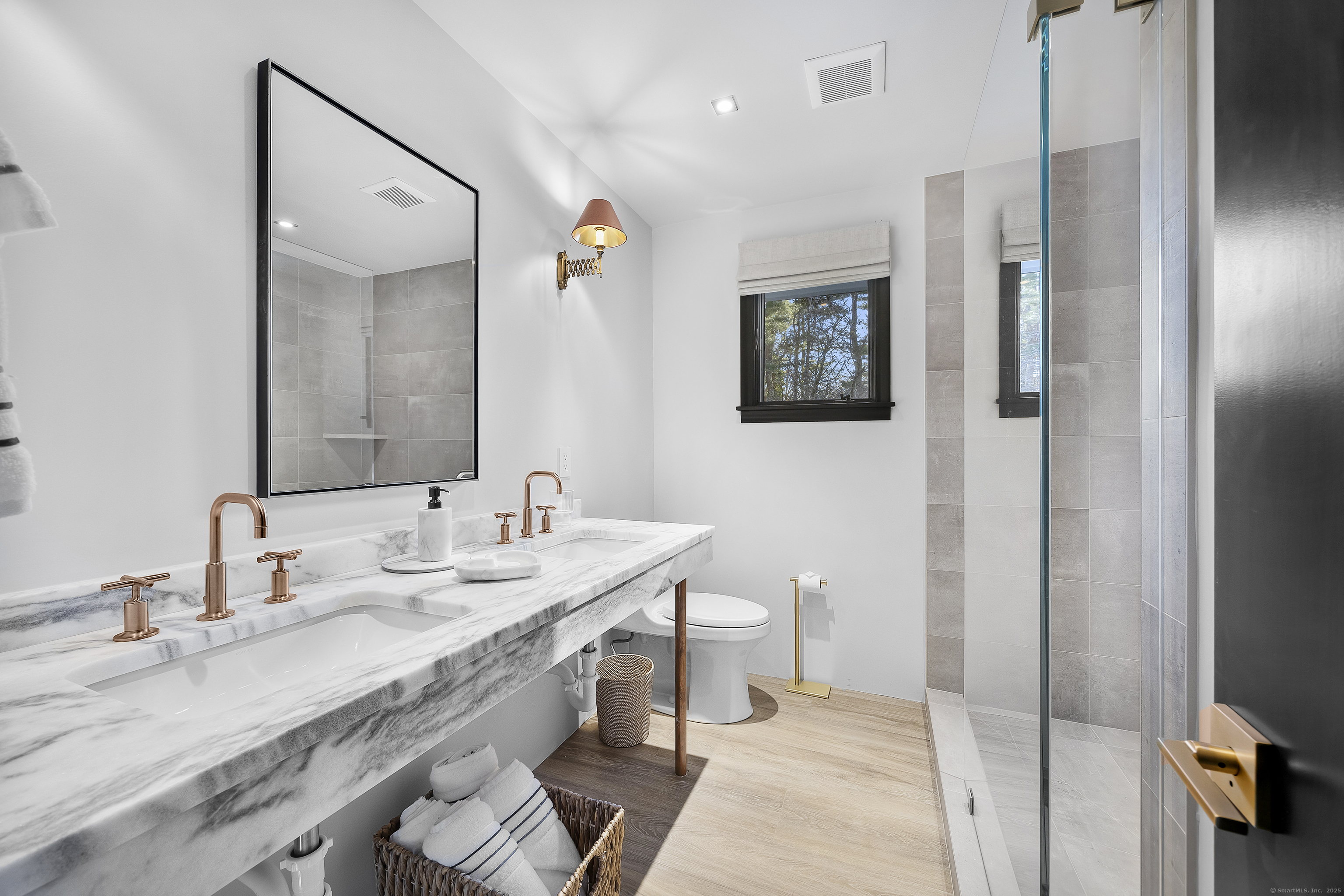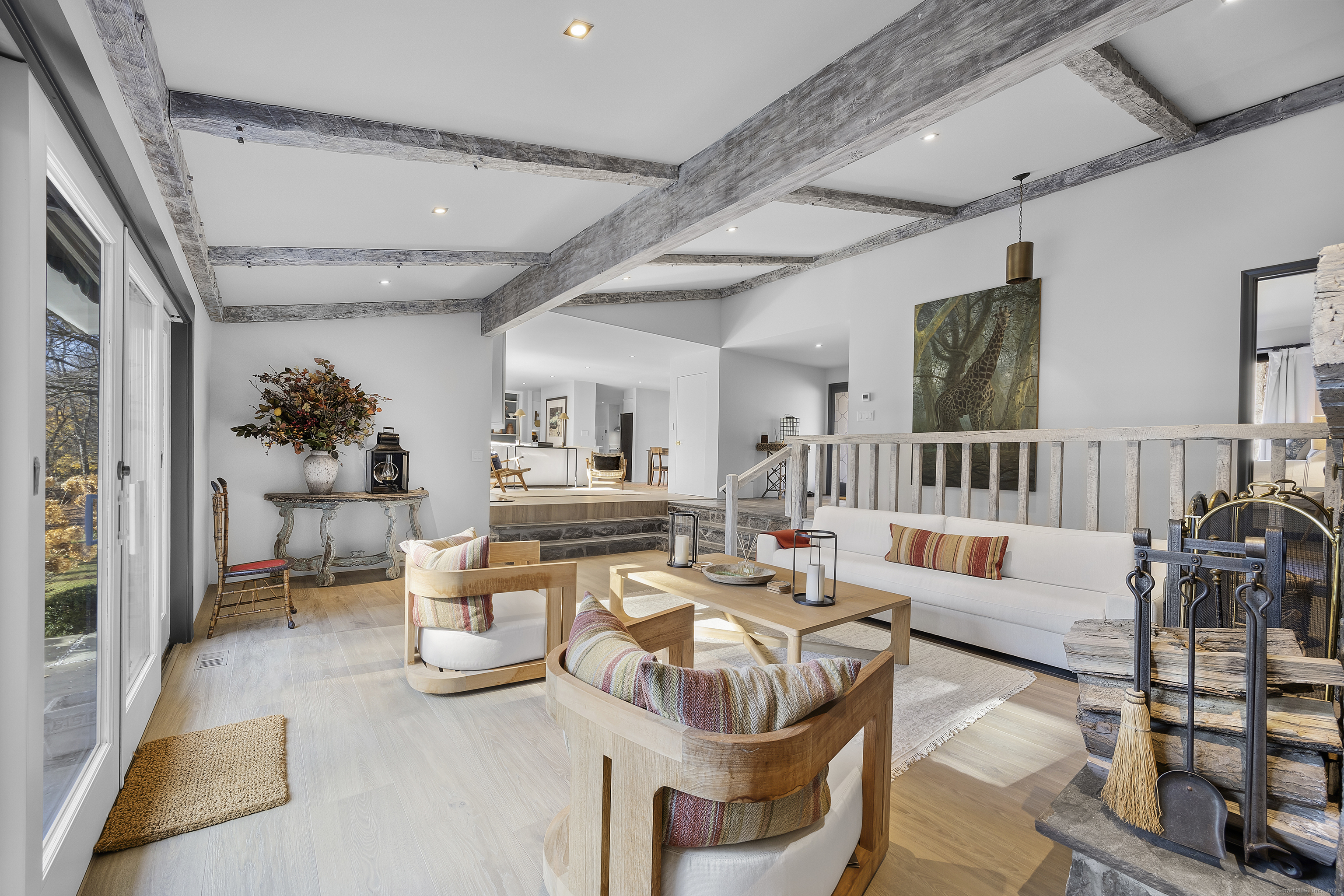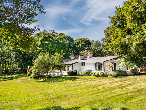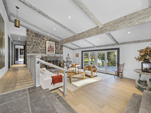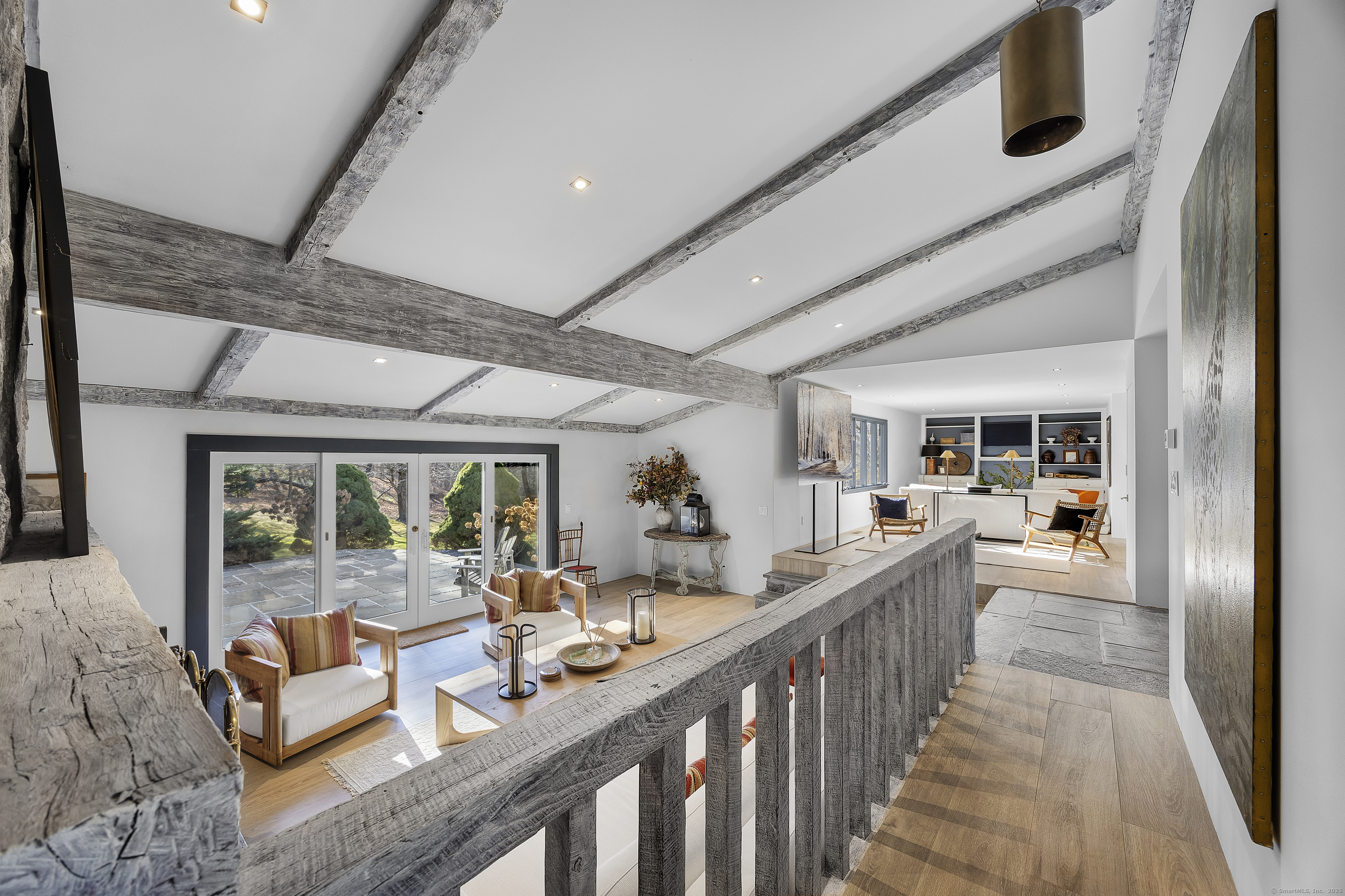 Situated on 2 manicured acres in Southport and surrounded by multi-million-dollar estates, this gated, European-inspired country home blends timeless charm with modern elegance. A white-pebble drive, stone walls, and sweeping lawns with mature trees create a private estate feel. Inside, the home balances warmth with sophistication. Offering 3 bedrooms on the main level and a 4th bedroom option in the lower level with full bath ensuite. Hand-hewn beams, slate entry, and a fieldstone fireplace pair seamlessly with crisp white walls, bold black accents, and striking designer lighting. The open yet defined layout features multiple entertaining areas, a sleek eat-in kitchen, and beautifully renovated baths. More than a home, this is an experience-an extraordinary Southport estate where modern luxury, historic charm, and a setting of rare beauty come together.
