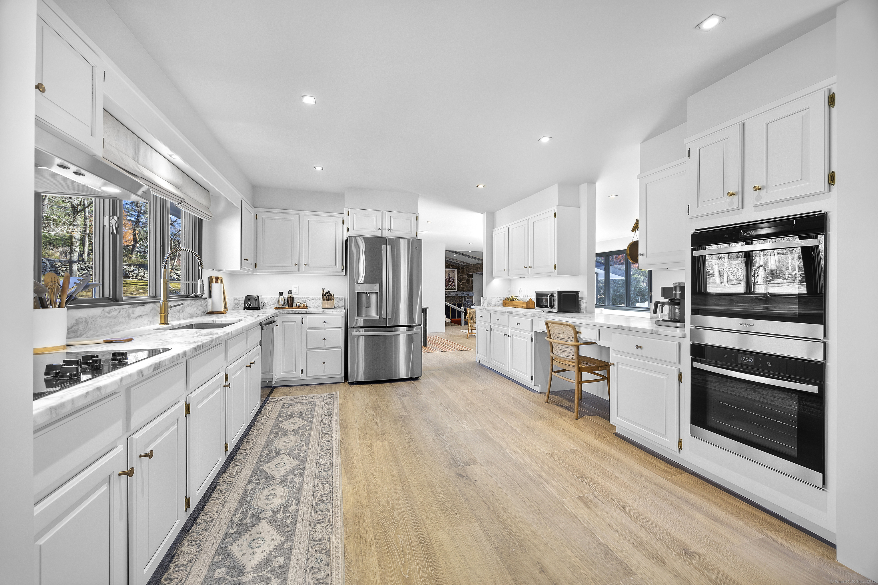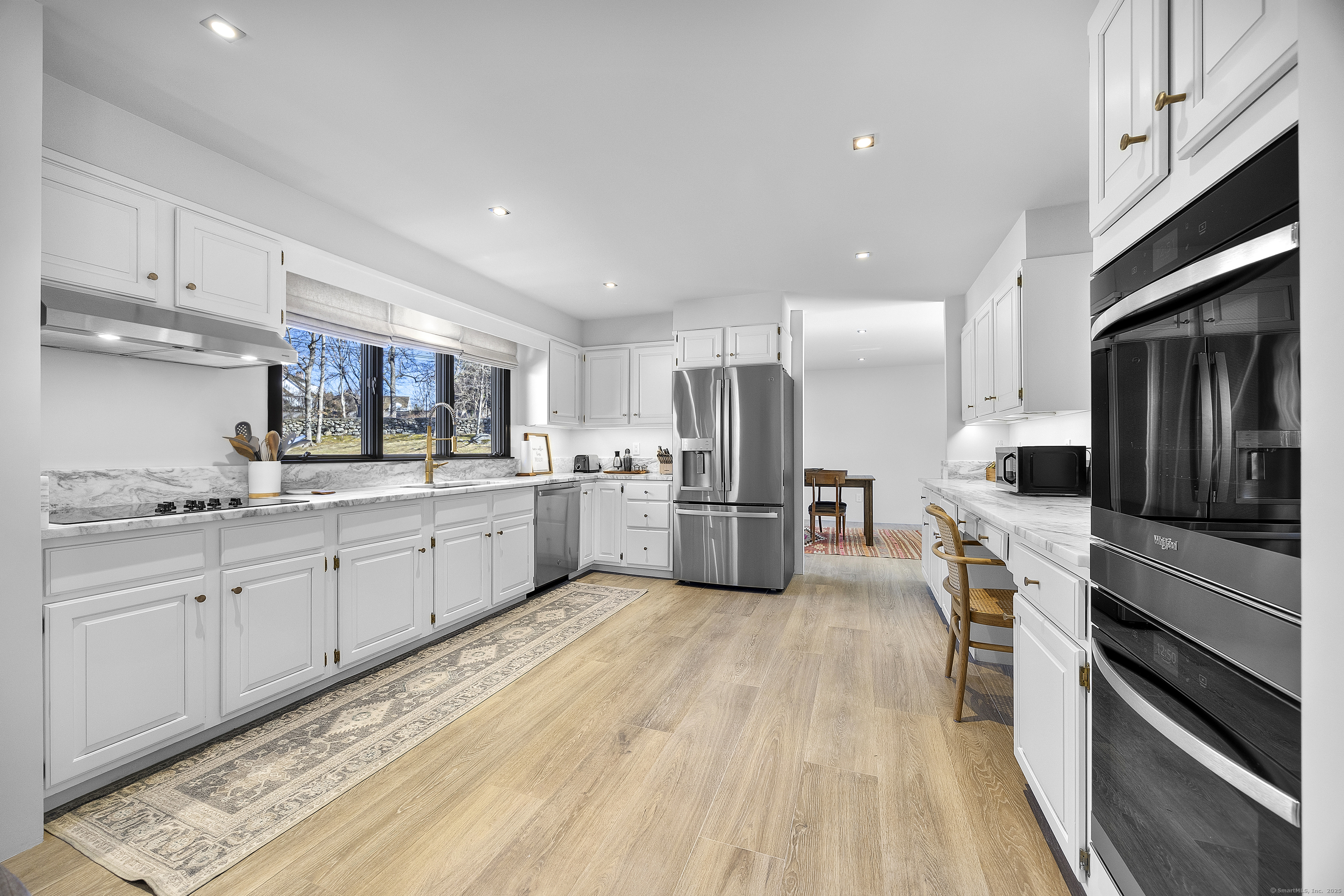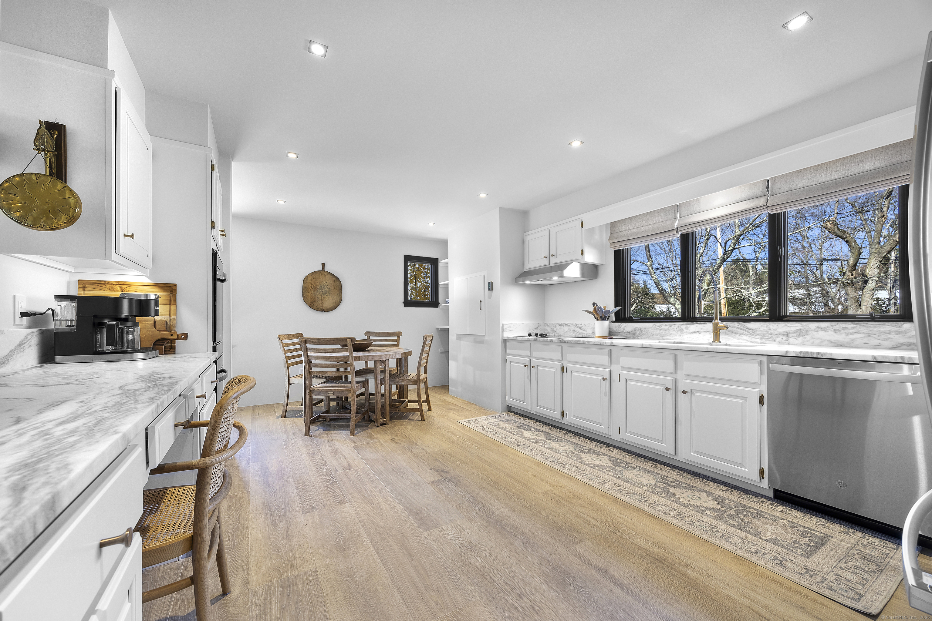 Situated on 2 manicured acres in Southport and surrounded by multi-million-dollar estates, this gated, European-inspired country home blends timeless charm with modern elegance. A white-pebble drive, stone walls, and sweeping lawns with mature trees create a private estate feel. Inside, the home balances warmth with sophistication. Offering 3 bedrooms on the main level and a 4th bedroom option in the lower level with full bath ensuite. Hand-hewn beams, slate entry, and a fieldstone fireplace pair seamlessly with crisp white walls, bold black accents, and striking designer lighting. The open yet defined layout features multiple entertaining areas, a sleek eat-in kitchen, and beautifully renovated baths. More than a home, this is an experience-an extraordinary Southport estate where modern luxury, historic charm, and a setting of rare beauty come together.