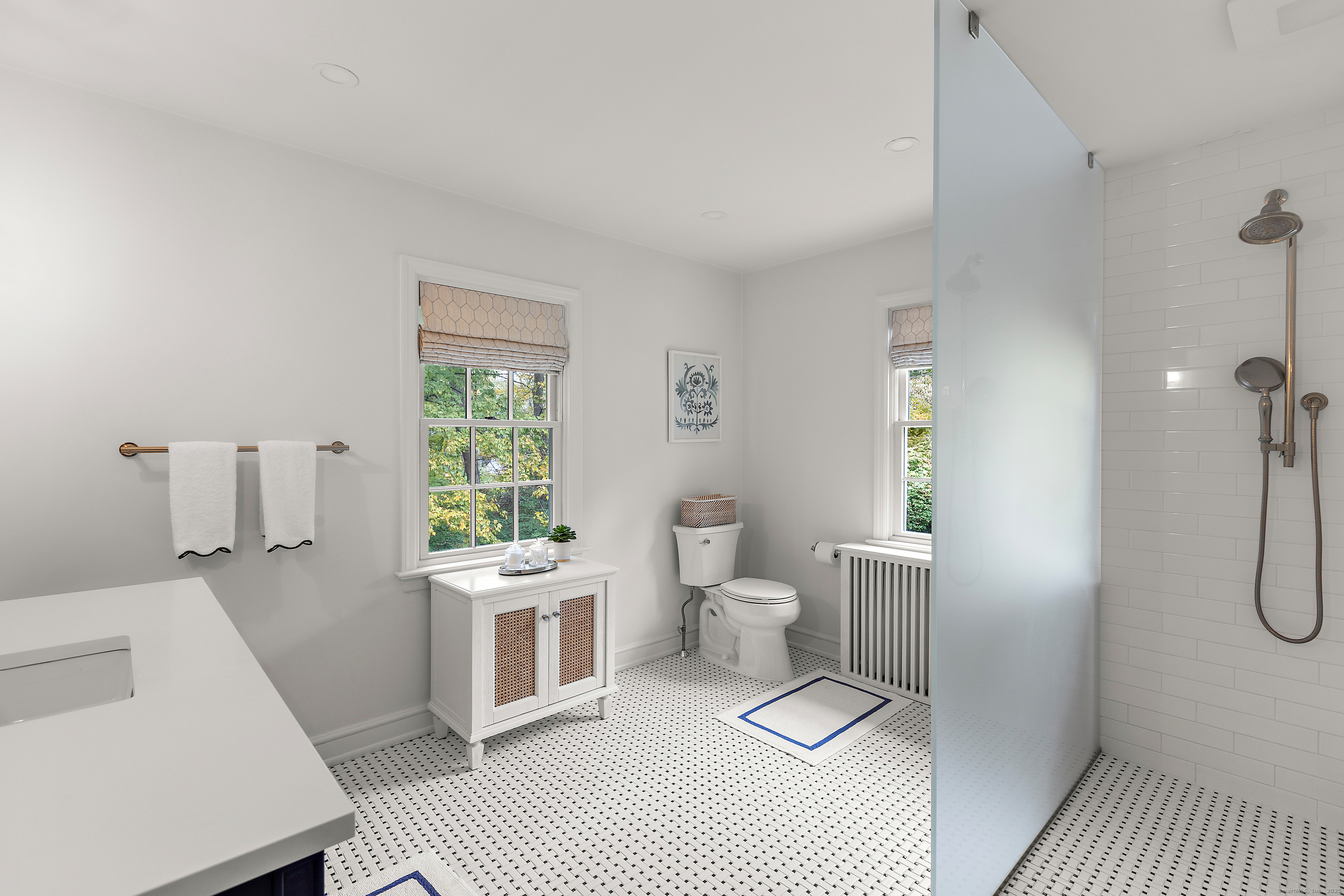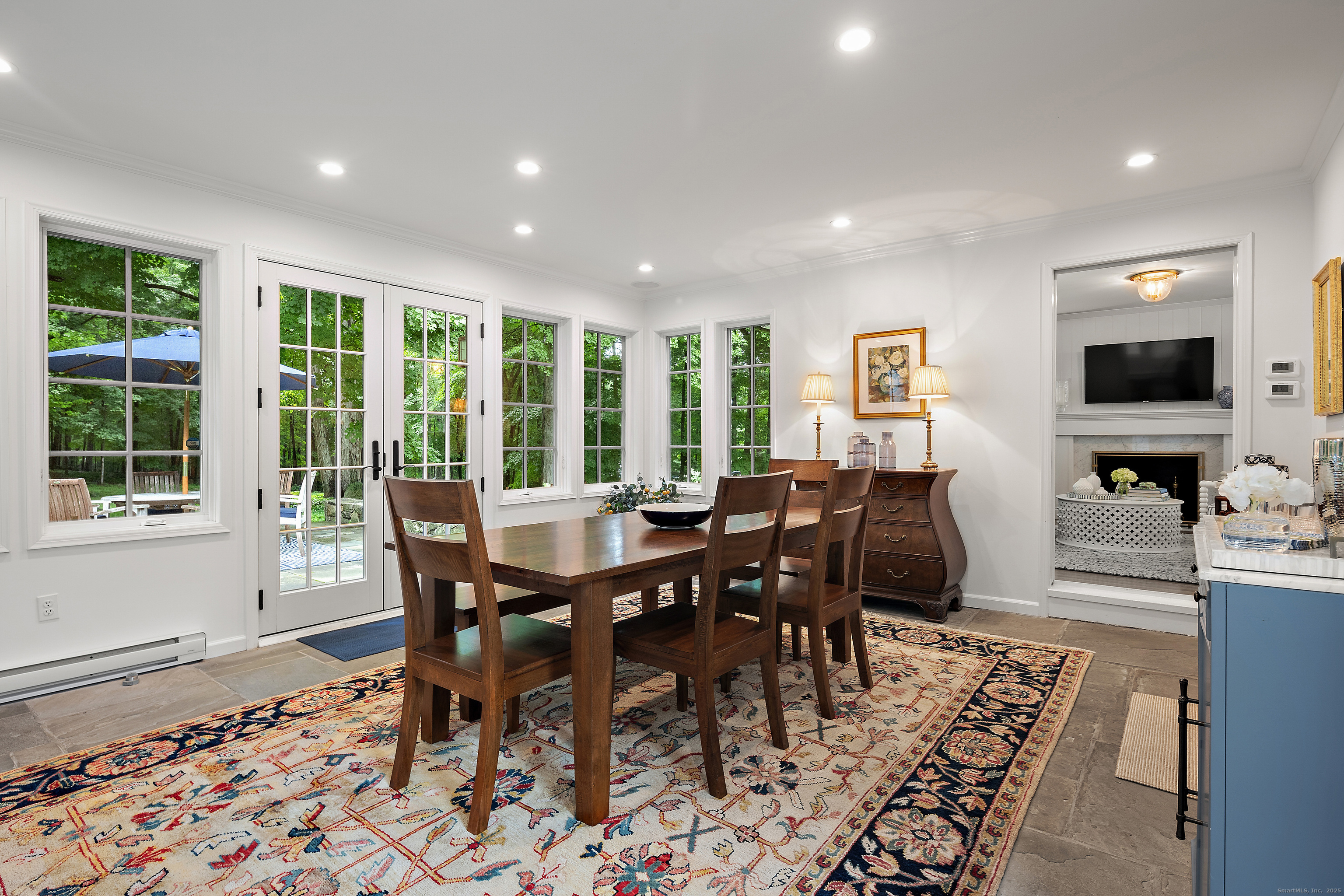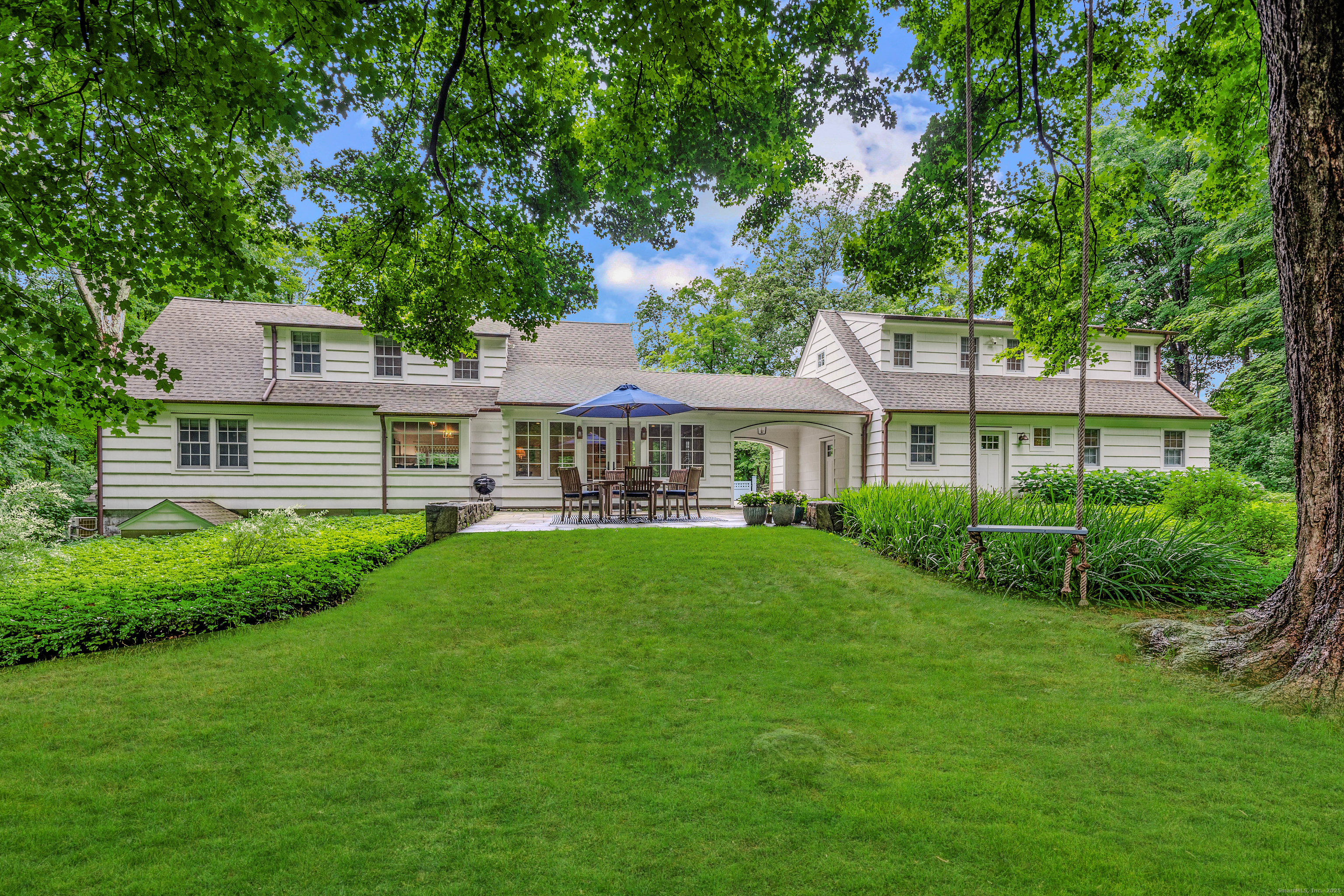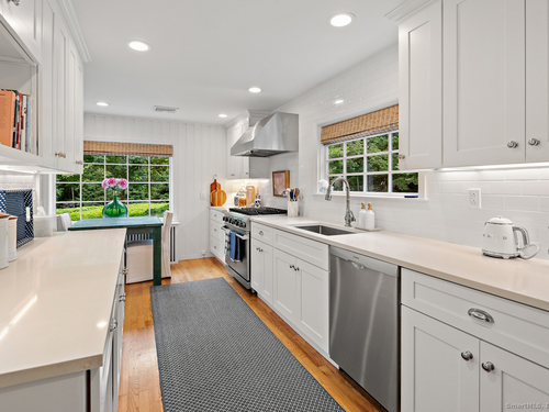 Welcome to "Snowdrop Hill," a lovingly restored gem located at 102 Eleven O'Clock Road in Weston. Surrounded by old New England stone walls and a private gate, this enchanting English stone and shingled home, originally constructed in the 1940s, has undergone a total transformation that enhances its historical charm while providing modern comforts. The home features a beautifully renovated kitchen and all new bathrooms, offering a modern touch to its timeless elegance. One of the standout features of this property is the newly built annex, which could serve as a perfect in-law, nanny or care-giver suite, offering privacy and comfort for extended family or guests or additional space for a gym and home office.The home has been completely updated with new windows and doors, top notch insulation, new appliances, new copper gutters and leaf screens, new A/C compressors, new septic, new deer fence around the perimeter of the entire stone walled property, new entrance gate and underground drainage, new garage and much more. Truly move-in ready. Set on a serene 3-acre lot, Snowdrop Hill offers a peaceful retreat, perfectly combining seclusion with accessibility. The property provides ample room for a pool and tennis court. Whether a family, empty-nesters looking for first floor living or weekenders escaping the city, the home and property is fit for purpose. The tranquility of the grounds and the modern conveniences within make this property a magnificent blend of past and present.