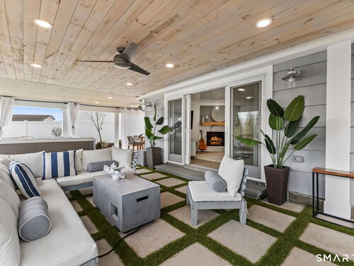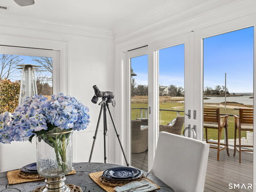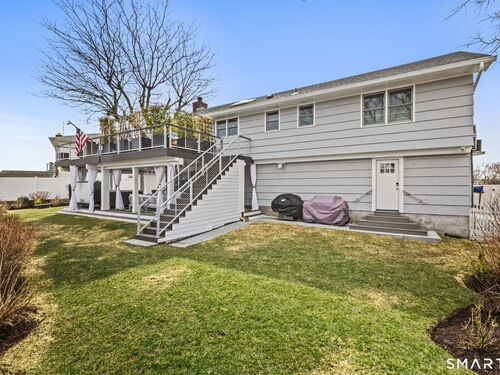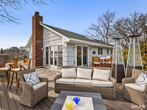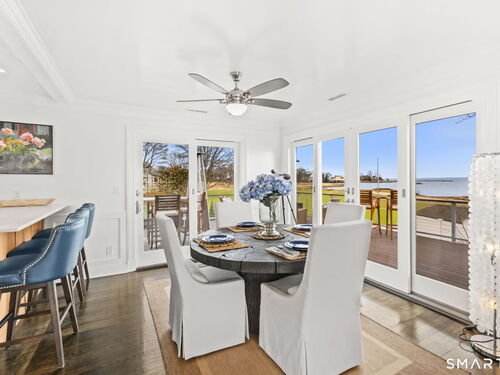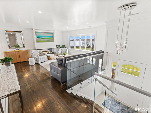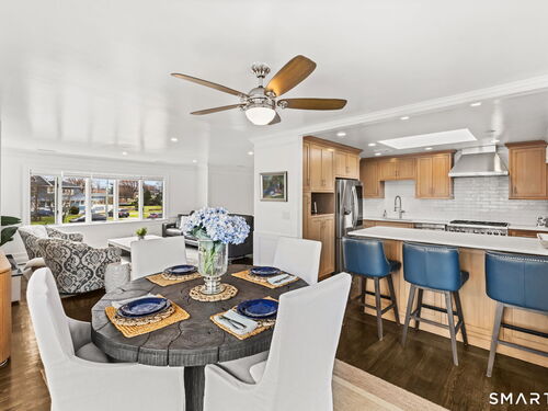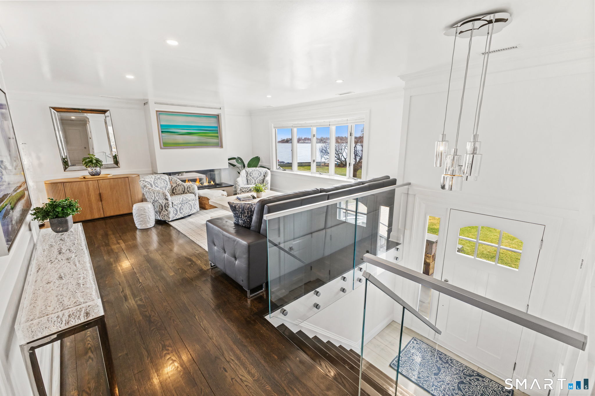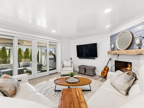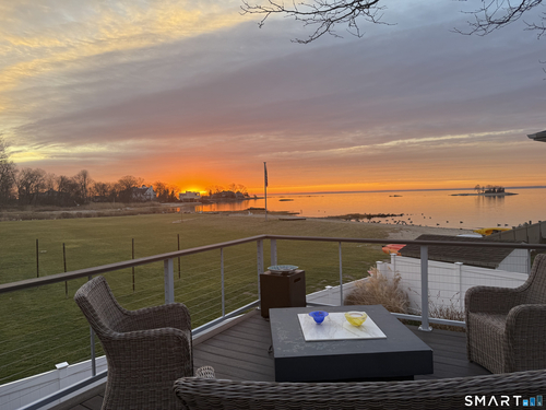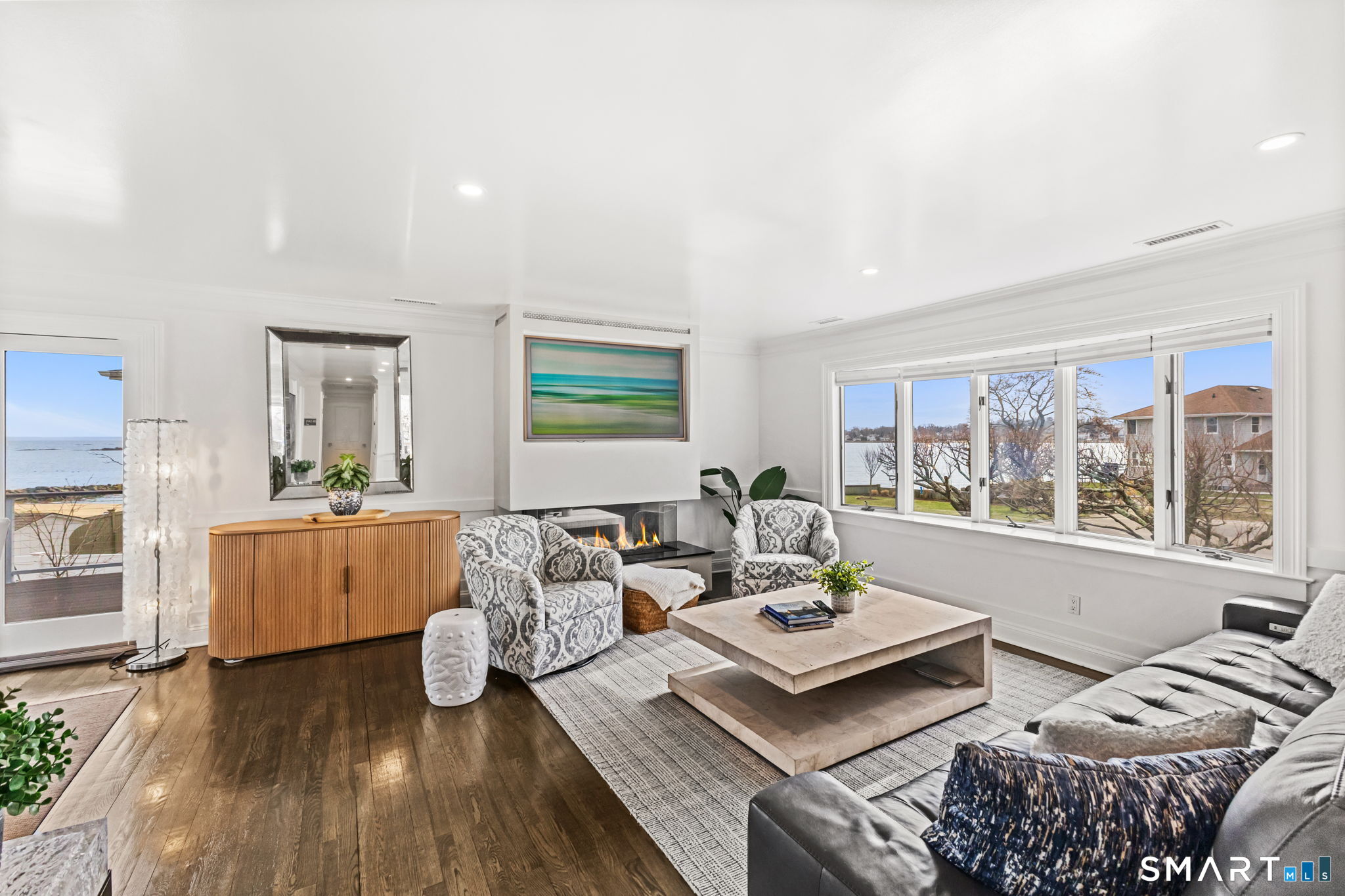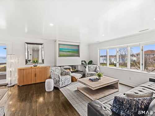 Experience coastal living at its most exceptional in this exquisitely renovated waterfront residence, ideally positioned on a quiet cul-de-sac in Stamford's coveted Cove seaside neighborhood. Masterfully redesigned with impeccable attention to detail, this home blends refined luxury with effortless seaside elegance. From the moment you enter, sun-drenched interiors and sweeping water views create a breathtaking, ever-changing backdrop. Expansive windows frame stunning sunrises and sunsets, filling the home with natural light and coastal breezes. The open-concept layout is both sophisticated and inviting-ideal for entertaining-featuring a chef's kitchen, beautifully appointed living spaces, two gas fireplaces and seamless indoor-outdoor flow. Inside, the home's magazine-quality design showcases curated finishes and a cohesive aesthetic rarely found at this level. A thoughtfully designed garage caters to an active lifestyle, ideal for sports and outdoor enthusiasts. Outdoors, a generous water-view deck sets the stage for unforgettable entertaining, while a private, covered patio with mounted TV offers an intimate setting for relaxed evenings. With beach access just steps away, the lifestyle here is as effortless as it is enviable. A turnkey home for the most discerning buyer, this is a true sanctuary-equally suited as a full-time residence or a luxurious weekend escape. Don't miss this rare opportunity to own a private haven in one of Stamford's most desirable seaside enclaves.