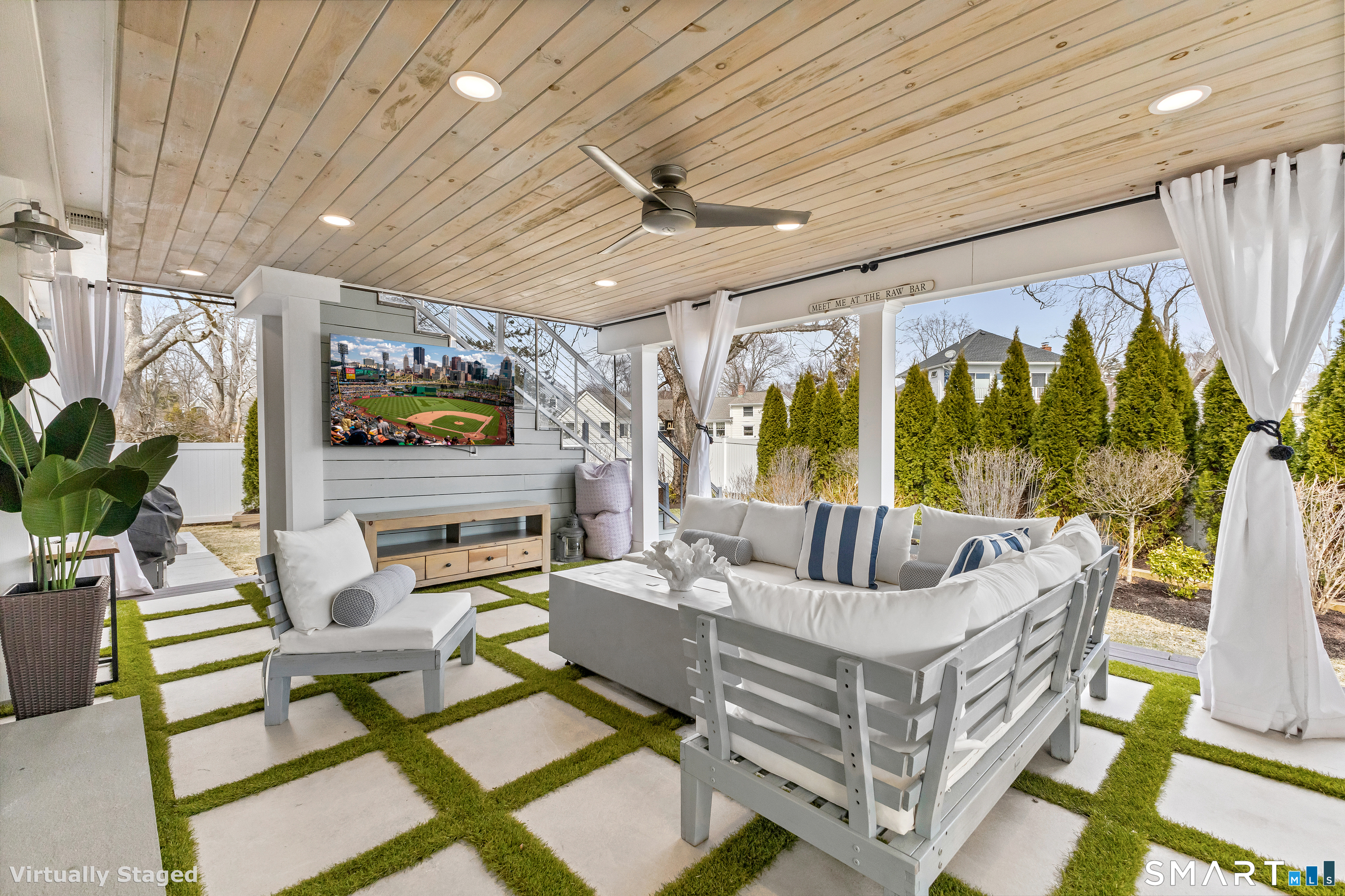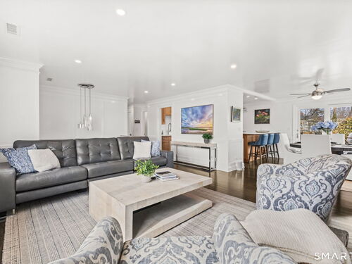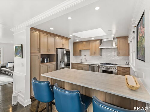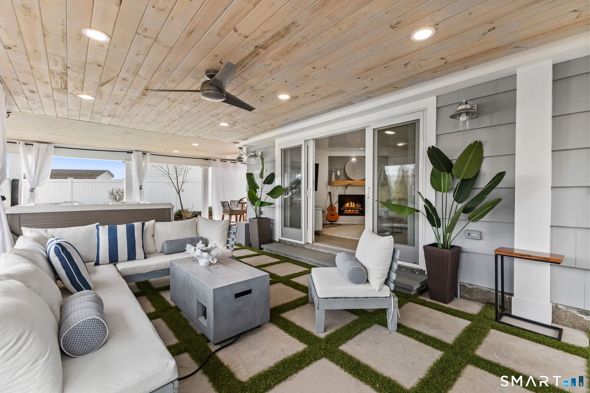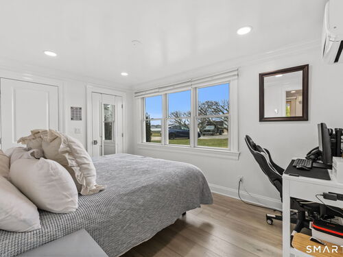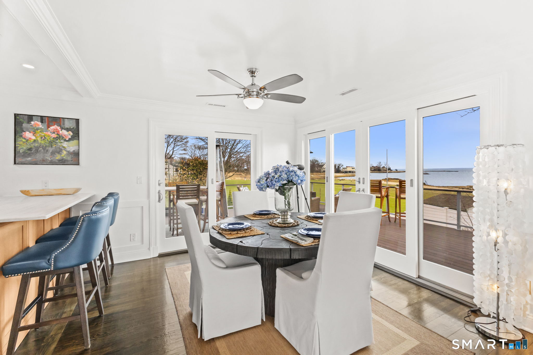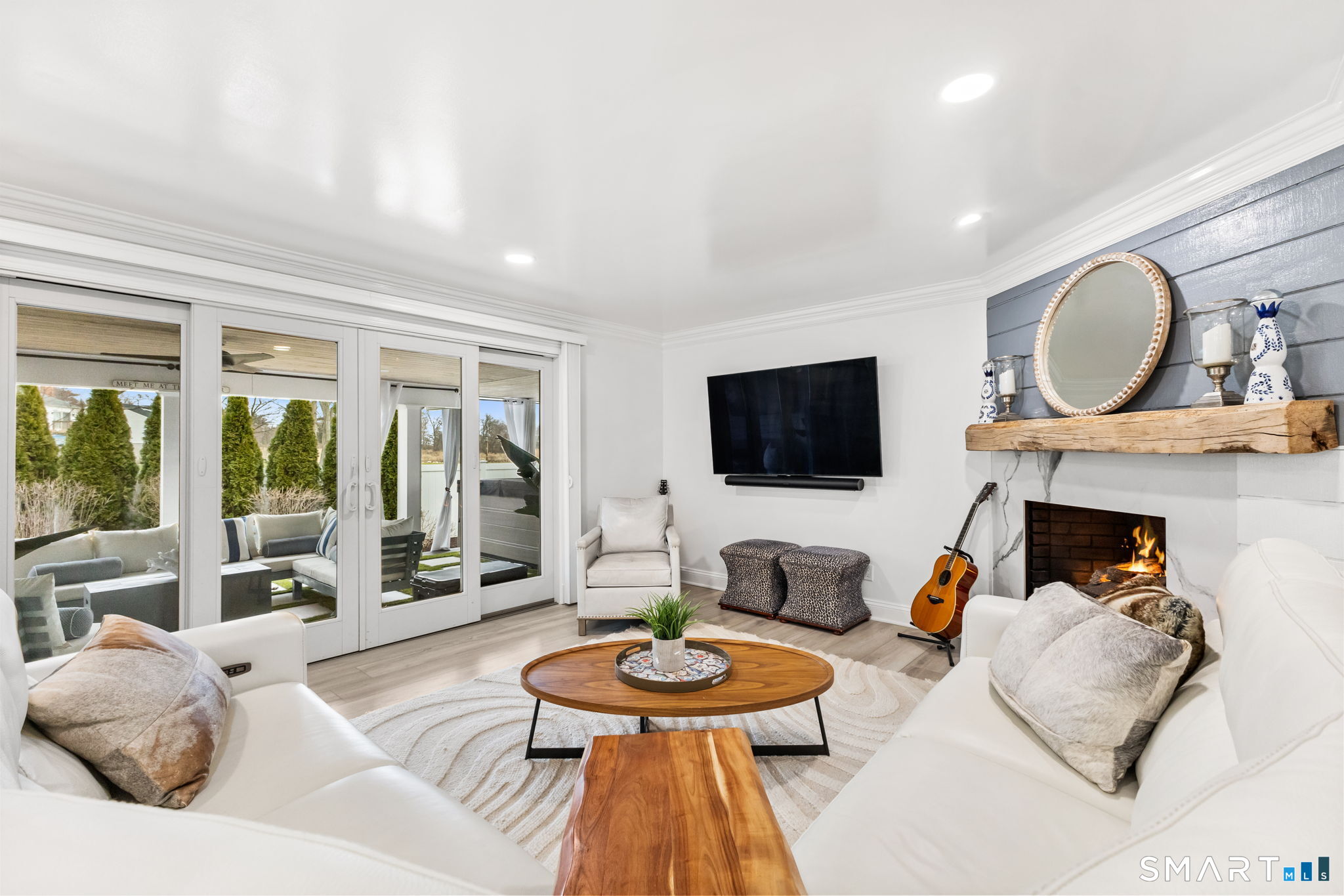 Experience coastal living at its most exceptional in this exquisitely renovated waterfront residence, ideally positioned on a quiet cul-de-sac in Stamford's coveted Cove seaside neighborhood. Masterfully redesigned with impeccable attention to detail, this home blends refined luxury with effortless seaside elegance. From the moment you enter, sun-drenched interiors and sweeping water views create a breathtaking, ever-changing backdrop. Expansive windows frame stunning sunrises and sunsets, filling the home with natural light and coastal breezes. The open-concept layout is both sophisticated and inviting-ideal for entertaining-featuring a chef's kitchen, beautifully appointed living spaces, two gas fireplaces and seamless indoor-outdoor flow. Inside, the home's magazine-quality design showcases curated finishes and a cohesive aesthetic rarely found at this level. A thoughtfully designed garage caters to an active lifestyle, ideal for sports and outdoor enthusiasts. Outdoors, a generous water-view deck sets the stage for unforgettable entertaining, while a private, covered patio with mounted TV offers an intimate setting for relaxed evenings. With beach access just steps away, the lifestyle here is as effortless as it is enviable. A turnkey home for the most discerning buyer, this is a true sanctuary-equally suited as a full-time residence or a luxurious weekend escape. Don't miss this rare opportunity to own a private haven in one of Stamford's most desirable seaside enclaves.