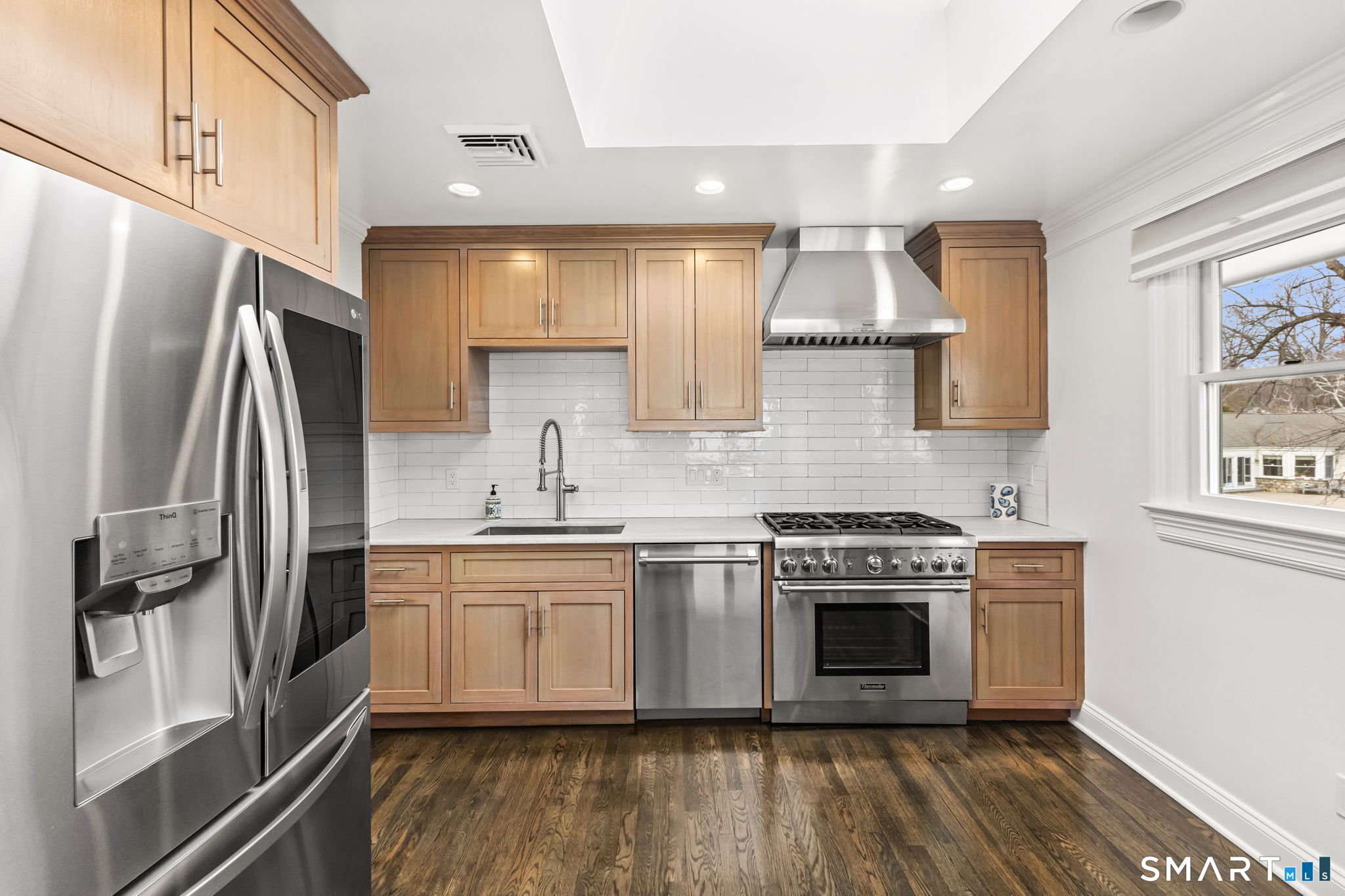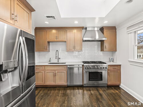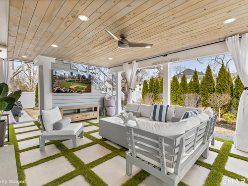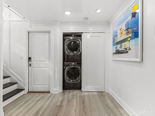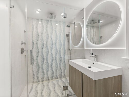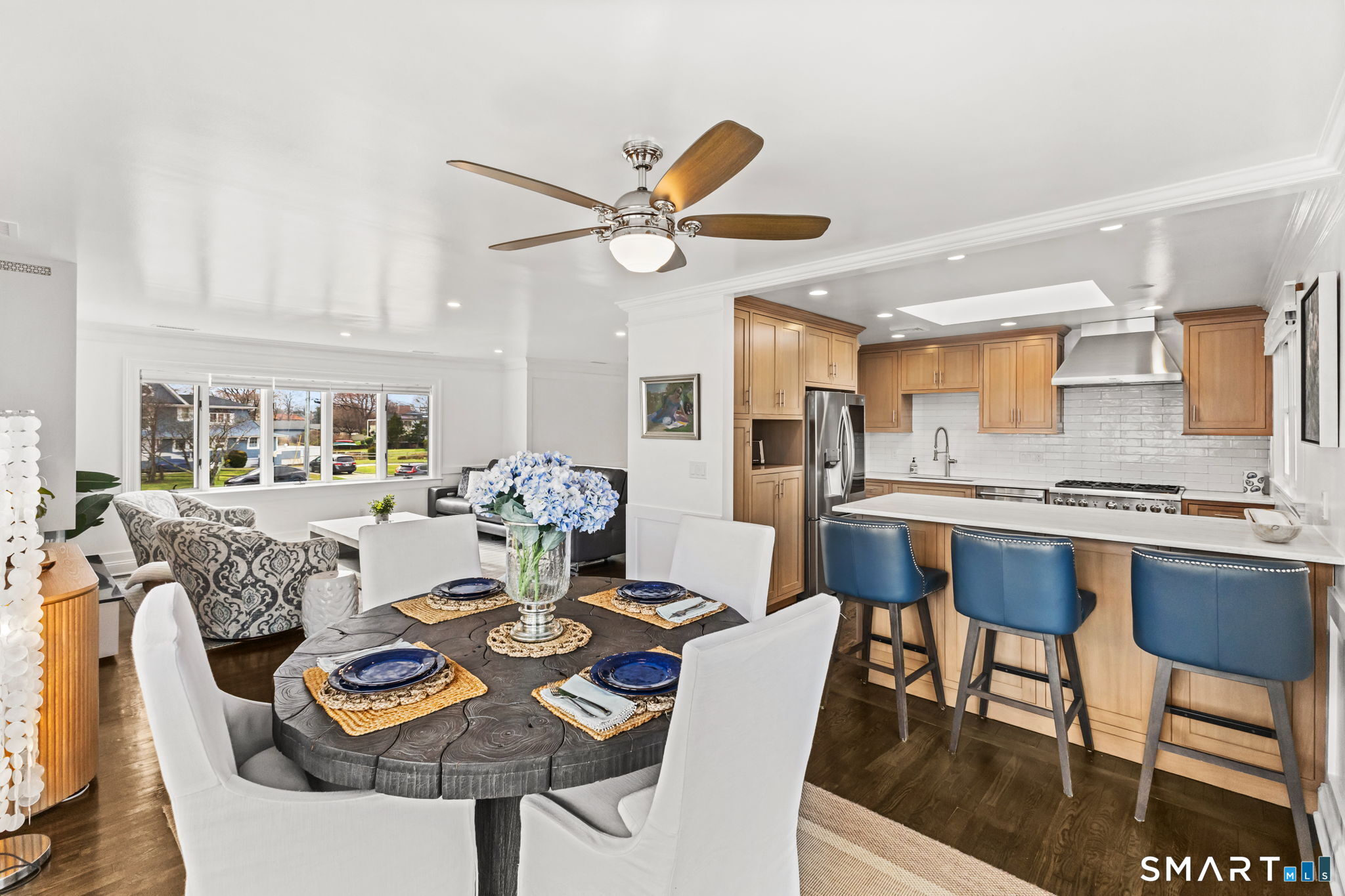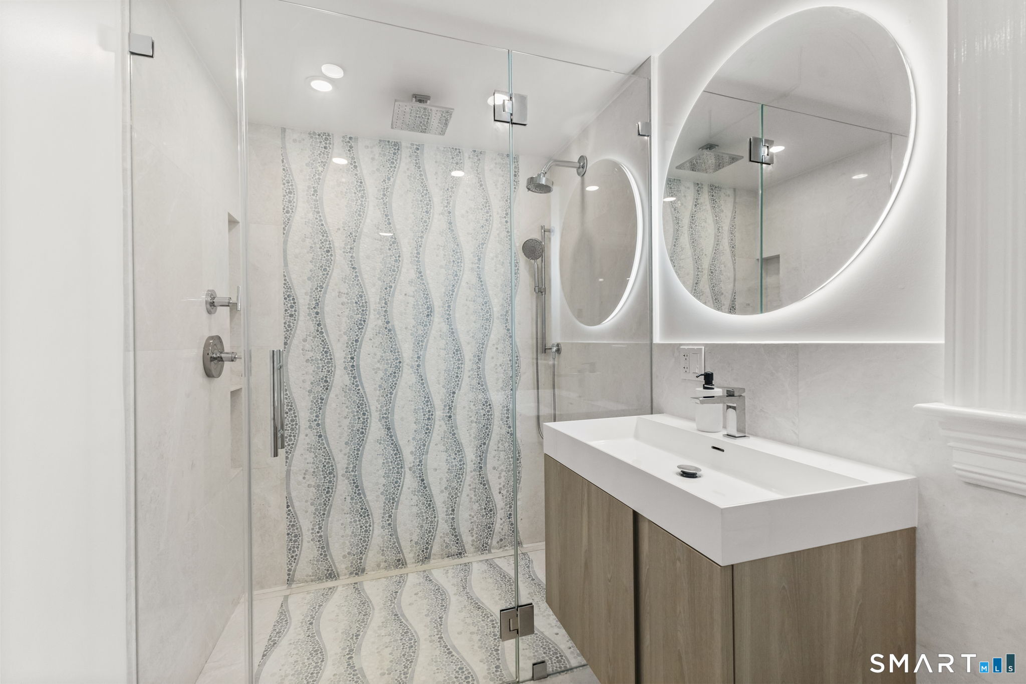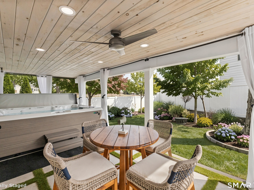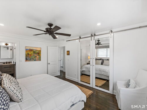 Experience coastal living at its most exceptional in this exquisitely renovated waterfront residence, ideally positioned on a quiet cul-de-sac in Stamford's coveted Cove seaside neighborhood. Masterfully redesigned with impeccable attention to detail, this home blends refined luxury with effortless seaside elegance. From the moment you enter, sun-drenched interiors and sweeping water views create a breathtaking, ever-changing backdrop. Expansive windows frame stunning sunrises and sunsets, filling the home with natural light and coastal breezes. The open-concept layout is both sophisticated and inviting-ideal for entertaining-featuring a chef's kitchen, beautifully appointed living spaces, two gas fireplaces and seamless indoor-outdoor flow. Inside, the home's magazine-quality design showcases curated finishes and a cohesive aesthetic rarely found at this level. A thoughtfully designed garage caters to an active lifestyle, ideal for sports and outdoor enthusiasts. Outdoors, a generous water-view deck sets the stage for unforgettable entertaining, while a private, covered patio with mounted TV offers an intimate setting for relaxed evenings. With beach access just steps away, the lifestyle here is as effortless as it is enviable. A turnkey home for the most discerning buyer, this is a true sanctuary-equally suited as a full-time residence or a luxurious weekend escape. Don't miss this rare opportunity to own a private haven in one of Stamford's most desirable seaside enclaves.