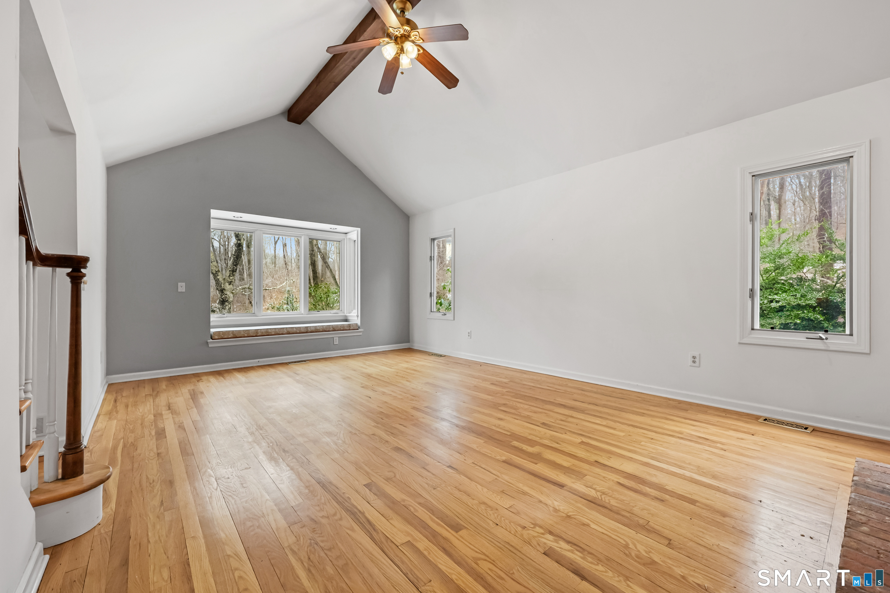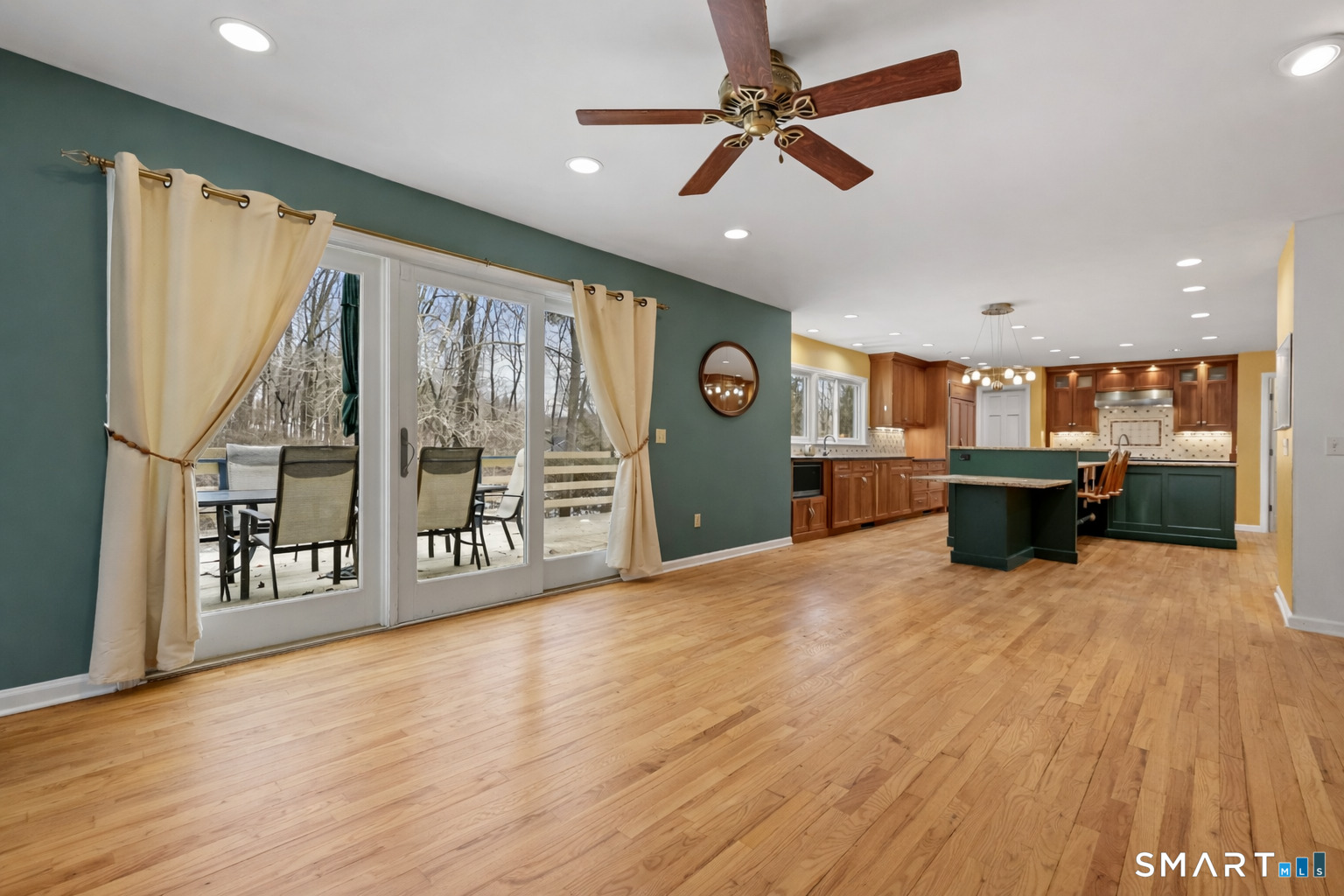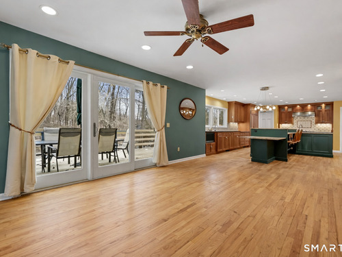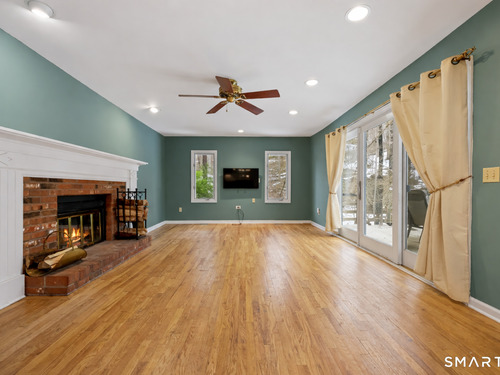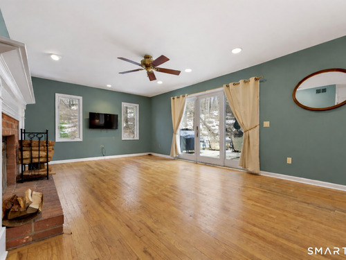 Family Room (Main Level)Balcony/Deck, Ceiling Fan, Fireplace, Sliders, Hardwood Floor