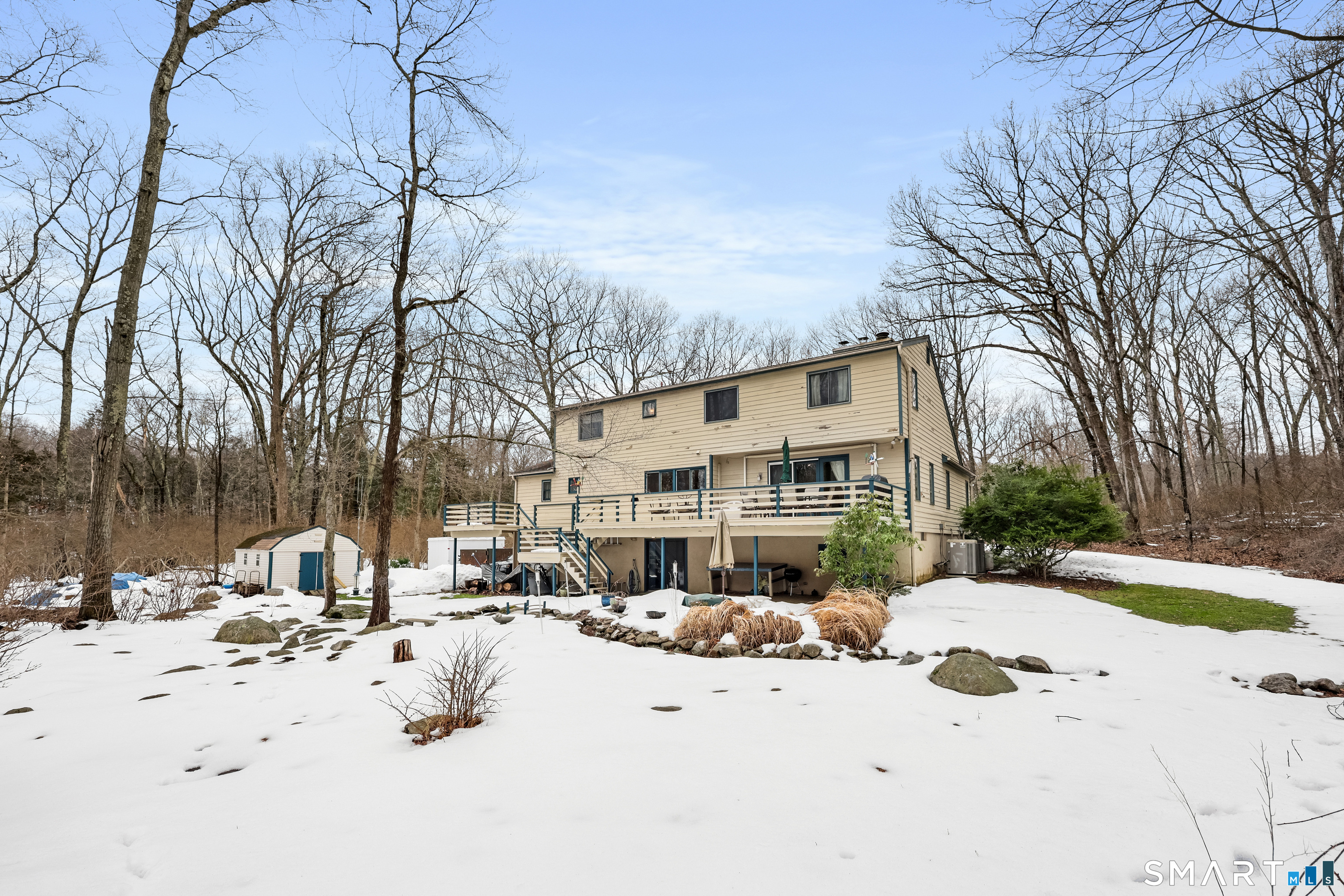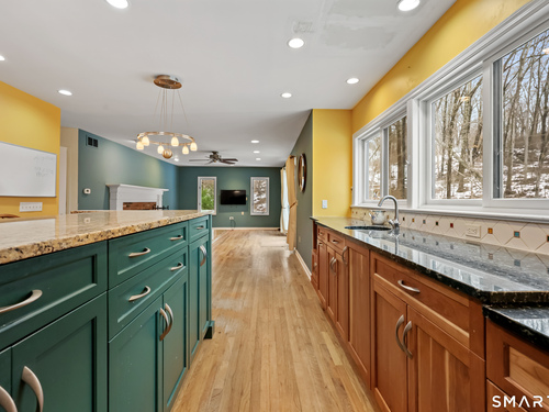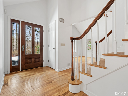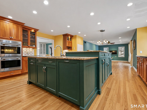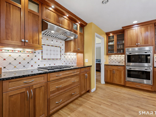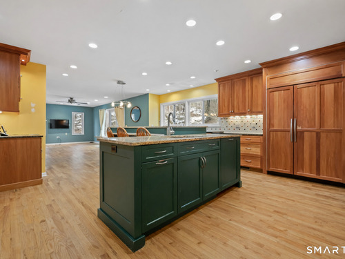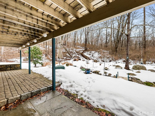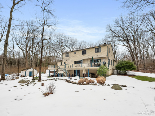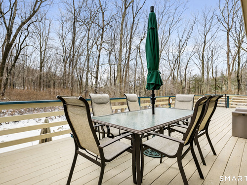 Nestled on 2.02 private acres in Wilton, this spacious 4-bedroom, 4-bath home offers a thoughtful layout designed for both everyday living and entertaining. The great room with vaulted ceiling and fireplace creates an impressive central gathering space filled with natural light, while the formal dining room with French doors and built-ins adds classic detail. The large open kitchen features a walk-in pantry, breakfast bar, and pastry counter, and opens directly to a family room with fireplace, creating a warm and inviting space for casual living. From the family room, step out to a large deck overlooking peaceful woodlands, ideal for outdoor dining and relaxing in a private natural setting. The first-floor primary suite provides convenience and privacy. The second level includes a den with extra-height ceilings and built-ins, along with three additional bedrooms and a hall bath. Additional highlights include hardwood flooring, a walk-out finished lower level offering flexible living space for recreation, gym, or media room, an office, and an attached three-car garage. Set on over two acres, this property offers space, privacy, and a desirable Wilton lifestyle.