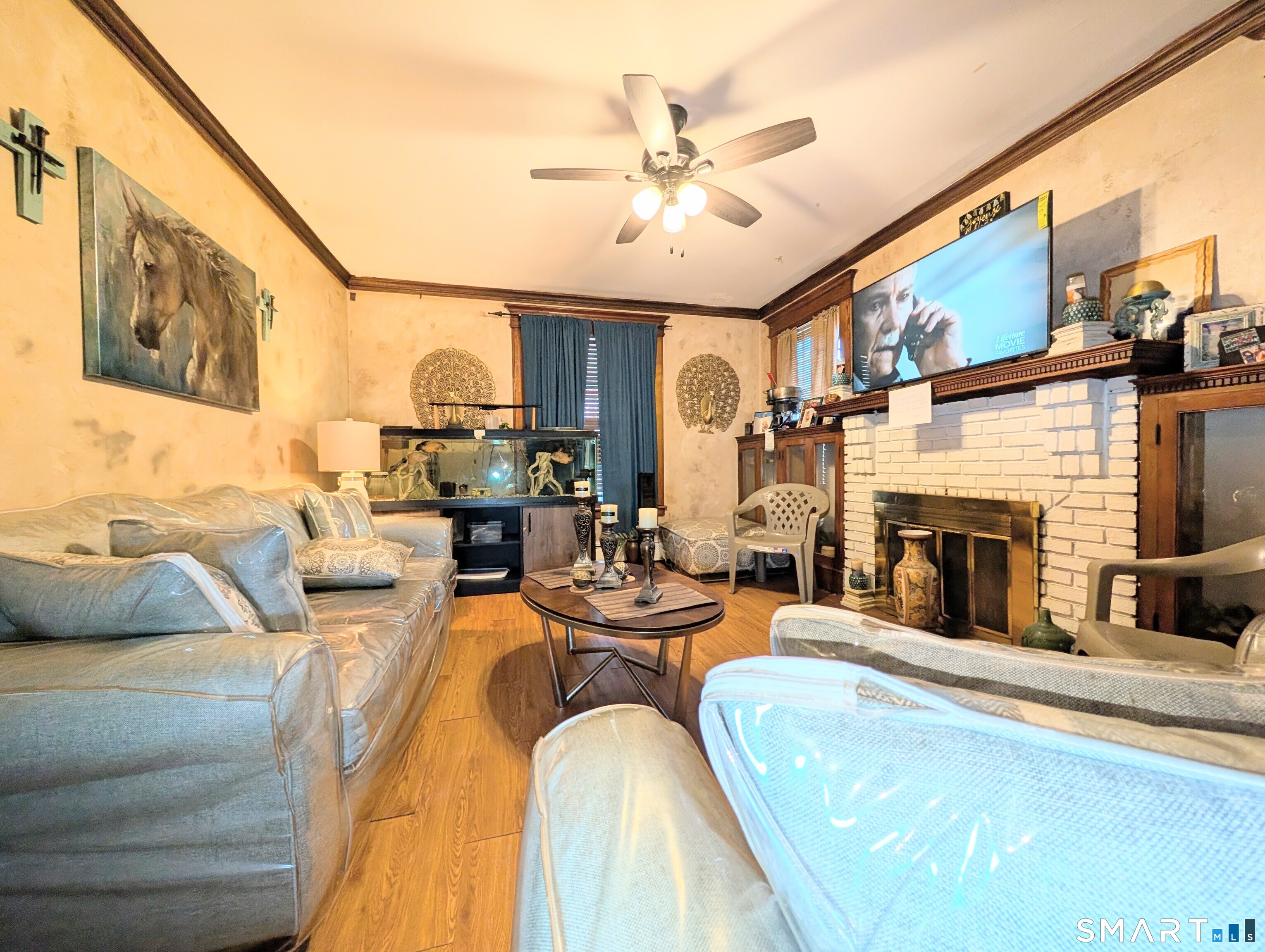 Step into timeless charm with this spacious 5-6 bedroom, 3 full bath Queen Anne Victorian Colonial, rich in natural wood character and full of endless potential. This strong, well-built home offers approximately 4,952 sq ft of potential living space, including a finished basement and finished walk-up attic, and also features a new roof. The main level showcases a welcoming foyer that sets the tone, leading into a huge living room with a classic brick fireplace, a semi-updated eat-in kitchen with stainless steel appliances, two spacious bedrooms, and a large full bath complete with a relaxing Jacuzzi spa tub, while wide doorways and a stunning wood staircase highlight the home's craftsmanship throughout. The second floor offers three additional bedrooms and another full bath, providing ample living space. The fully finished basement includes a complete in-law setup with a living room, kitchenette, dining area, bedroom, full bath, and plenty of closet space, ideal for extended family or flexible living arrangements. Featuring plank hardwood floors and recessed lighting throughout the entire home, this property also offers a long paved driveway leading to a two-car detached garage, along with a nicely sized private fenced backyard. The charming 437 sq ft front porch is perfect for morning coffee on a quiet, low-traffic street. Being sold as-is and requiring some TLC, this home's size and layout make it ideal for a large or blended family or group living.