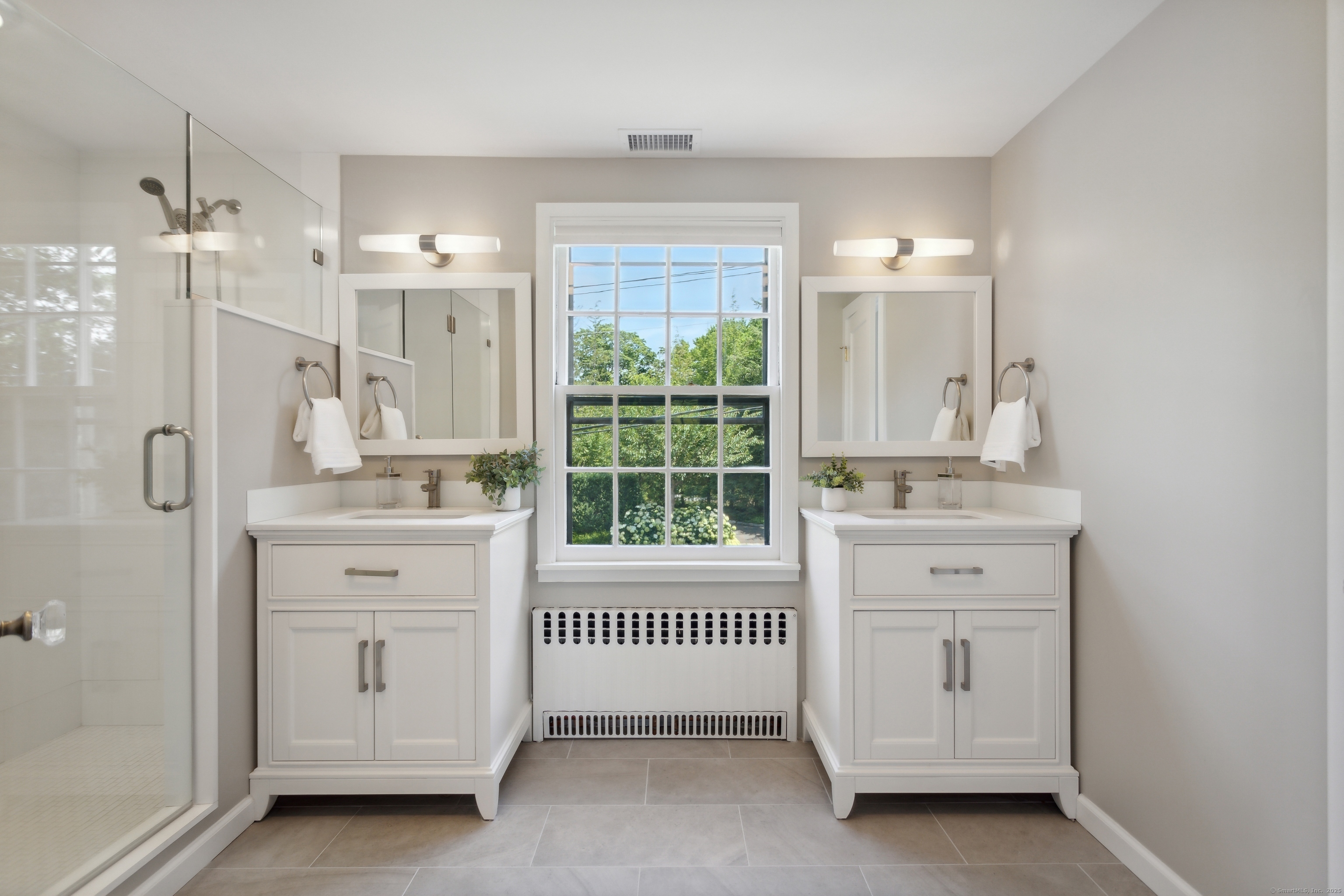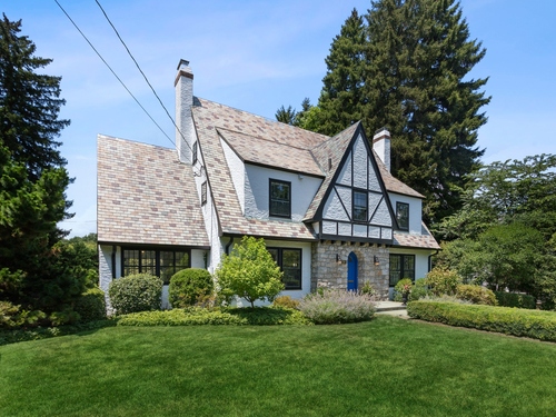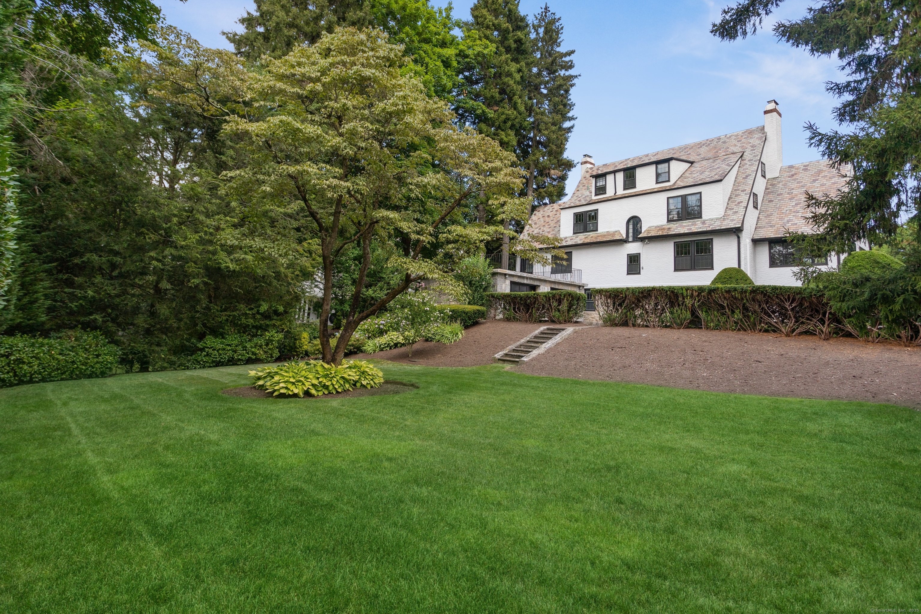Beautifully renovated and modernized in 2022, this classic Tudor on one of Greenwich's premier in-town streets is located just moments from schools, train, shops, and the hospital. Inside, discover a new kitchen, restored hardwood floors, updated lighting, and graceful arches that create a seamless flow throughout. The primary suite offers a newly renovated bath and spacious dressing room, while 4 additional bedrooms and 2 updated baths complete the 2nd and 3rd floors. The pristine lower level includes exterior access, laundry, generous storage, a 1-car attached garage, and a separate 2-car detached garage. Outside, a stone terrace overlooks lush, level lawns and beautifully landscaped gardens, creating a vibrant display of blooms throughout the seasons offering exceptional privacy.