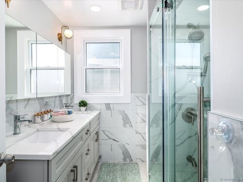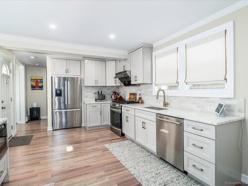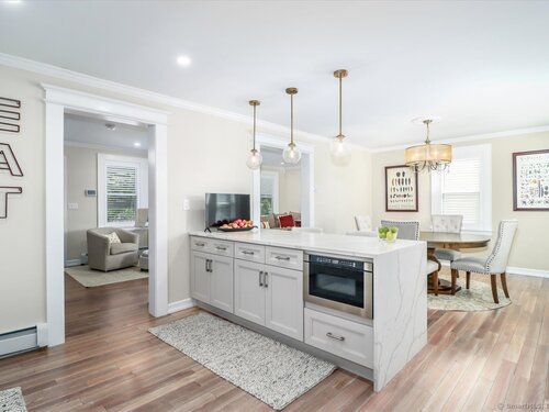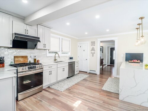 Walk to the beach by summer! Welcome to this beautifully renovated Shippan Colonial that perfectly blends modern updates w/classic charm. With 5 BRs, 2.5 baths, & multiple flex spaces, this home offers comfort & versatility. An inviting front porch sets the tone, while inside, the open flow allows light to pour in from all windows. The spacious LR flows seamlessly into the DR & showstopping kitchen w/quartz waterfall countertops, s/s appls, pantry & abundant cabinetry-perfect for everyday living & entertaining. Beyond the kitchen are 2 BRs & a full bath creating the perfect opportunity for a 1st flr primary suite, guest space, or home office. Upstairs, offers 3 add'l BRs & an updated bath + finished walkup attic ideal as an office, hangout space or gym plus add'l storage. The fully finished LL w/ separate entry & garage access, expands your options w/half bath, kitchenette, laundry & oversized media/family room-great for entertaining or multi-gen living. The 2 car heated & insulated garage is large enough for add'l storage. Outside, enjoy a large yard w/ plenty of room to play, garden, or relax. A covered patio provides a cozy retreat for outdoor dining & lounging or can be used as a carport. While perfect the way it is, there is also plenty of expansion potential. Minutes from I-95, Metro North & Downtown, the highlight is a short walk to Brennan's, Cummings Park & West Beach! Don't miss your chance to own in one of Stamford's most sought after communities!